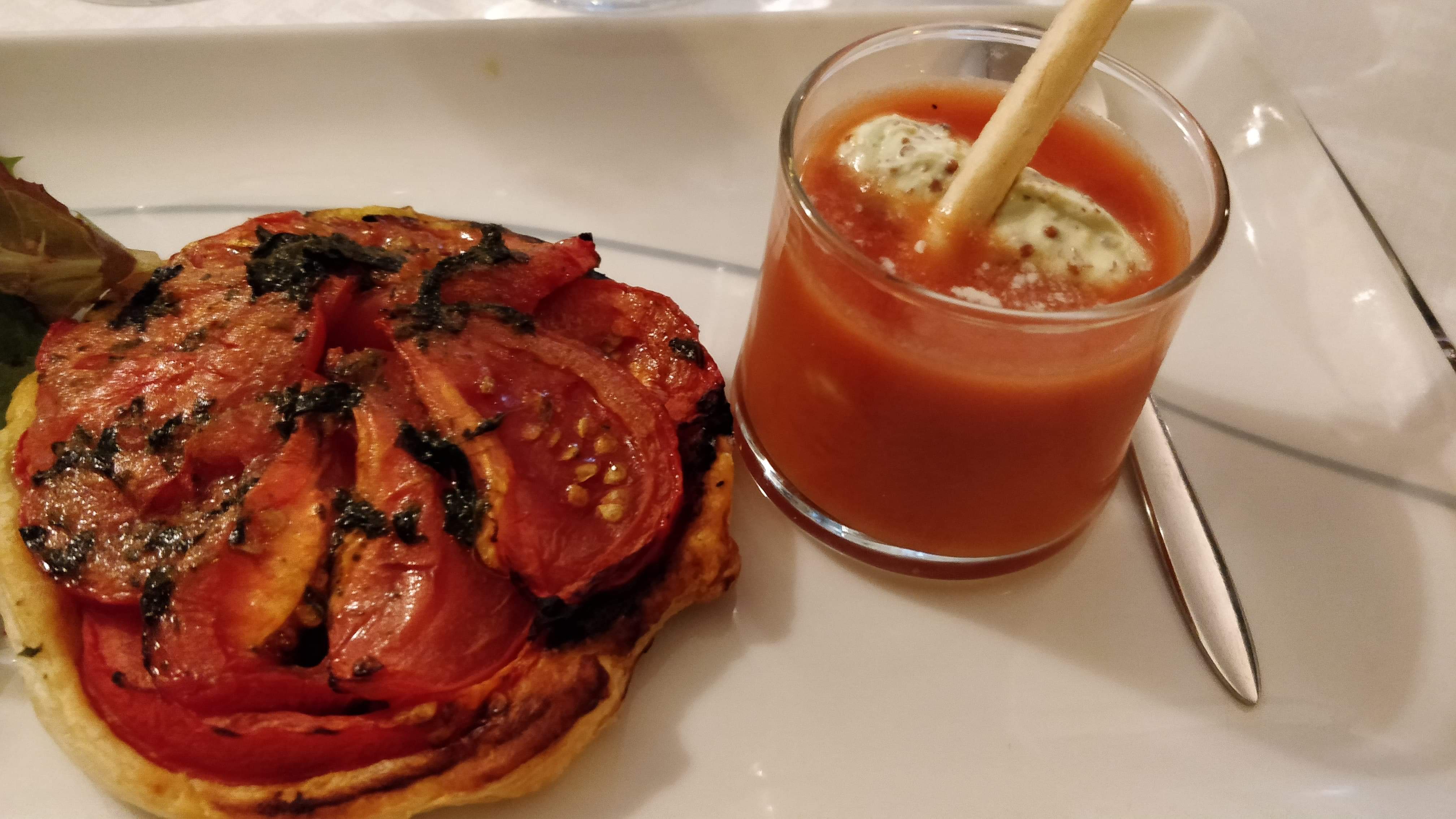 Excellente 1ère impression. D'abord un vin blanc Chassagne Montrachet Louis Jadot 2013 superbe, puis des mises en bouche goûteuses. Le dîner est plutôt gastronomique. Highly recommended.