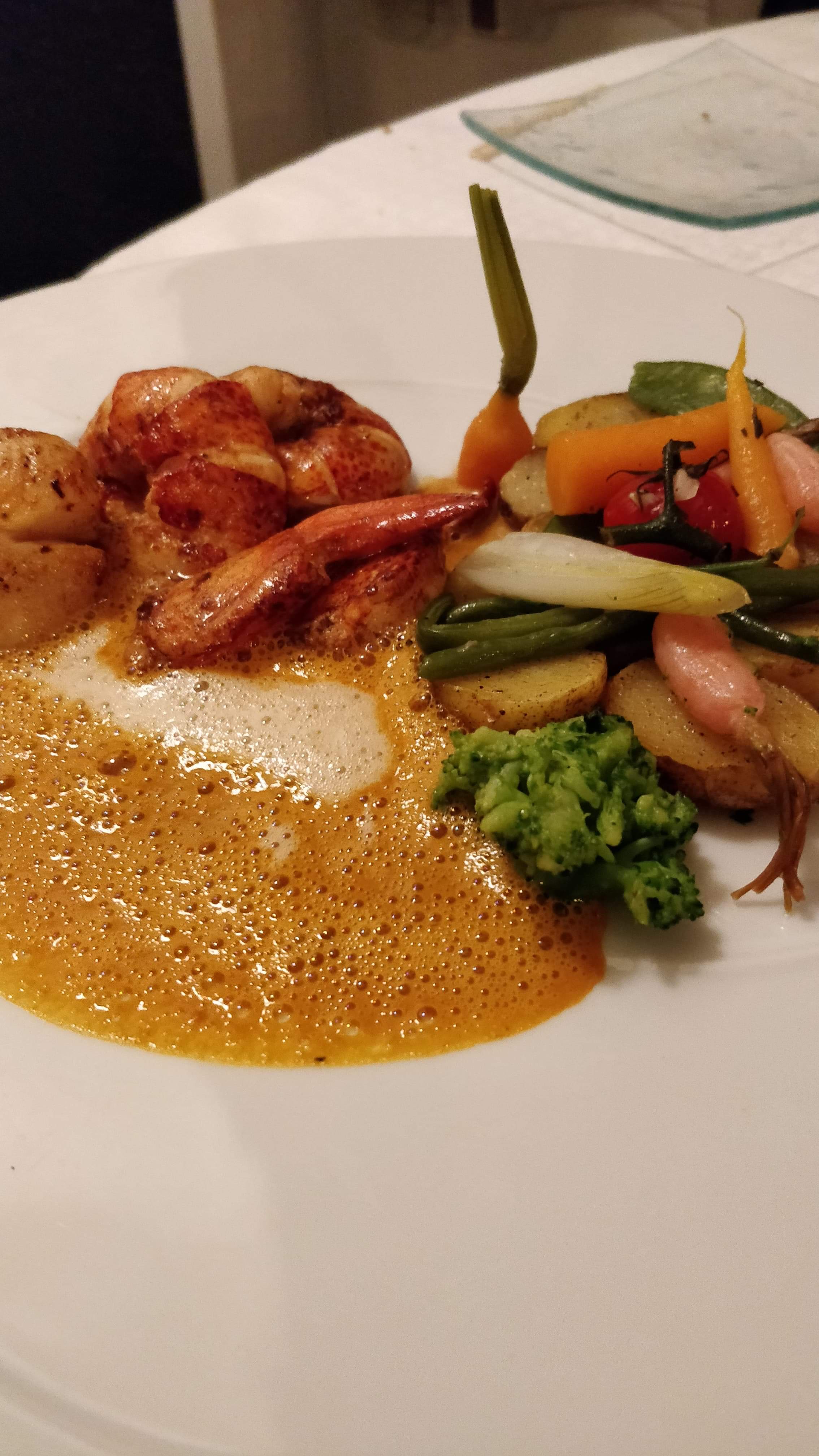 Pas mauvais .. l'ambiance chaleureuse n'y est malheureusement pas..un sourire et de la bonne humeur égayerait le repas sans entacher le côté classe. Nos yeux rodent sur les autres tables et pas les mêmes amuses bouches c'est dommage.un desserts décevant (mousse banane chocolat)..peu de chocolat ressenti et un glacage gélatineux... Mais le reste est agréable