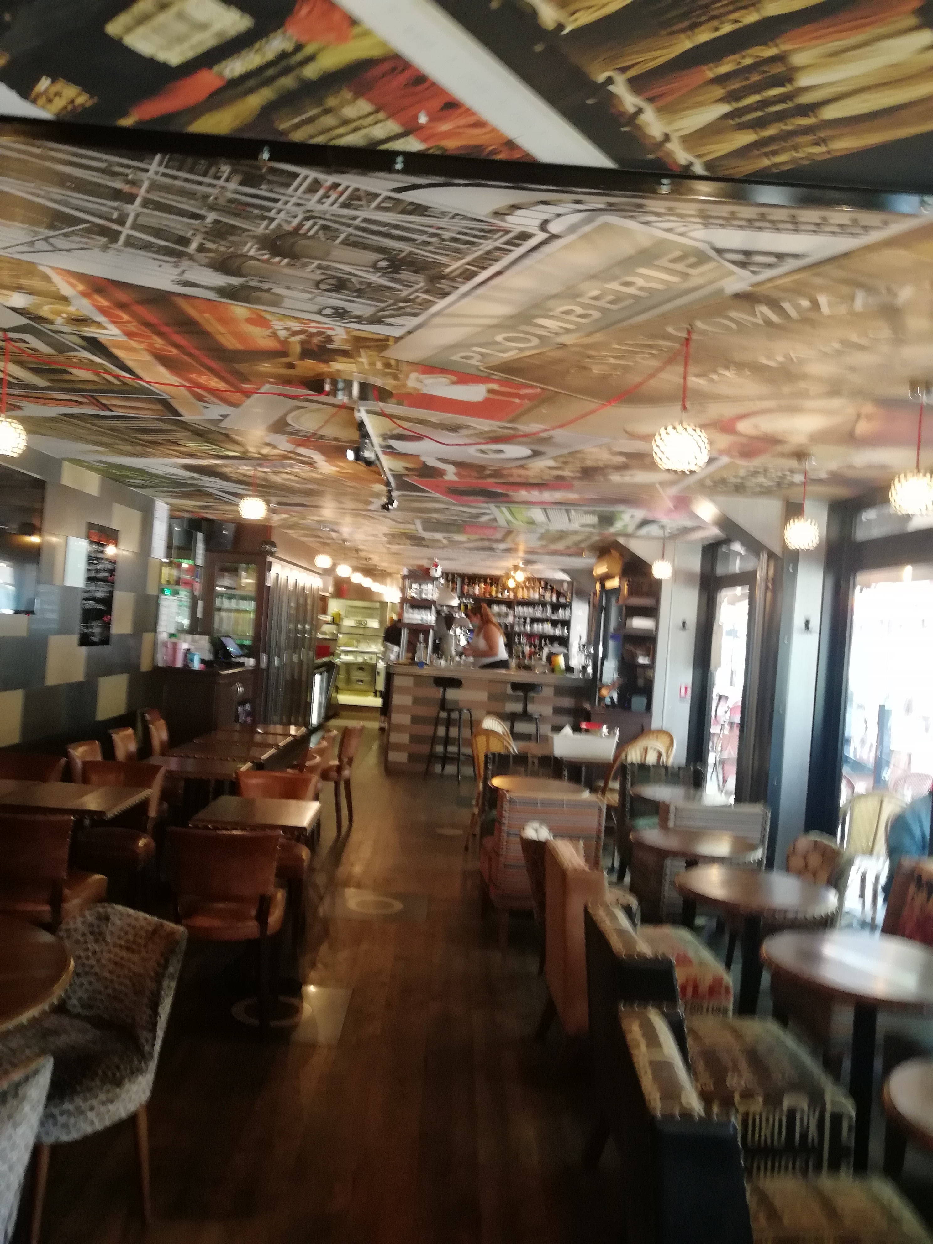 Une brasserie parisienne à la déco sympa mais le serveur n'était pas aimable la commande et le service pas très propres sur les tasses et le café qui déborde et en plus une erreur de commande.je ne recommande pas trop.