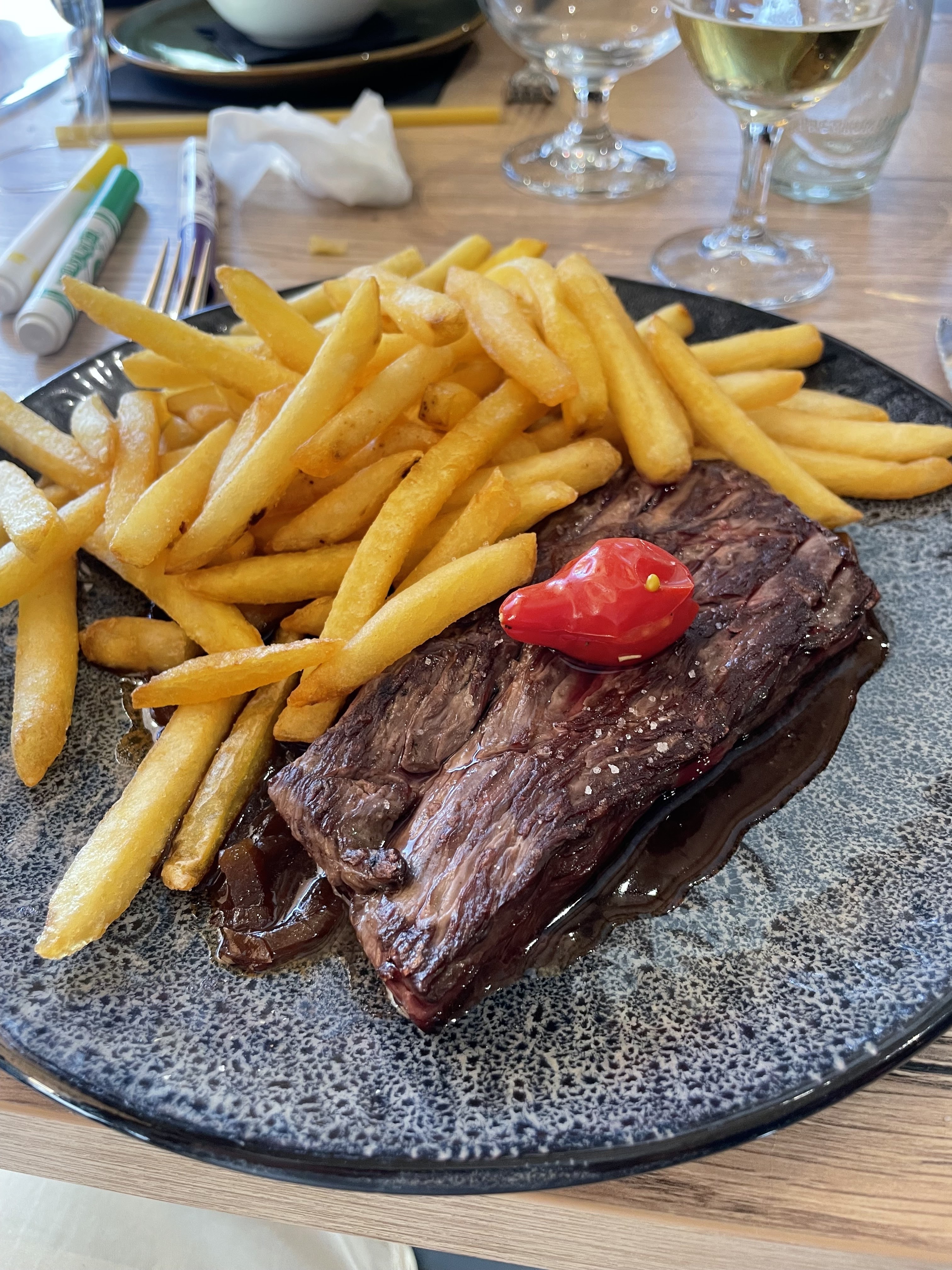 Quelle déception. Nous étions 4 . Les assiettes sont pour des enfants de 12 ans . Certes nous sommes a 14 - 15 euros le plat du jour donc très correct mais la quantité et le goût n'est pas terrible . Les carpaccios sont minuscules. Avec des ajouts de 7 euros pour une portion de frites ????!!! Pas une feuille de salade. C'est triste. Les serveuses sont gentilles mais le serveur n'est pas pro. On nous demande pas comment ça se passe le repas et obligé de se lever pour commander. J'aime pas mettre des pavés mais ça commence à bien faire de se faire prendre pour une vache à lait. Les points positifs : vue imprenable . Mais bon a éviter juillet août comme partout malheureusement.