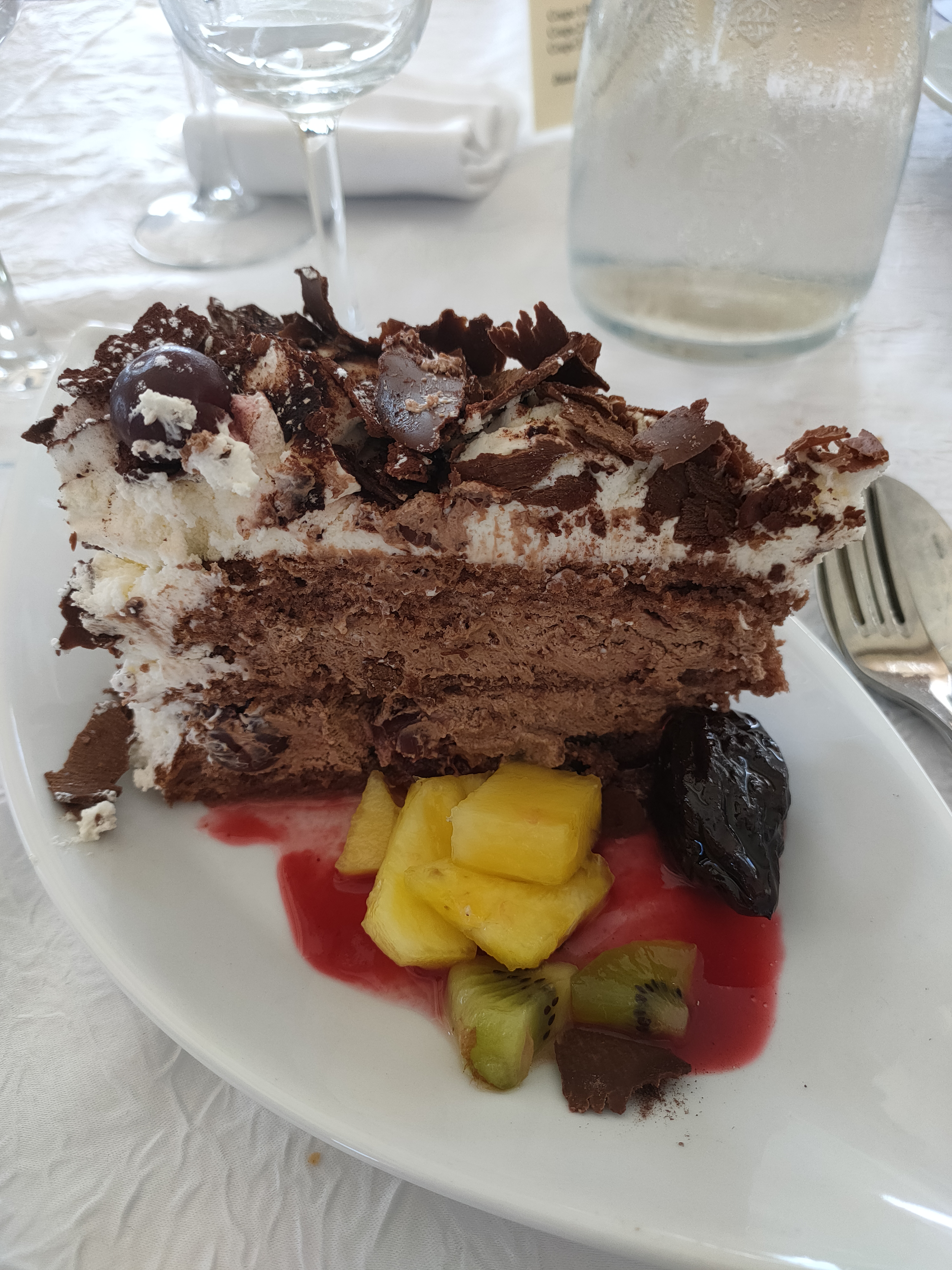 Arrêtés pour boire un verre, on s'est laissés tenter par une assiette 2 desserts. Produits frais, génoise délicieuse, et tarte myrtille excellent, et prix plus qu'acceptables Le tout avec une jolie vue... Fraiche après la canicule!!
