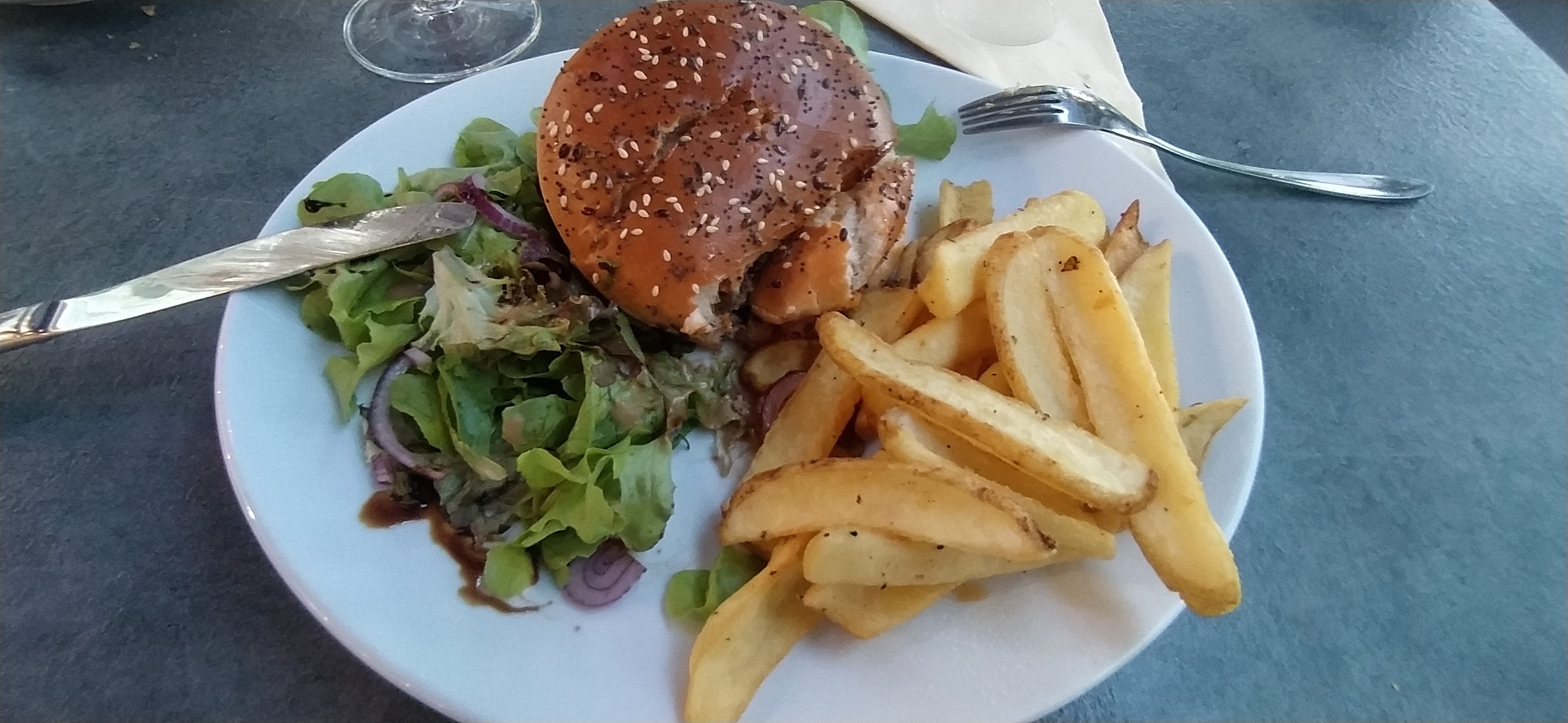 Pas mauvais. Dommage que les légumes congelés ne soient pas assez cuits. Le poisson soit fade. Sur 4 plats différents le meilleur et plus goûteux c'était le Burger