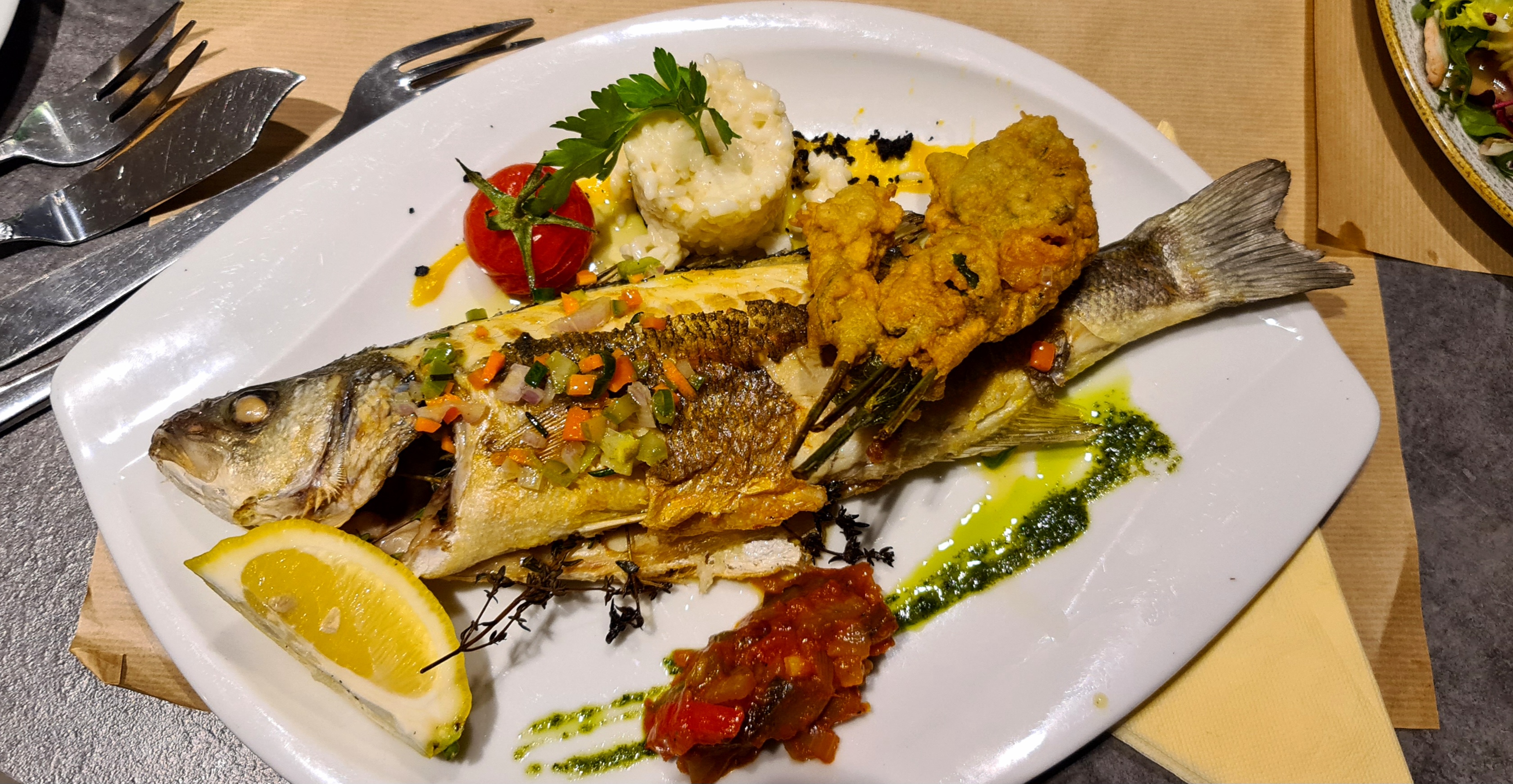 Le loup était délicieux et préparé par le serveur fort sympathique. Bonne adresse.