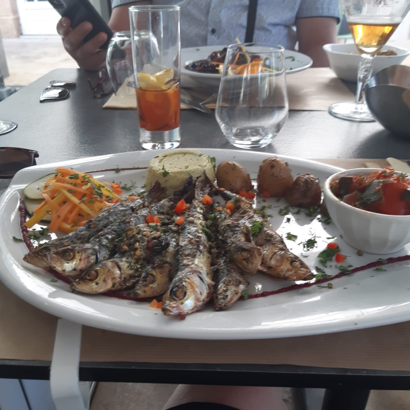 1ère expérience dans cet établissement. Très bon accueil, la terrasse est sympa et bien agréable le soir. Le tartare de thon était délicieux, le Spritz aussi d'ailleurs. Le personnel était serviable et souriant. Les prix sont corrects par rapport aux autres restaurants des environs.
