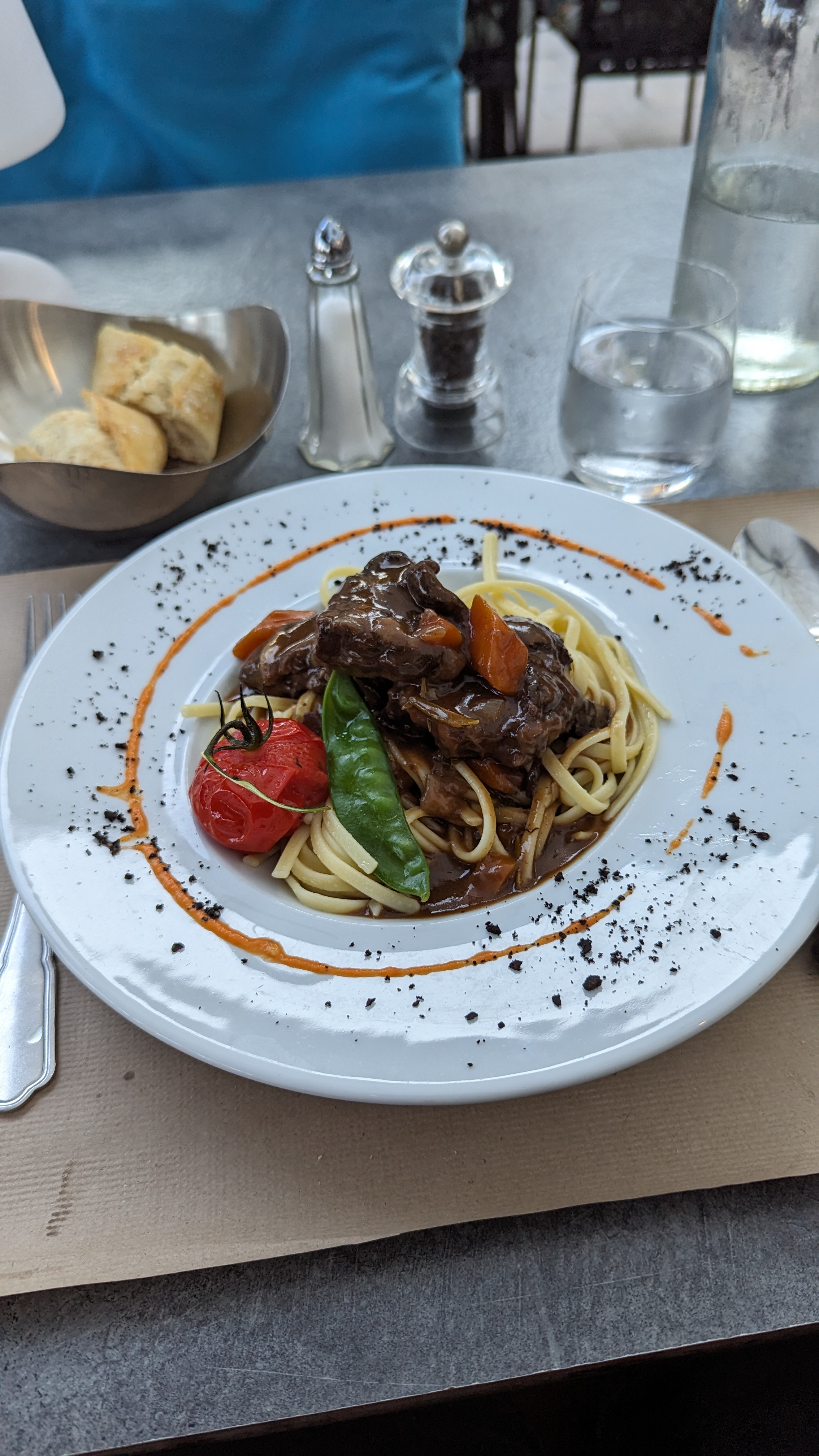 Excellent service et le personnel est très agréable et à l'écoute. Les plats sont très bons. La cuisson de la bavette était parfaite et la viande tendre. Idem pour la daurade au pesto... Prix corrects. Nous recommandons !