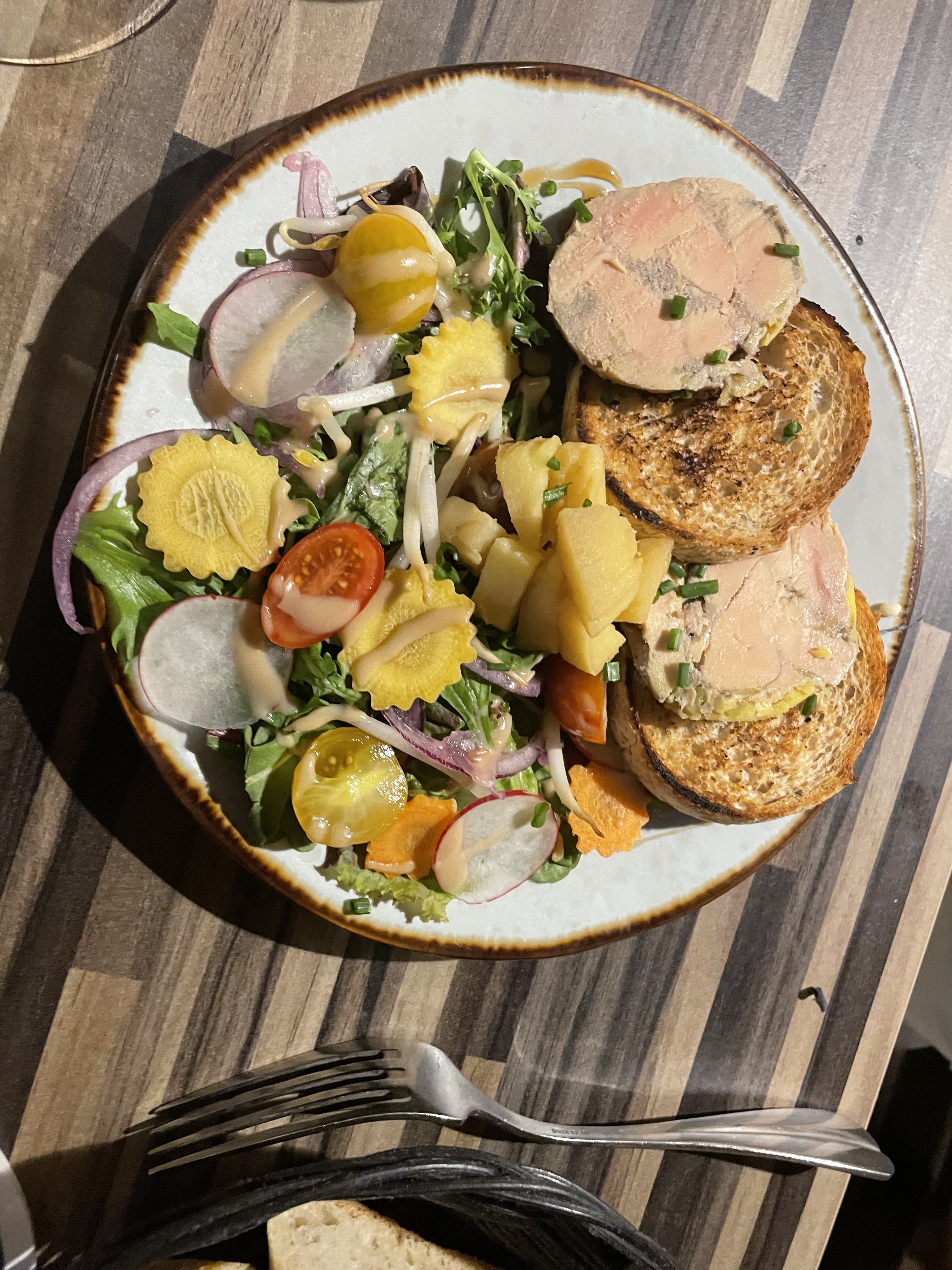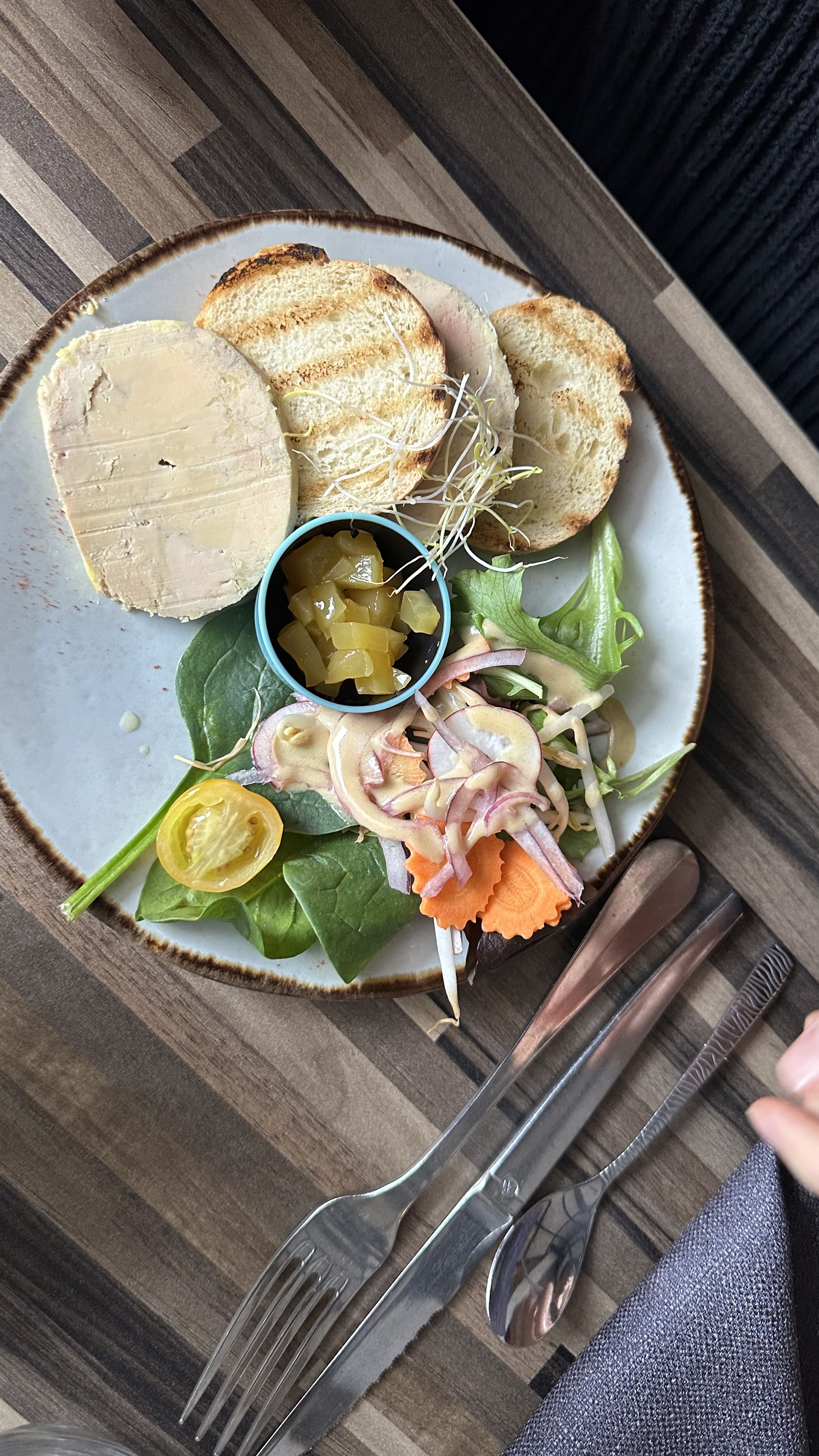 Déçus... nous avons commandé des crèmes brûlés au foie gras en entrée, pour patienter on nous apporte des crèmes brûlés au foie gras en amuse-bouche... Cela ne semble pas choquer la serveuse qui ne s'en excuse pas après lui avoir signalé. Résultat nous mangeons deux fois le même plat... Absence de cohérence et de considération. Déception