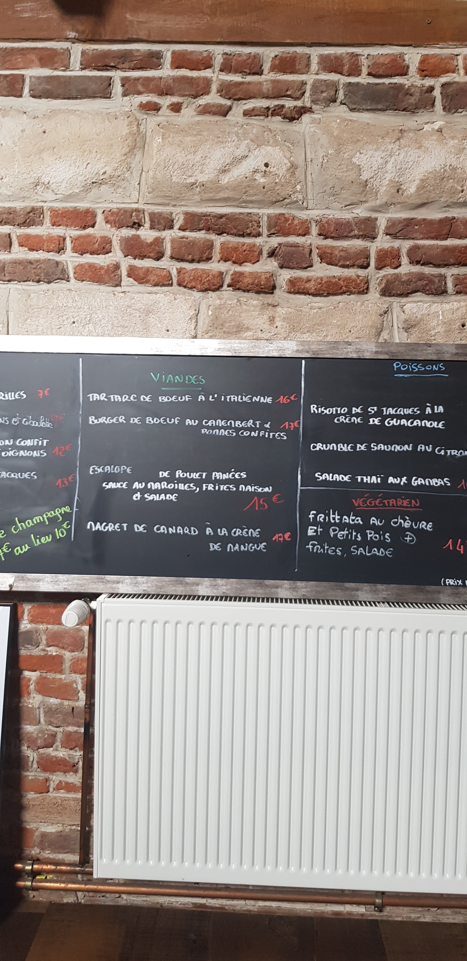 Cela fait plusieurs fois que nous venons et nous ne sommes jamais déçus. La carte est courte mais il y en a toujours pour tous les goûts et surtout elle est actualisée toutes les 2 semaines! Ce soir : Pièce de bœuf/sauce au vieux Lille et brochette de gambas, c’était excellent ! Sans parler des desserts... mention spéciale pour le tartare de fraises 🍓 ! Service au top avec le sourire, même derrière le masque 😷 plat et dessert en une heure sans stress ! Nous recommandons à 200% !