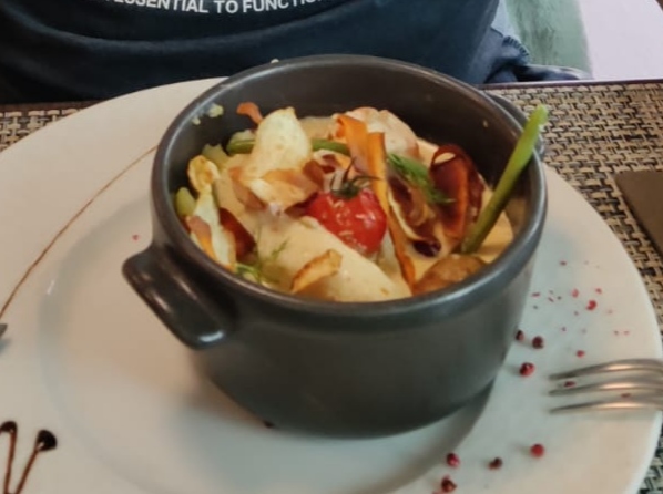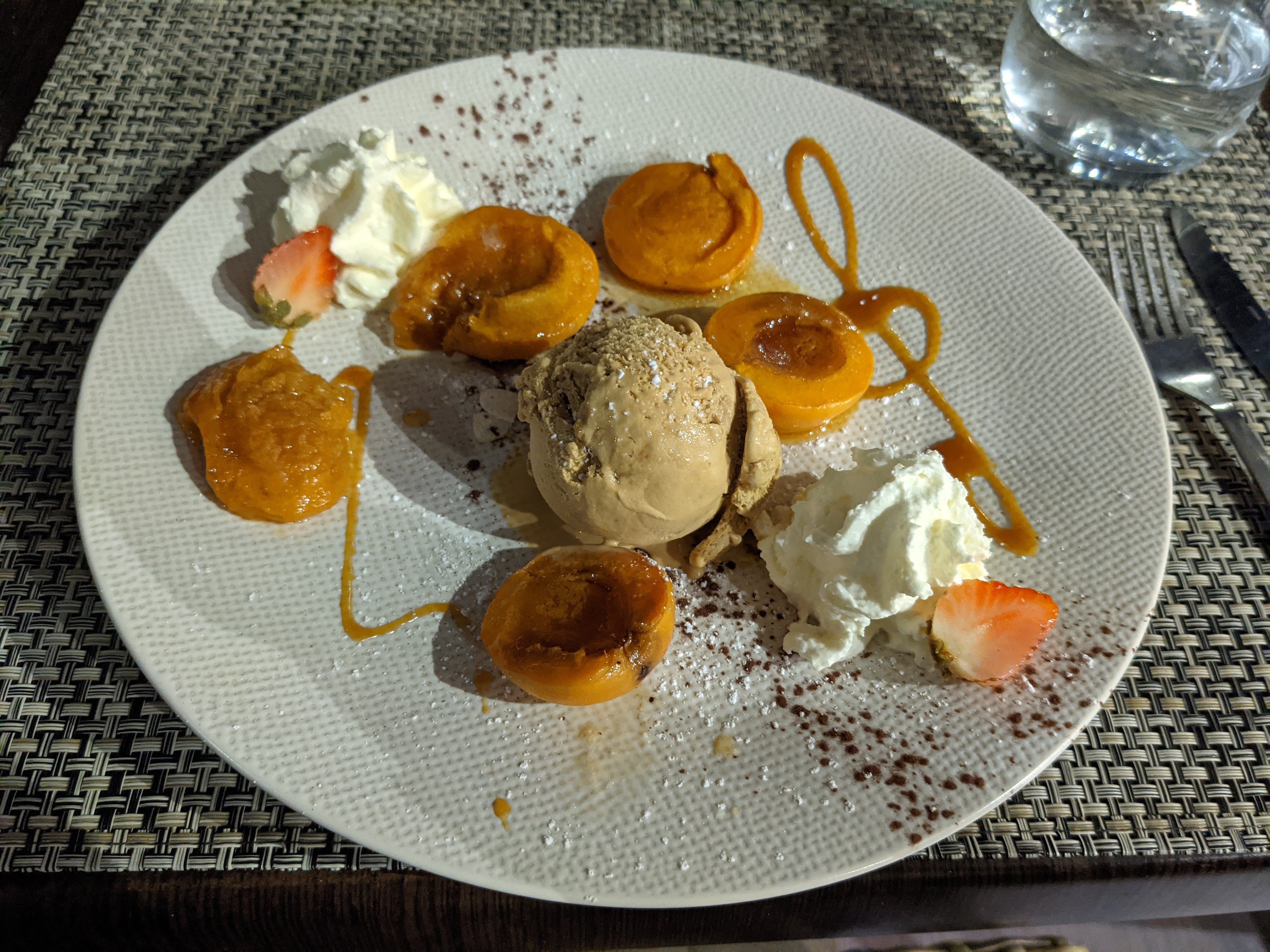 Nul plat froid avec trop de poivre le seul aliment potable le pain raci Et en plus les plans son couteux 53€ entré plat désert pour la qualité c'est abusifs