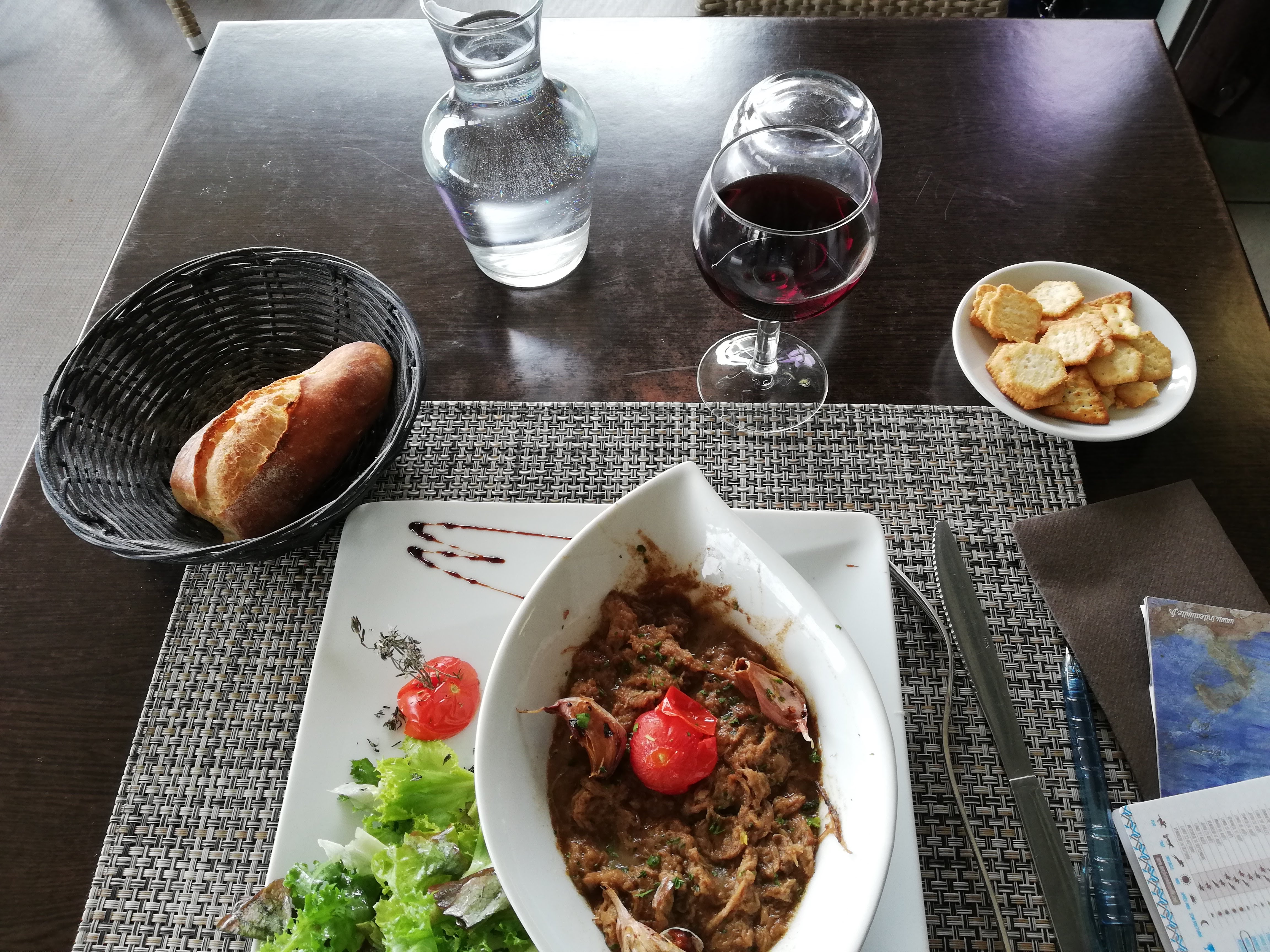 I Pas génial …. Une salade de gésiers tout juste “correcte” suivi d’aiguillettes de volailles sauce crème camembert accompagnés de frites maison … je ne sais pas de qu’elles maisons elles provenaient … mais elles avaient dû en faire plusieurs … un vrai calvaire! En plus je me retrouve avec des couverts gras à souhait ! Pour terminer une tarte Tatin à peine correcte ! Bref ce n’était ni mon jour et encore moins celui de La Terrasse du Marais ! Je n’ai aucune envie d’y revenir !