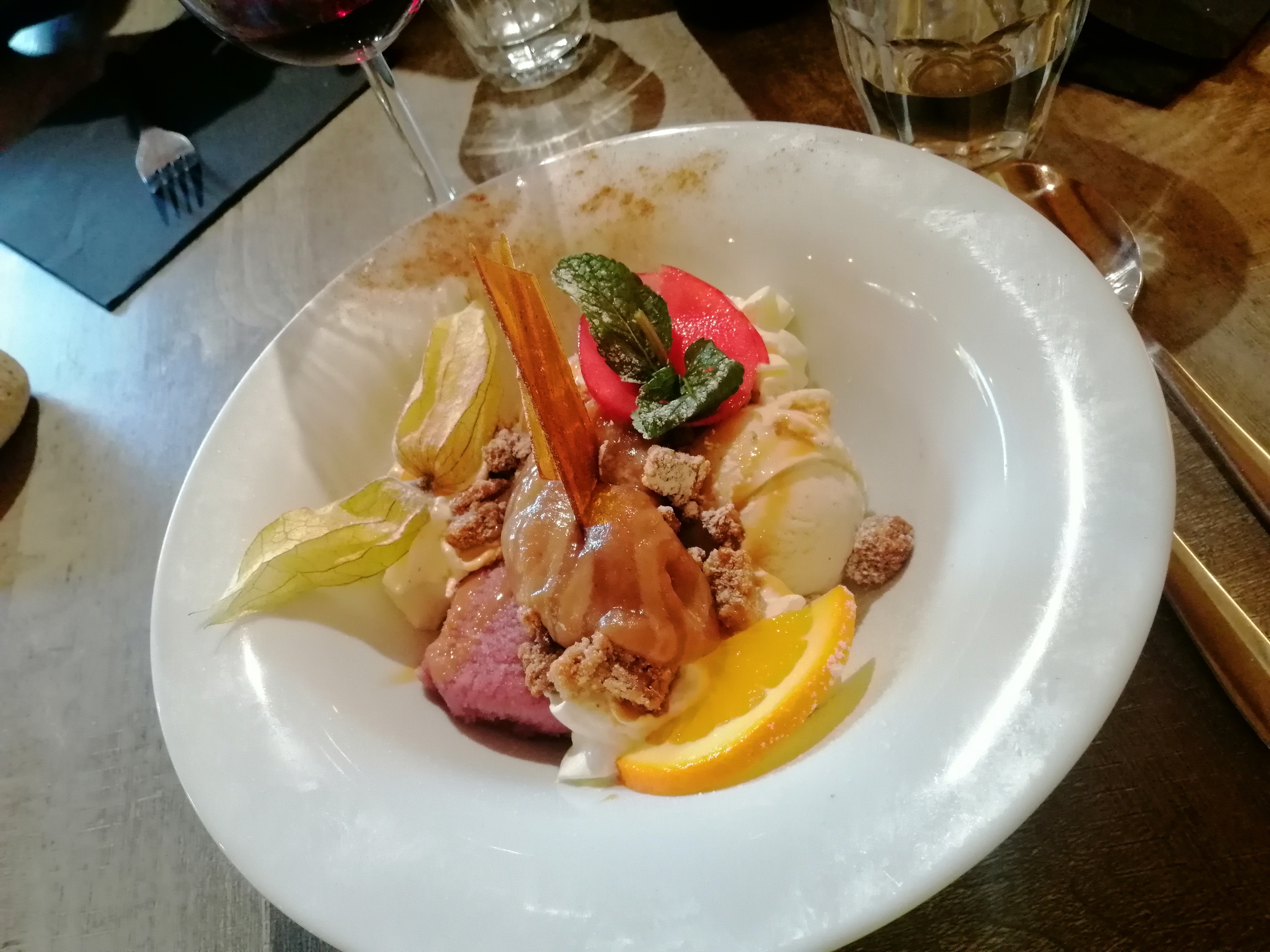 Un sans faute ! Autant dans l’accueil, le service ainsi que la qualité et l’originalité des plats et desserts servis : c’est parfait. Une ambiance conviviale et chaleureuse sublime l’inventivité du chef dans l’assiette. J’y retournerai sans aucune hésitation la prochaine fois, un véritable plaisir ! Ps: attention à servir les vins en même temps que les plats 😉