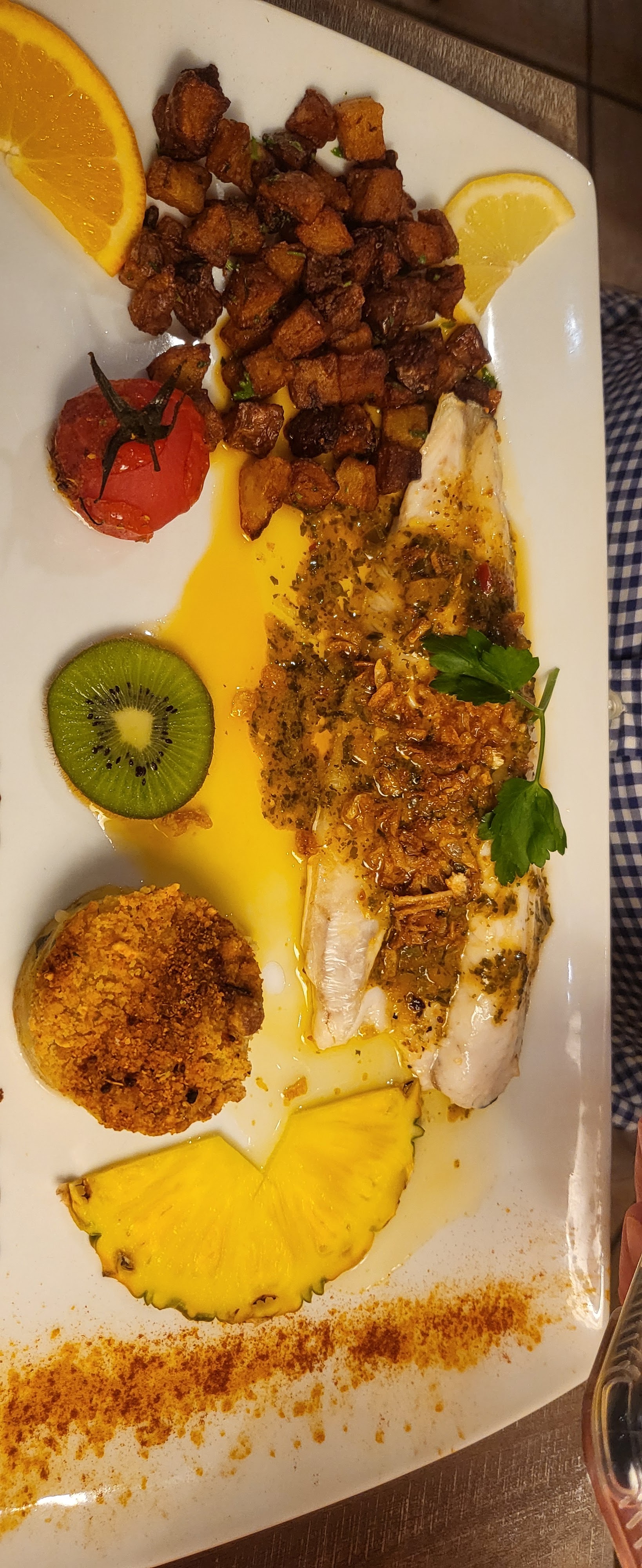 Le restaurant surfait et est très cher. Nous sommes restés perplexe sur les associations très improbables de saveurs donnant l'impression générale d'une incohérence culinaire : le pauvre crabe (au mieux s'il provient de la région) ne sait plus trop où il habite entre le kiwi, l'ananas, le curry, la sauce mangue et les cacahouètes. Les sucrés salés qui s'affrontent se heurtent au palais au détriment des saveurs de l'aliment initial. Cuisine qui se veut recherchée mais au final on cherche ce que l'on mange vraiment. Beaucoup trop de questions mais une seule réponse : ne pas y aller.