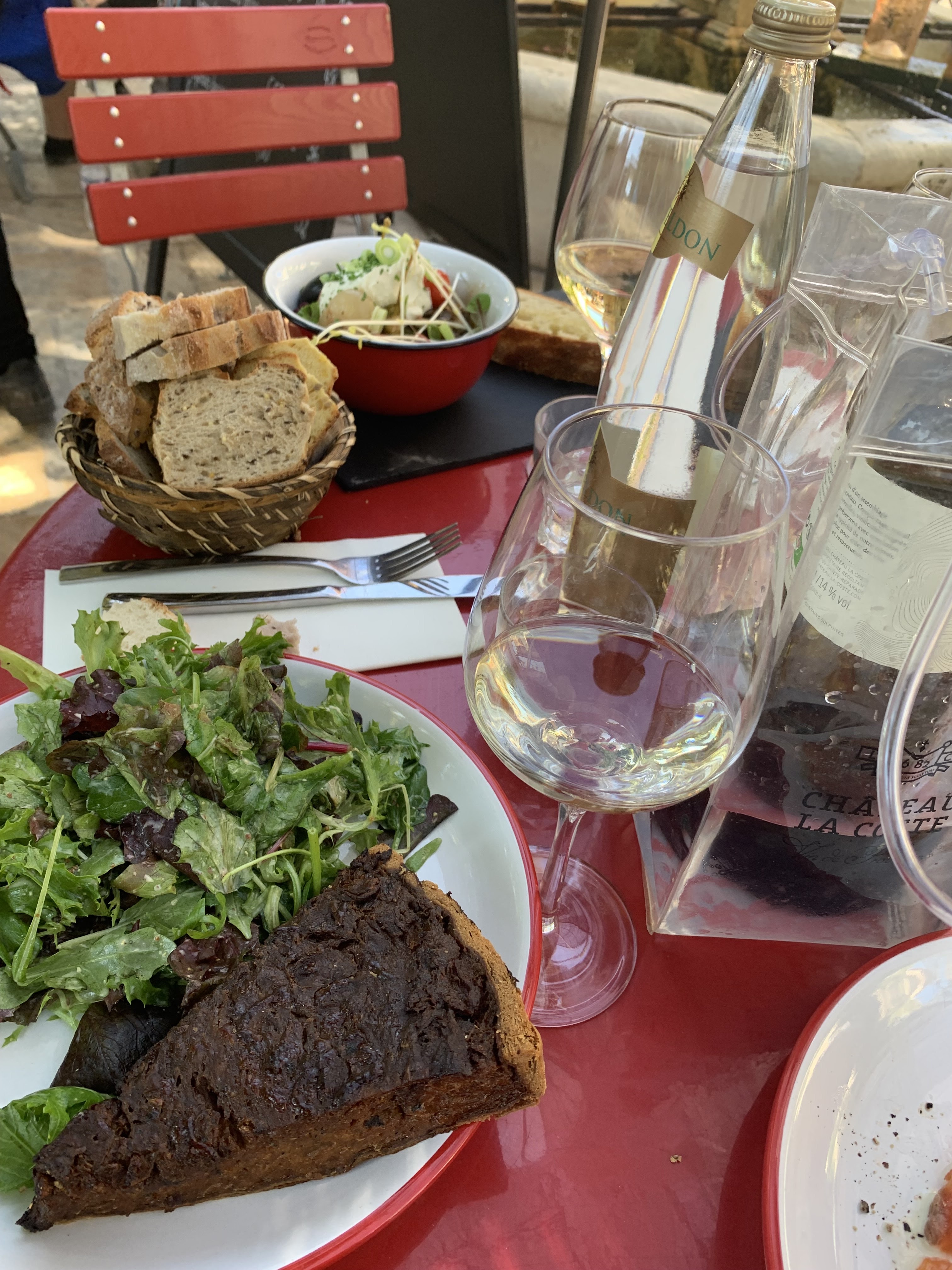 Nous avons très bien mangé dans le restaurant la Terrasse du château La Coste. La célèbre tarte à l'oignon est gourmande à souhait, le melon jambon est bien copieux, les desserts sont excellents... Bref un régal. En plus le service était top. Le tout dans un très beau cadre, terrasse ombragée, chaises colorées et vue sur le bâtiment de Tadao Ando.