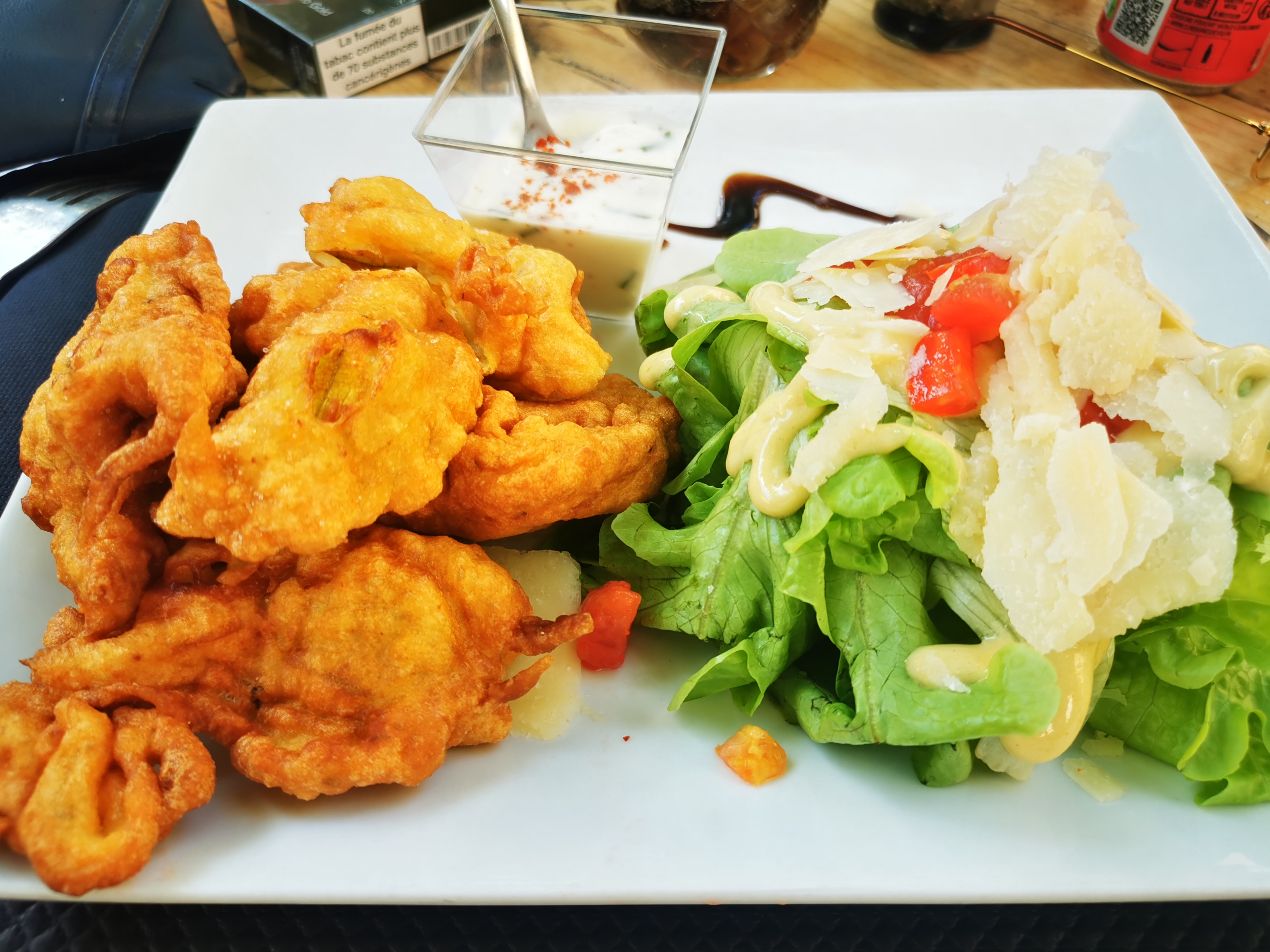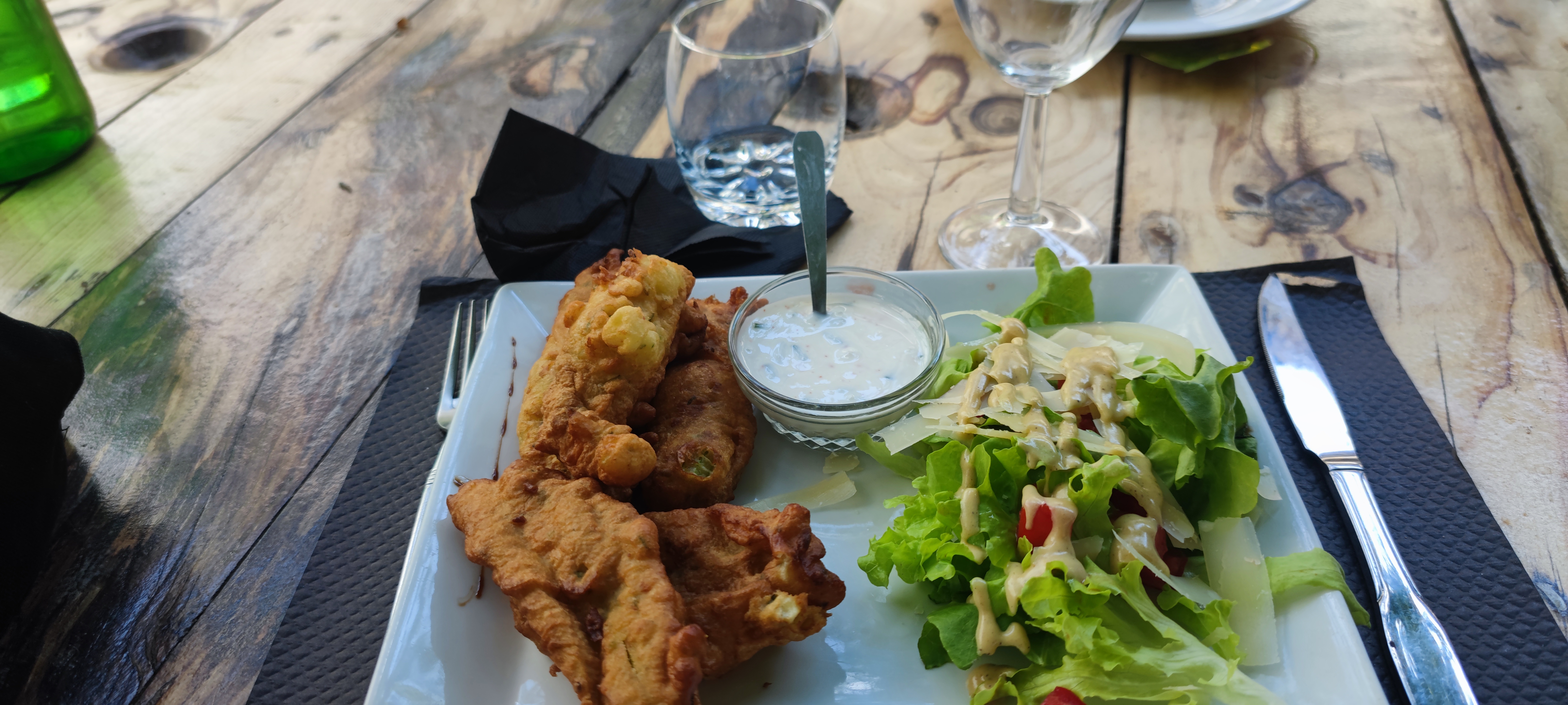 Moment de détente sous les platanes, des produits frais bien assaisonnés en quantité généreuse Je recommande !
