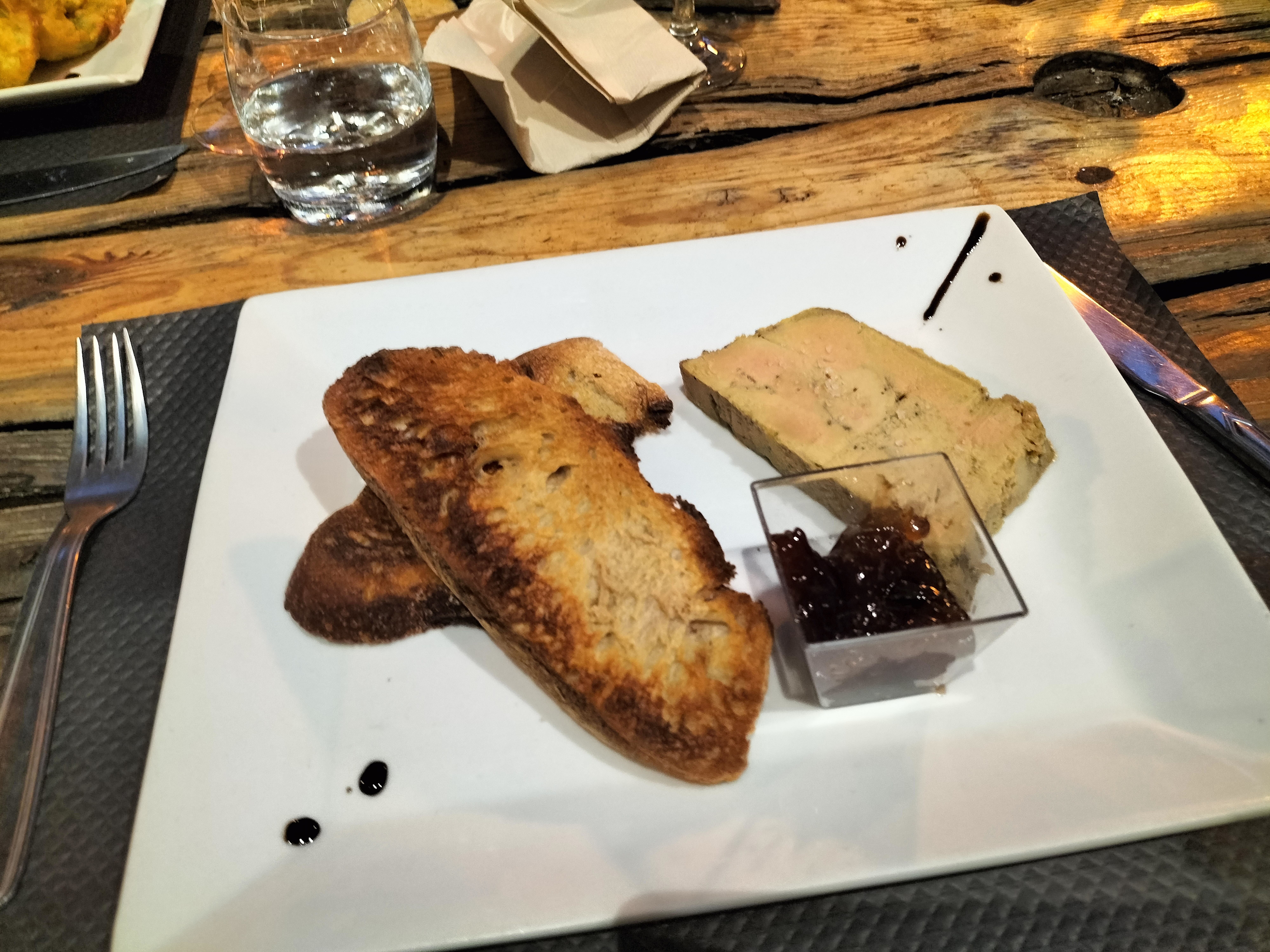 Vraiment bonne surprise ! Joli cadre, terrasse stylée Accueil très sympathique J'ai pris le plat du jour, lasagnes d'aubergines servi avec salade verte. Très bon, très belle quantité, assez rare pour le préciser. Je n'ai pas de photos, je ne sais pas les mettre en valeur pour un plat. J'ai regardé les assiettes passer, de belles souris d'agneau, de belles entrecôtes. Les beignets de fleurs de courgettes mont tapé dans l'oeil ! Ma prochaine visite à Collobrières sera à l'évidence ponctuée par un repas ici, c'est rare les restos bons et abordables. Le patron est très sympathique, comme le reste de l'équipe par ailleurs. Nous avions en commun la Haute Savoie, alors on a discuté un moment avec plaisir. Cerise sur le gâteau, le limoncello a été offert à tous les clients ! Remarquable !