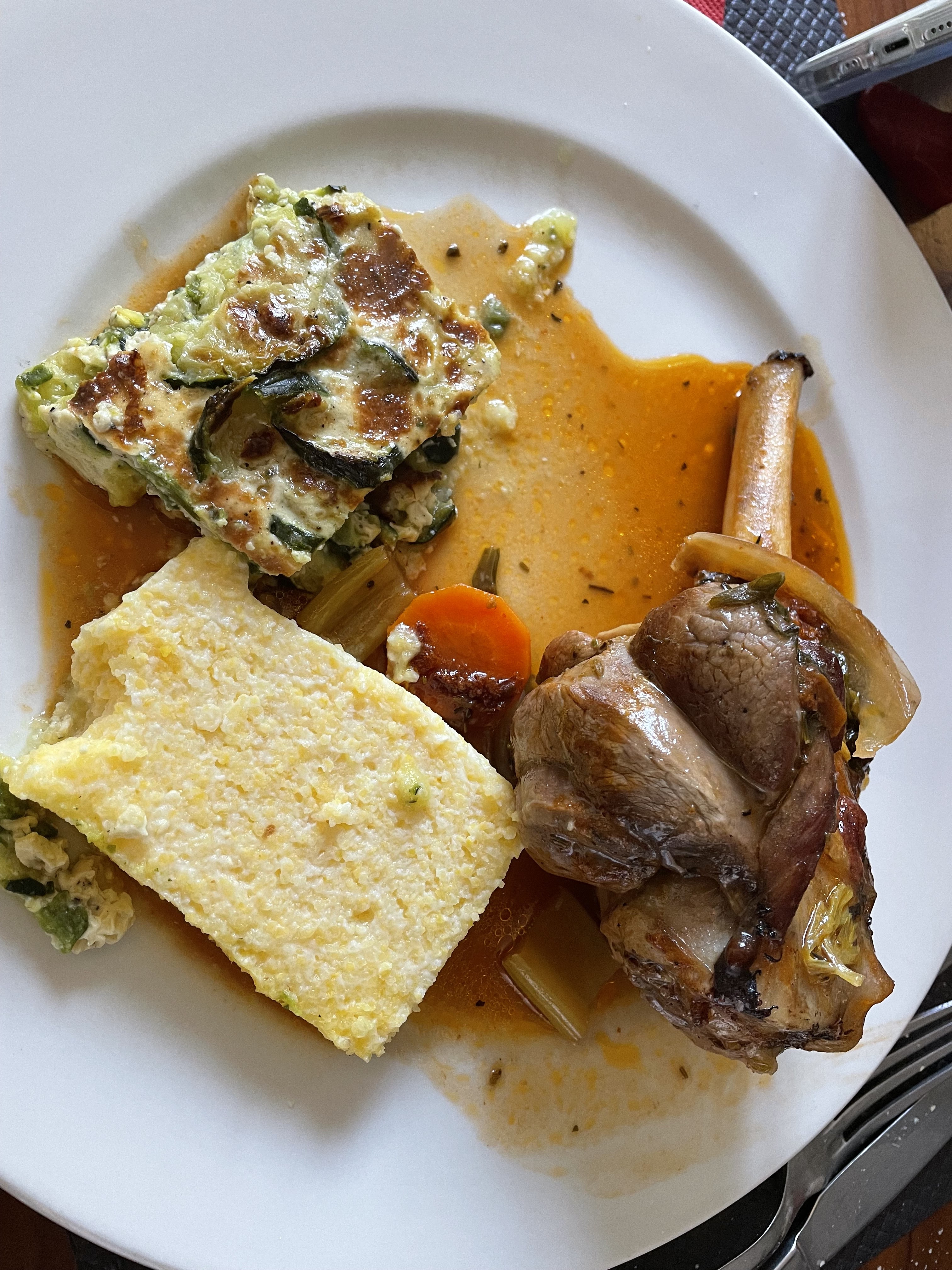 Nous avons été très bien accueilli, sans réservation, le patron nous a trouvé une bonne table avec vu sur la place et les arbres. La femme au service très agréable et à l'écoute des clients. Les cannellonis d'aubergines, la daube de sanglier très tendre, les crevettes sautées à l'ail et persil, le tout accompagné de gratin de courgettes moelleux et polenta et pour finir la tarte aux poires maison comme tout le reste et copieux. Un véritable moment de chaleureux plaisir, nous reviendrons 😊