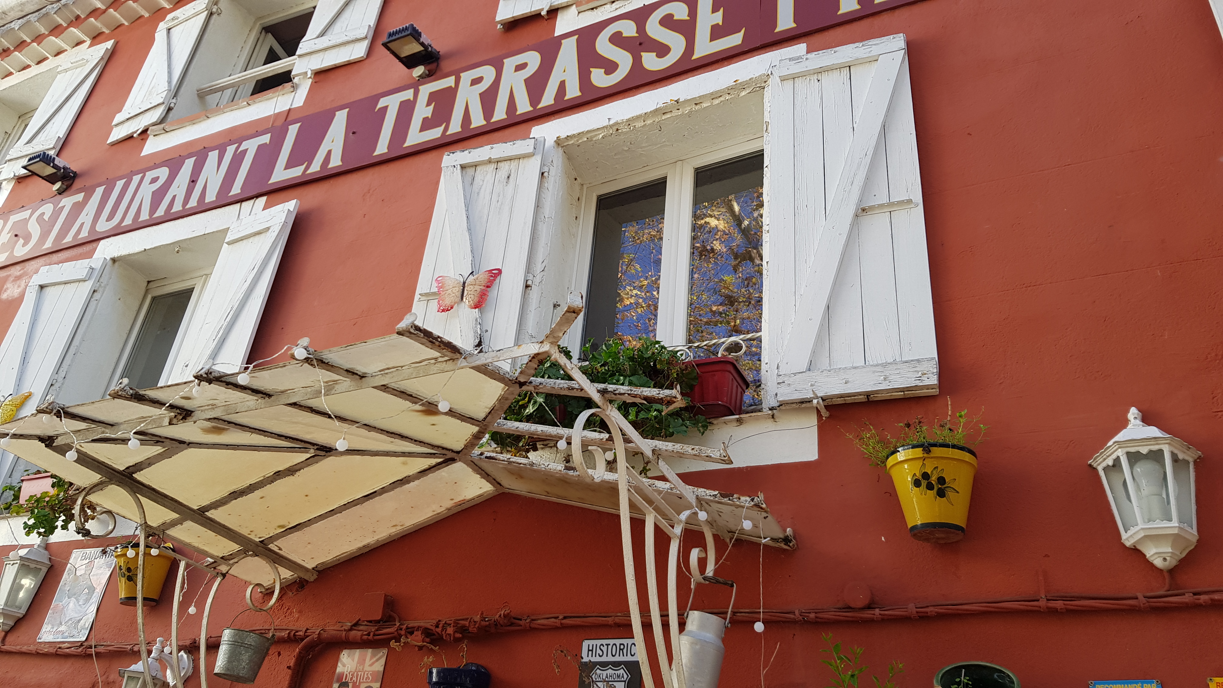 Aujourd'hui , une halte à Collobrieres au resto LA TERRASSE PROVENCALE , très bon accueil , un menu ( 34 € ) avec le choix dans toute la carte : tète de veau, rognons, daube de sanglier, souris d'agneau, etc _____ avec des entrées : foix gras , fleurs de courgettes , et autres , le tout excellent et copieux , des vins de la région excellents , des desserts : glaces aux marrons , tartes aux figues ____ Pour terminer café , limoncello ( offert ) . Vaut vraiment le détour et l'envie d'y retourner .