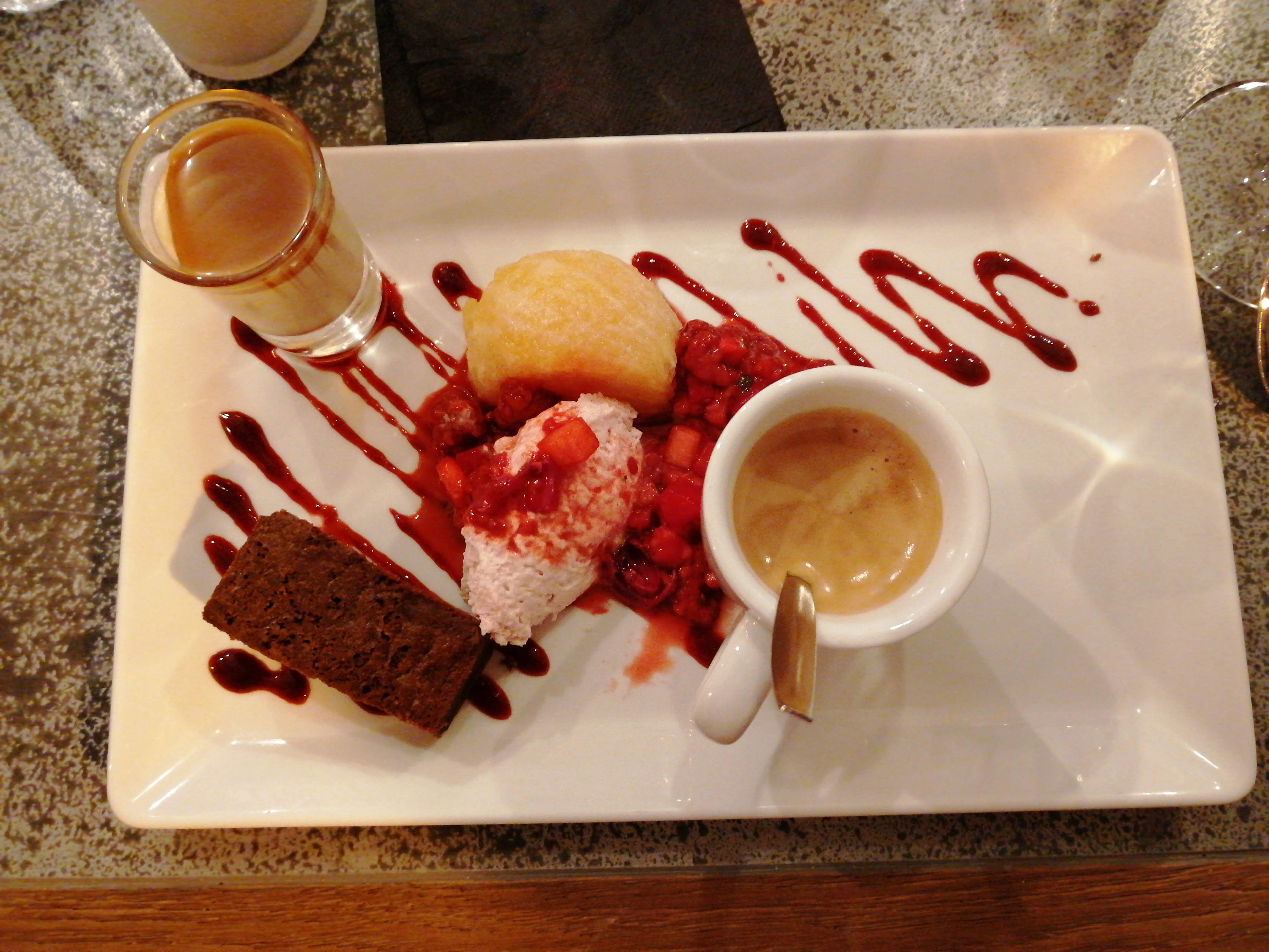Un peu déçu pour plusieurs raisons, le carpaccio de bœuf avait le goût du poisson donc vraiment pas ce qui était prévu.(Le chef aurait-il mal nettoyé sa planche?) Quelqu’un a commandé la salade périgourdine avec un « toast de foie gras » ( soit disant blancoté sur la carte mais pas les nôtres) qui était remplacé par du pâté de campagne. Puis la salade césar annoncé sur la carte avec son « poulet croustillant » qui n’était pas du tout croustillant… à se demander même s’il datait pas du jour d’avant ou s’il n’était pas industriel? La fameuse vinaigrette césar s’est transformée en vinaigrette classique à la moutarde. Et la salade romaine en mesclun.. Mise à part ça le serveur était sympathique.