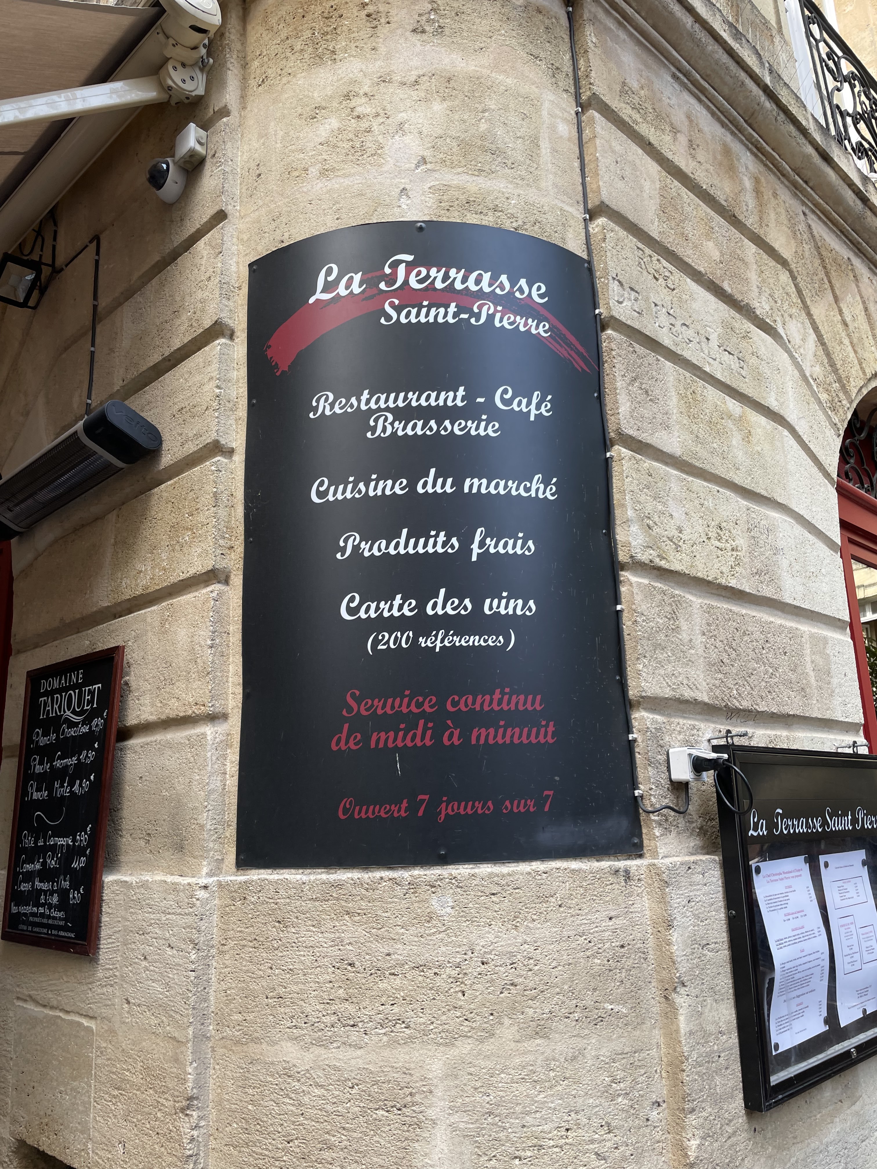 Voici toutes les informations sur le Restaurant La Terrasse Saint-Pierre qui ce trouve au 7 Pl. Saint-Pierre, 33000 Bordeaux (33). Sur cette fiche vous trouverez les photos, l'adresse, les horaires d'ouverture, le numero de téléphone et les avis clients.Vous pouvez églement rédiger un avis si vous le souhaitez en bas de page.
