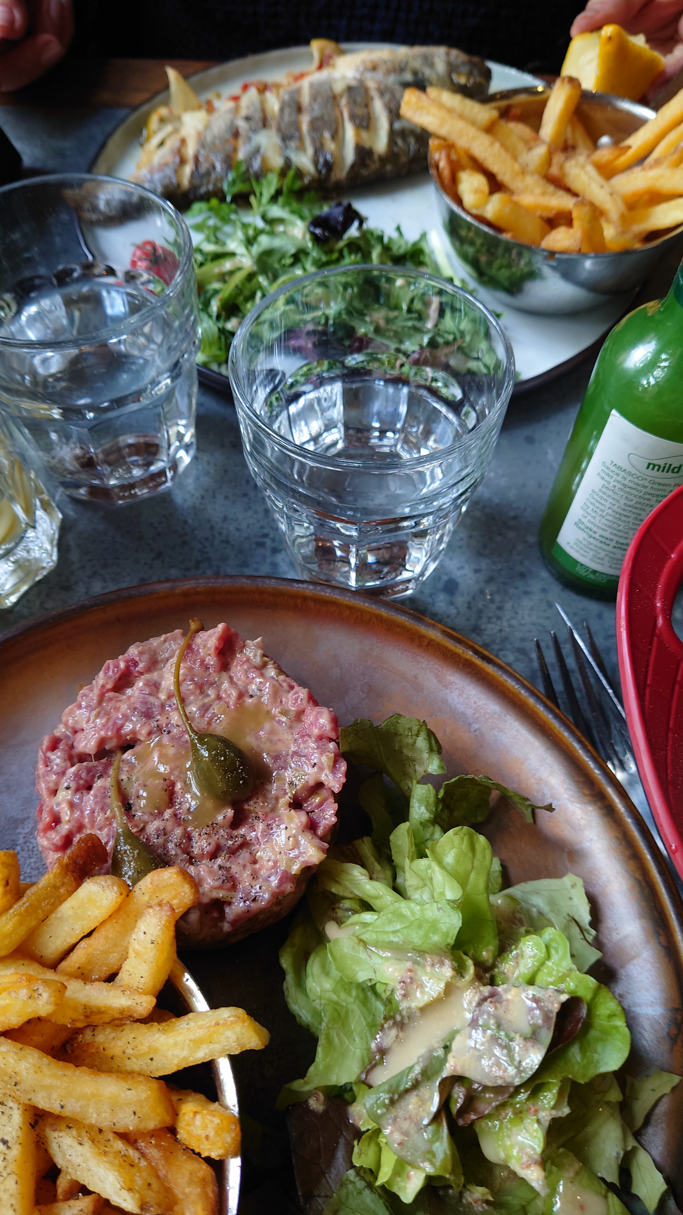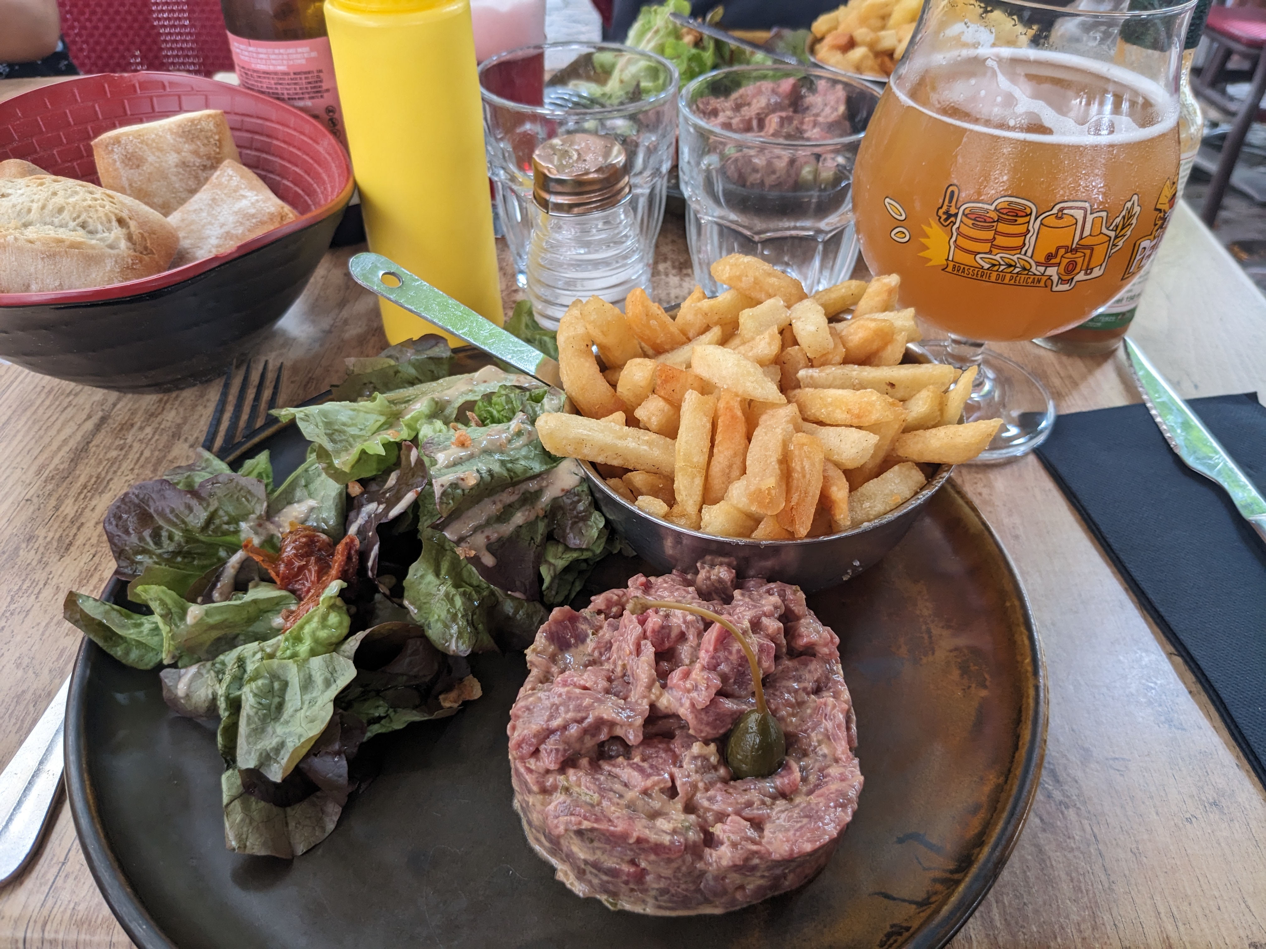 Nous avons mangé du tartare de bœuf et du poisson avec du risotto. Les deux manquent de saveur et sont très décevants. De plus, j'ai eu une intoxication alimentaire à cause du tartare de bœuf