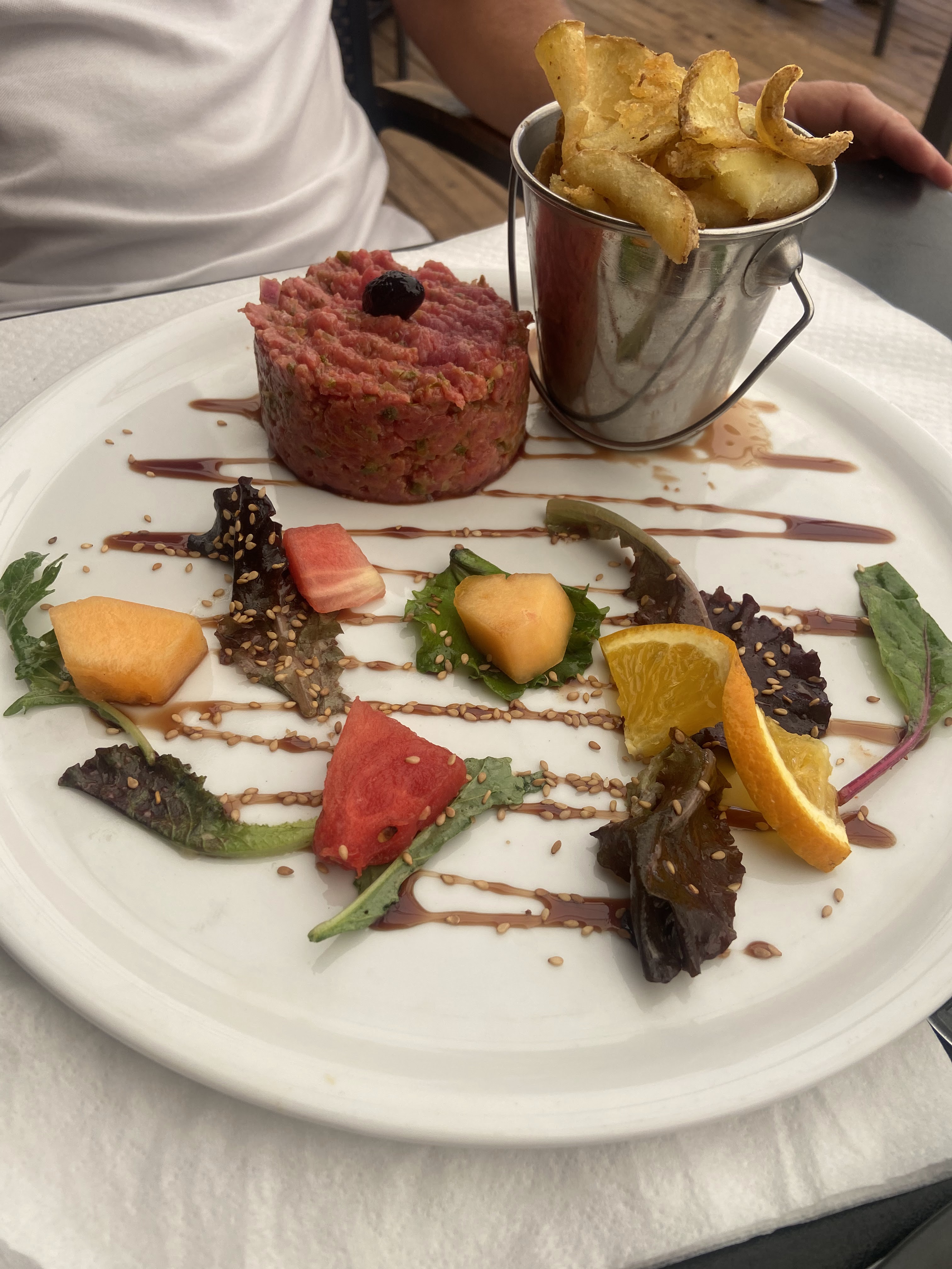 Nous y avons mangé à midi. Un tartare de boeuf parfaitement préparer et delicieux. Un service souriant et attentif. Merci beaucoup pour ce moment.