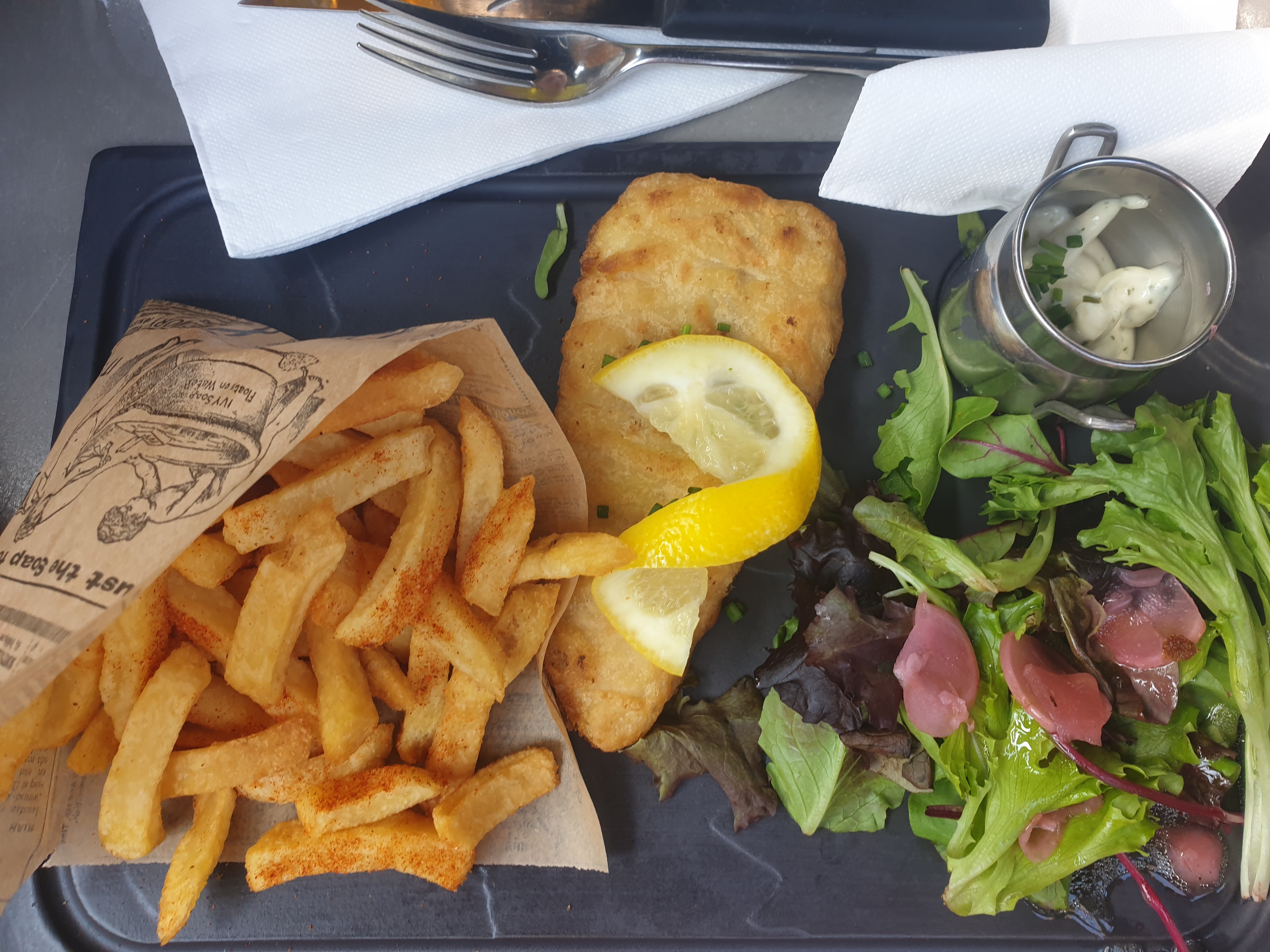 Nous étions 5 personnes et nos 2 bichons pour déjeuner. Nos chiens ont aussi été acceptés. Nous avons tous de suite été très agréablement surpris par l'accueil très agréable, la musique d'ambiance ainsi que le cadre. Nous voulons absolument souligner la gentillesse, la sympathique et le professionnalisme du personnel. Nous avons tous très bien mangé. Nous étions 4 à manger des moules, elles étaient délicieuses. L'une de nos convives avait opté pour le Fish and Chips qui était tout aussi délicieux. Vraiment une très belle adresse à retenir. Un seul regret : nous venons de Belgique et c'est un peu trop loin pour y revenir aussi souvent que nous le souhaiterions. Qu'à cela ne tienne, nous sommes dans la région pour plusieurs jours, nous y reviendrons très certainement. Encore félicitations à la Chef qui nous a préparé ce délicieux repas.