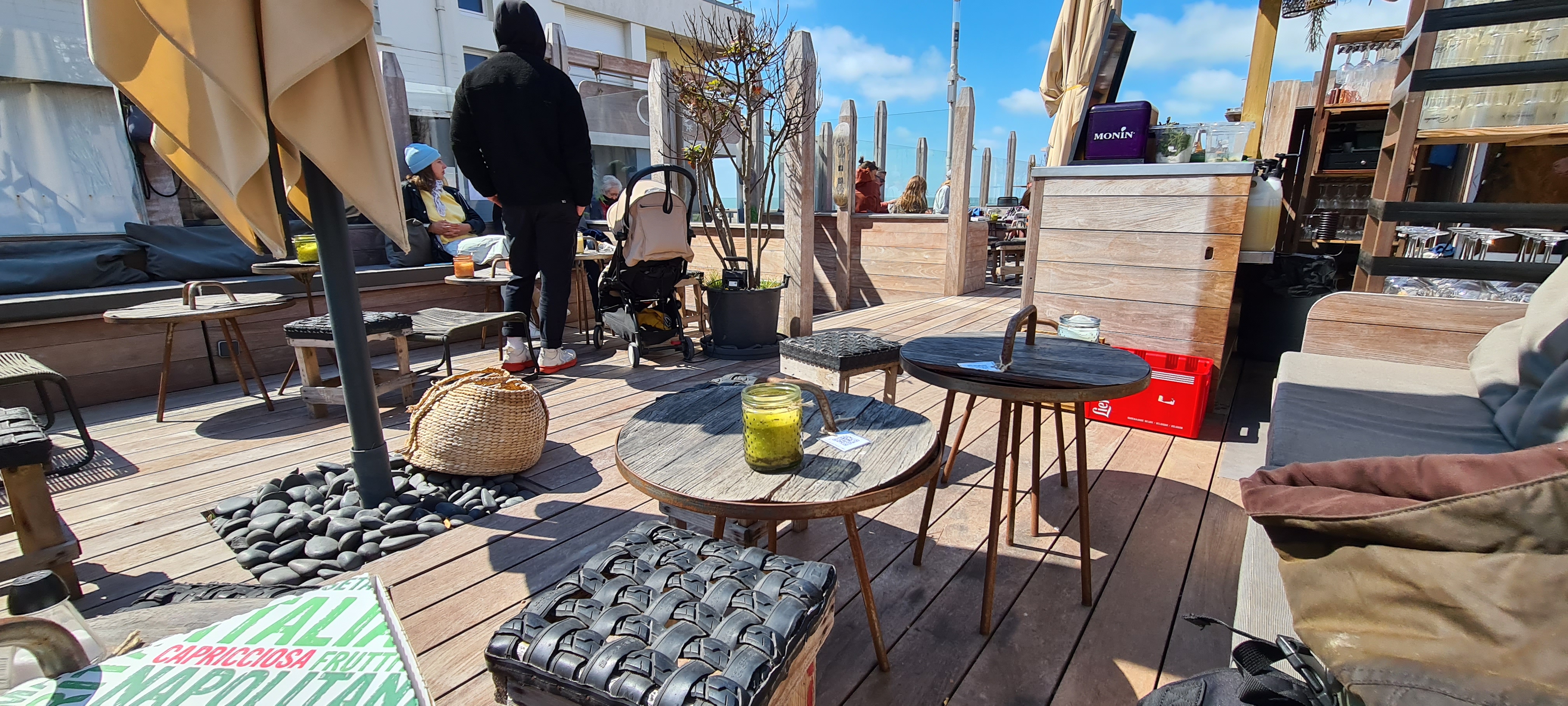 Personnel très sympa et avenant, ils proposent des chapeaux pour le soleil et couverture pour les fraîcheurs, et même un bar à toutou . Locaux propres et design avec des touches d'humour. A surveiller, l addition qui monte vite, très vite car les tarifs sont d un bon niveau. Point noir, les toilettes parfaitement inadaptés pour les personnes peu mobiles et impossible en fauteuil roulant.
