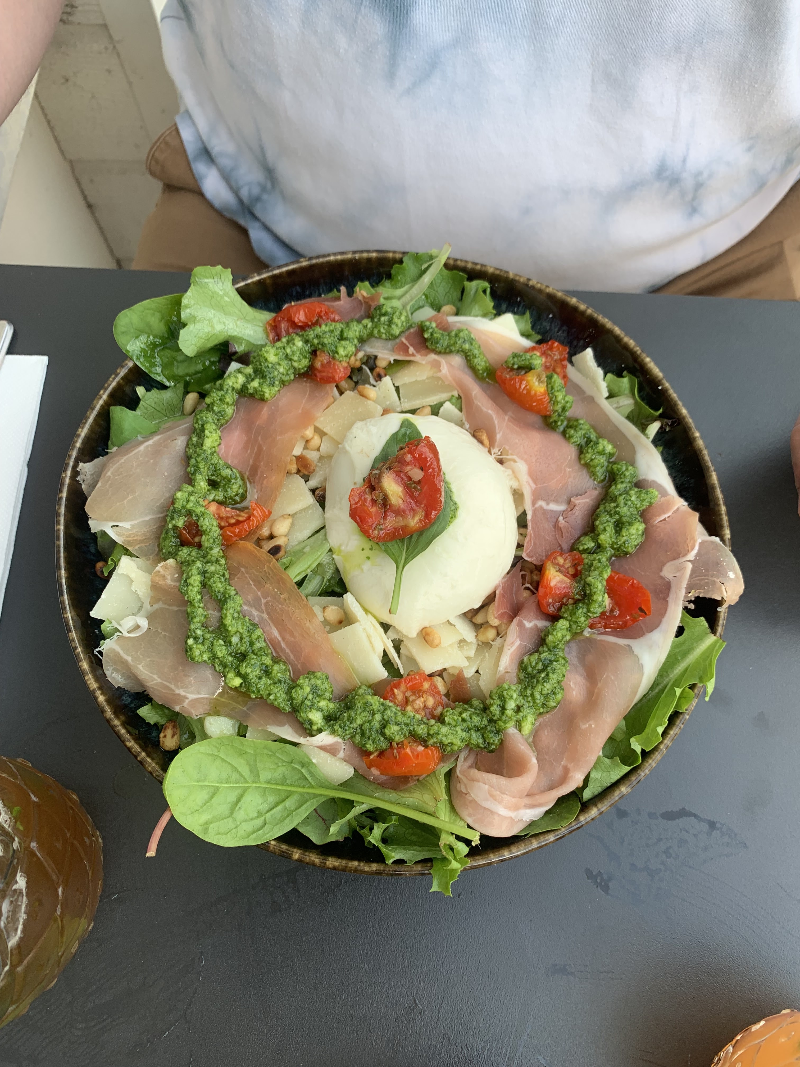 Nous avons commandé une salade maison (plus de 18€ pour de la salade, de la burrata, des tomates et du jambon sec...) et une pizza 3 fromages. Point positif: les serveuses sont très polies et souriantes (consigne relationnel-client bien suivie ;-) ). La pizza est loin d'être concluante: pâte assez fine et craquante, avec beaucoup trop de crème fraîche liquide comme base , surtout par rapport au peu de fromage dessus (la recette indique quelques copeaux de parmesans....Je confirme le 'quelque' ...). Au final, la pizza ruisselle de crème fraîche liquide chaude et l'ensemble est plutôt qualifiable de 'galette à la crème liquide' tant sur l'aspect que sur le goût. Ce n'est pas une remarque méprisante, mais juste une piste d'amélioration: utiliser une base de crème fraiche épaisse mais pas trop, et augmenter la quantité de fromage.... et sur une pâte à pizza travaillée à la main et qui gonfle à la cuisson. Pour la salade...ben, c'est 50% minimum de salade: vous aimez la salade, prenez cela, mais c'est cher la salade. Au final, addition de 37€. C'est assez cher quand même