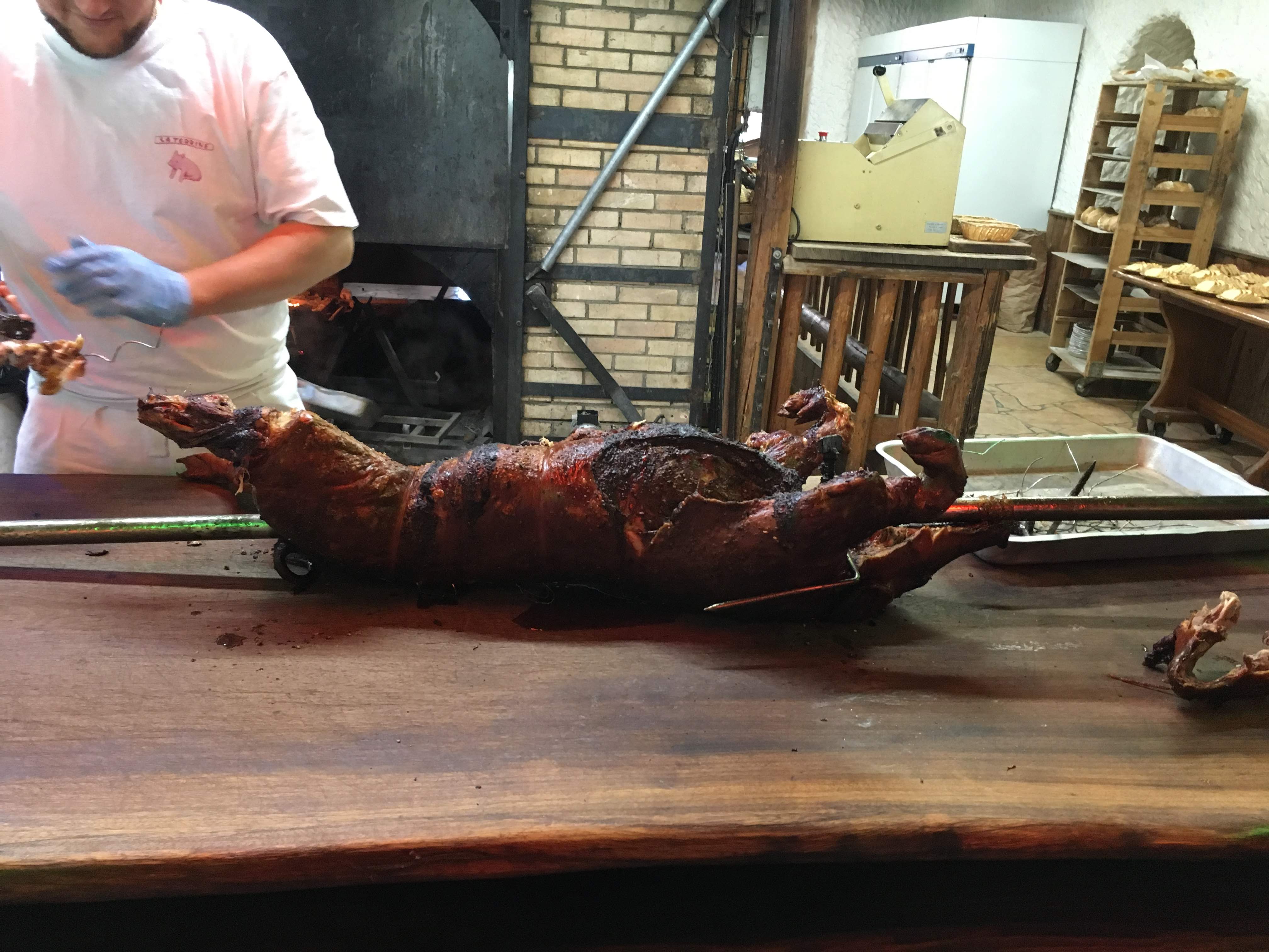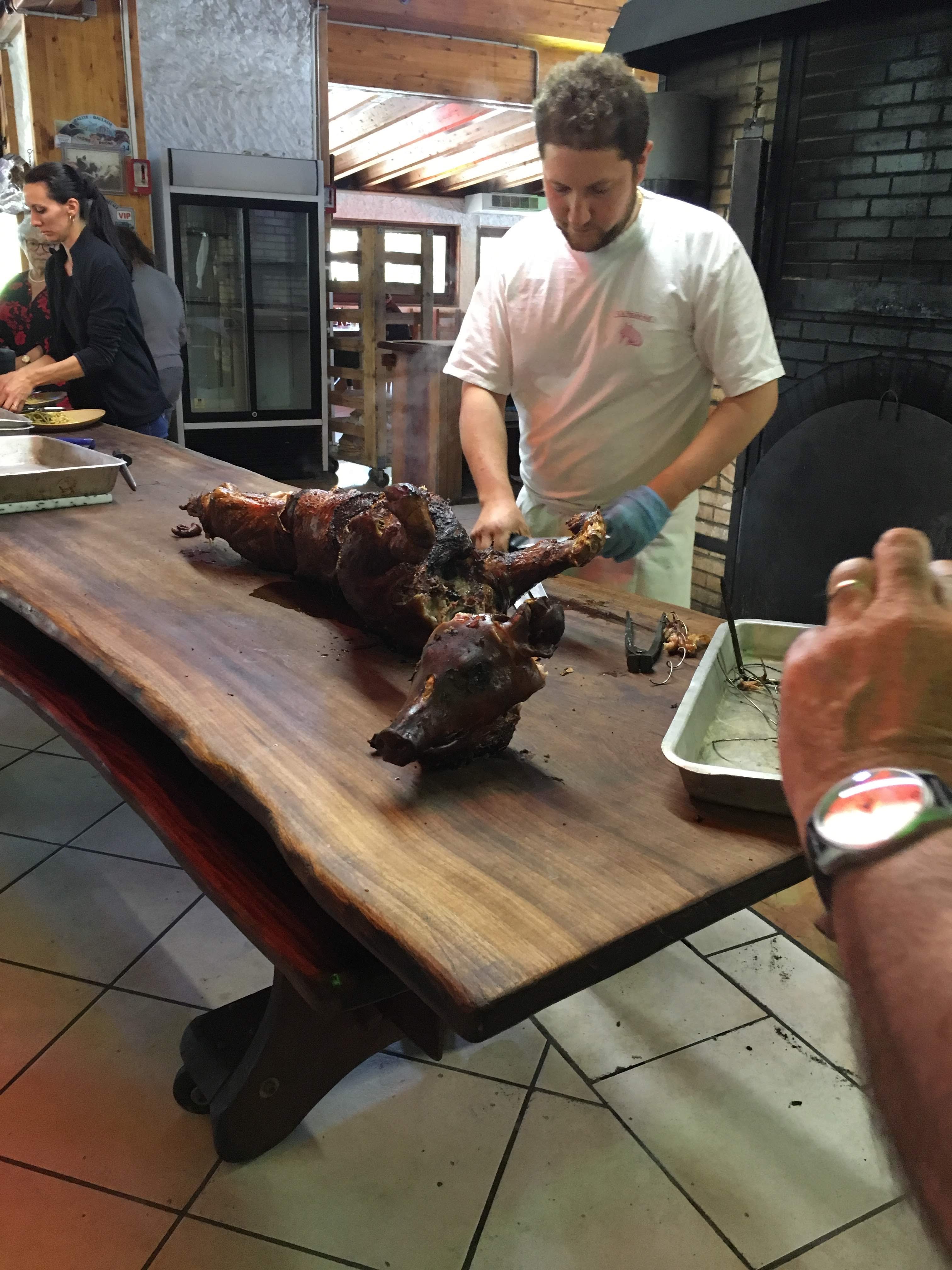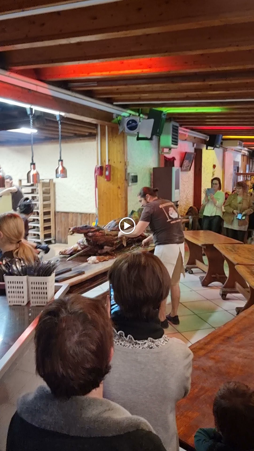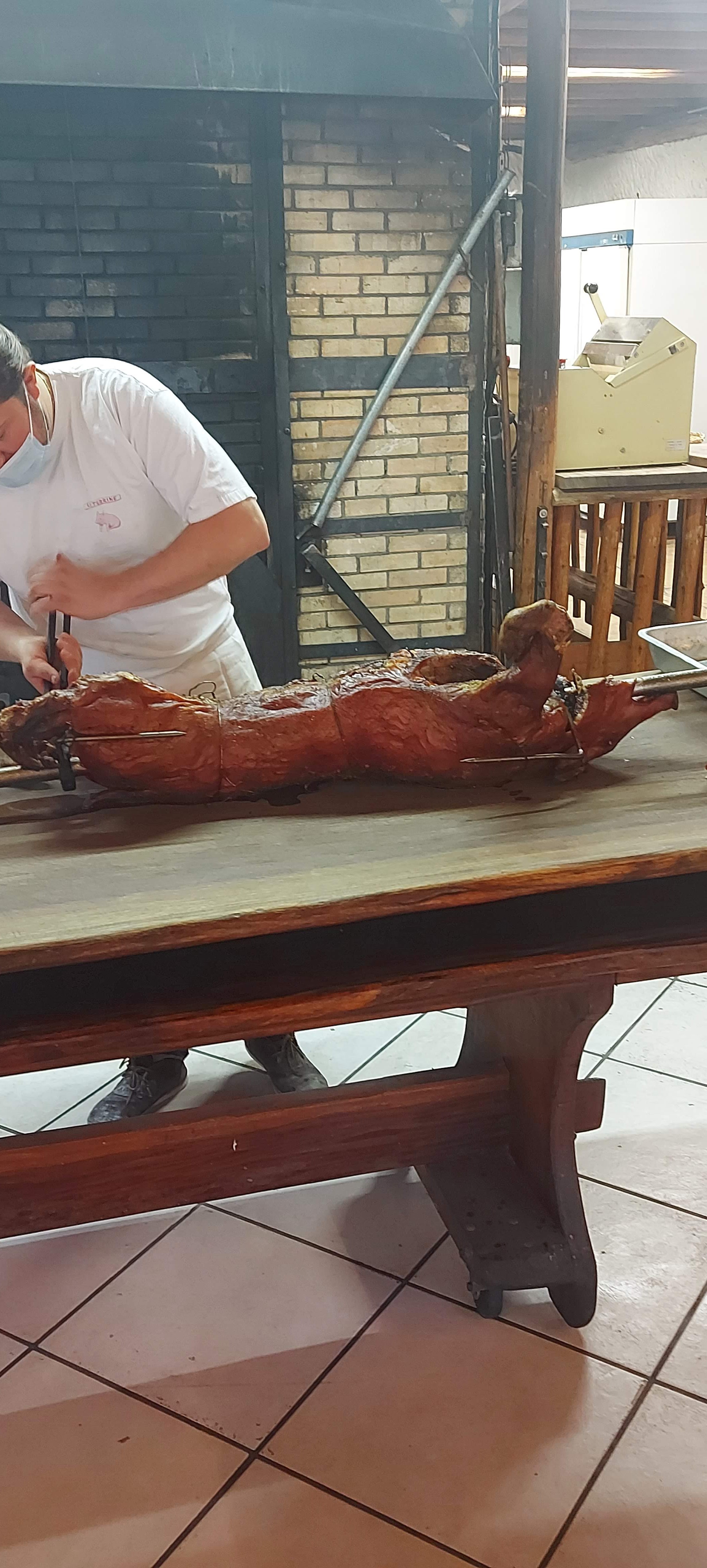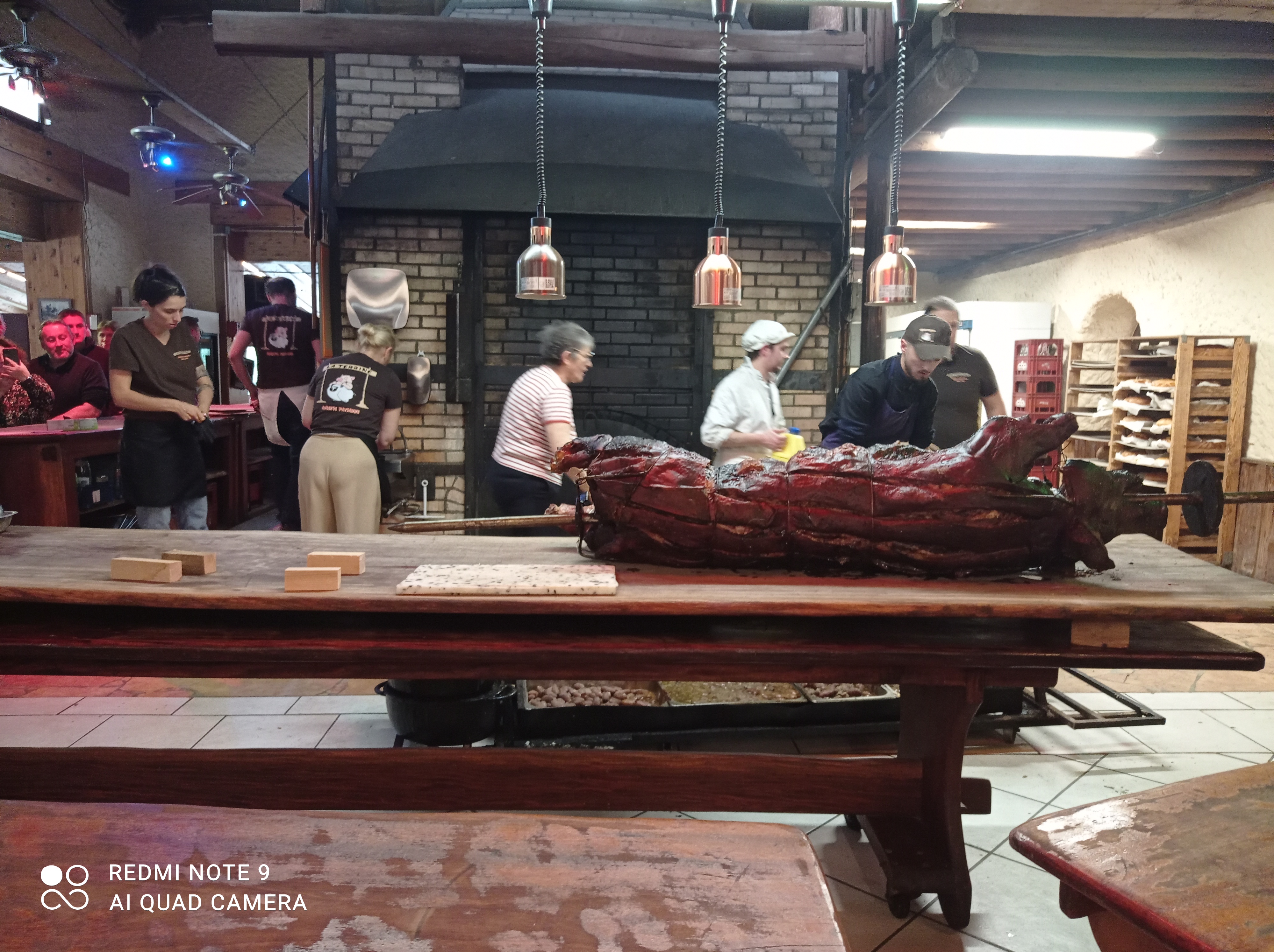 Restaurant où l'on mange le cochon élevé sur place. La cuisine est bien copieuse et gourmande. L'attraction est LA sortie du cochon du four avec l'ambiance. Allez y en famille, entre amis... Et bravo au Chanteur.