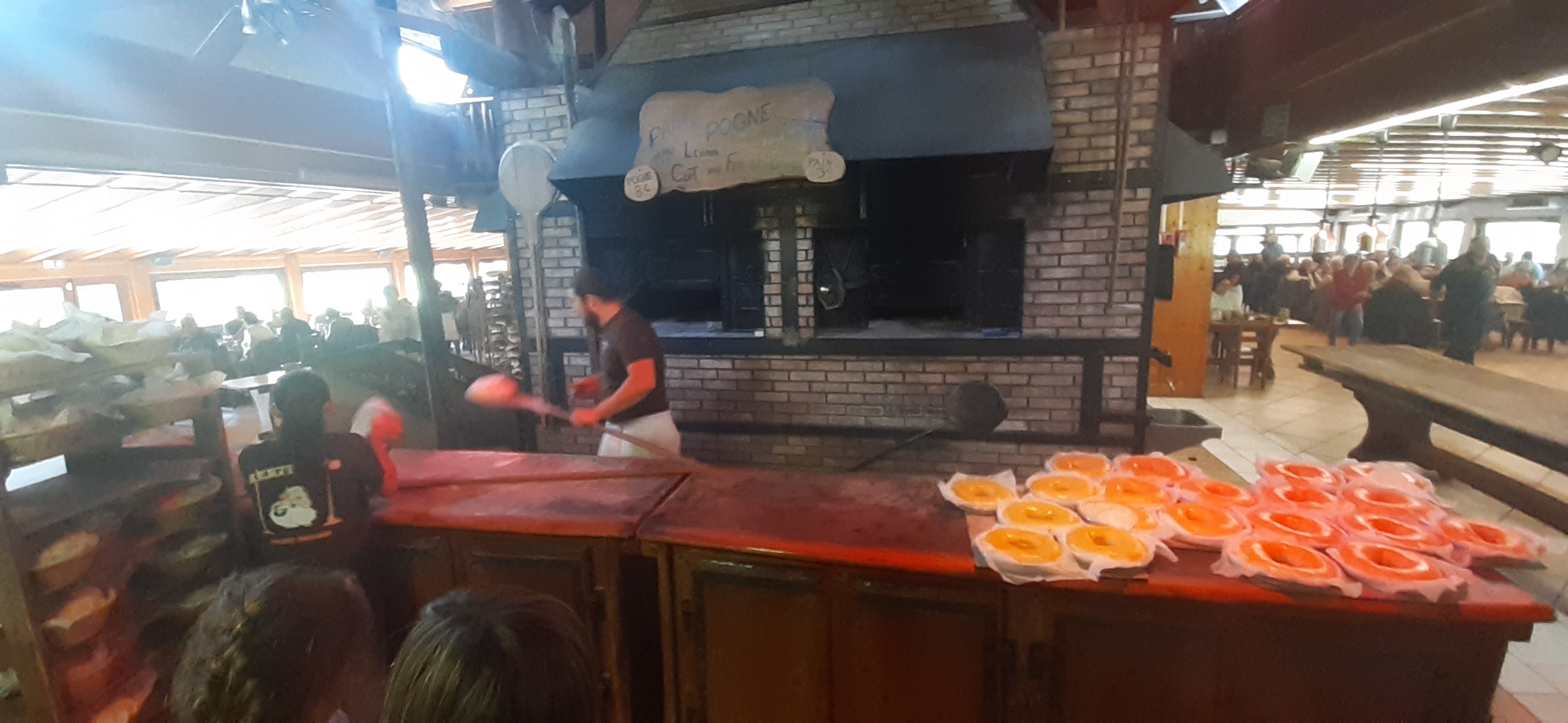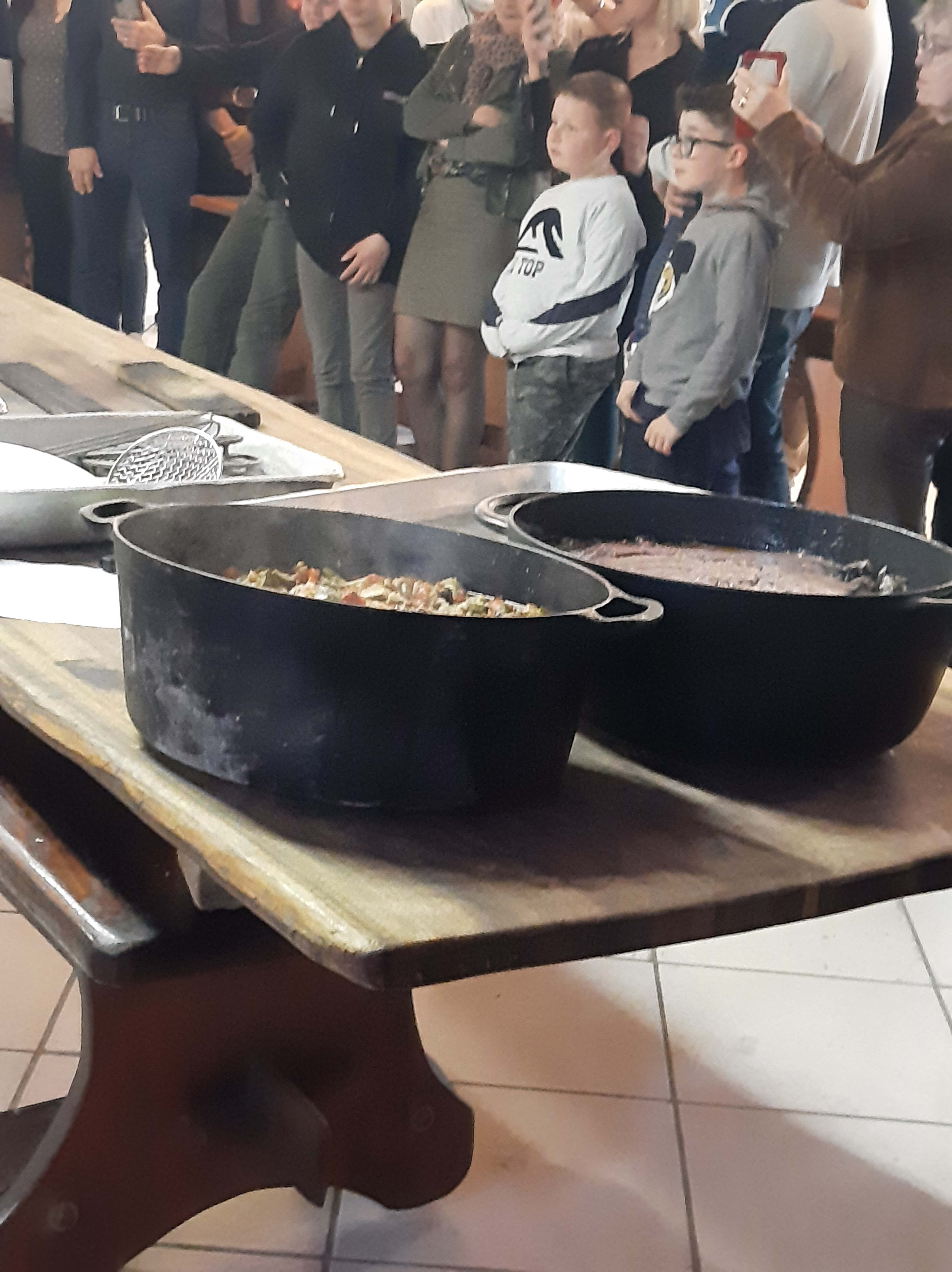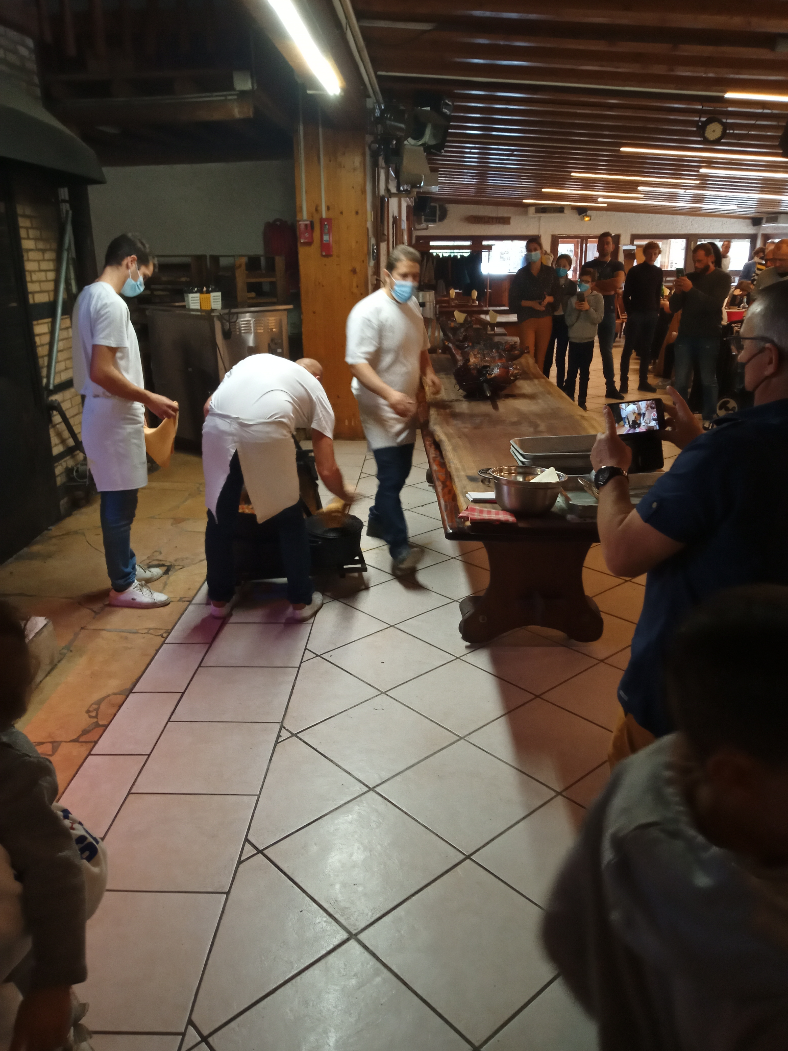 Une très bonne ambiance convivial avec notamment les fameuses étapes de mise au four des pains et pogned, ainsi que la découpe du cochon. Pour ce qui est du menu, j'ai beaucoup aimé les entrée, moins le cochon, plus par goût personnels. Nous y étions dans le cadre d'un anniversaire et le gâteau fait maison était très bon et change de l'ordinaire.