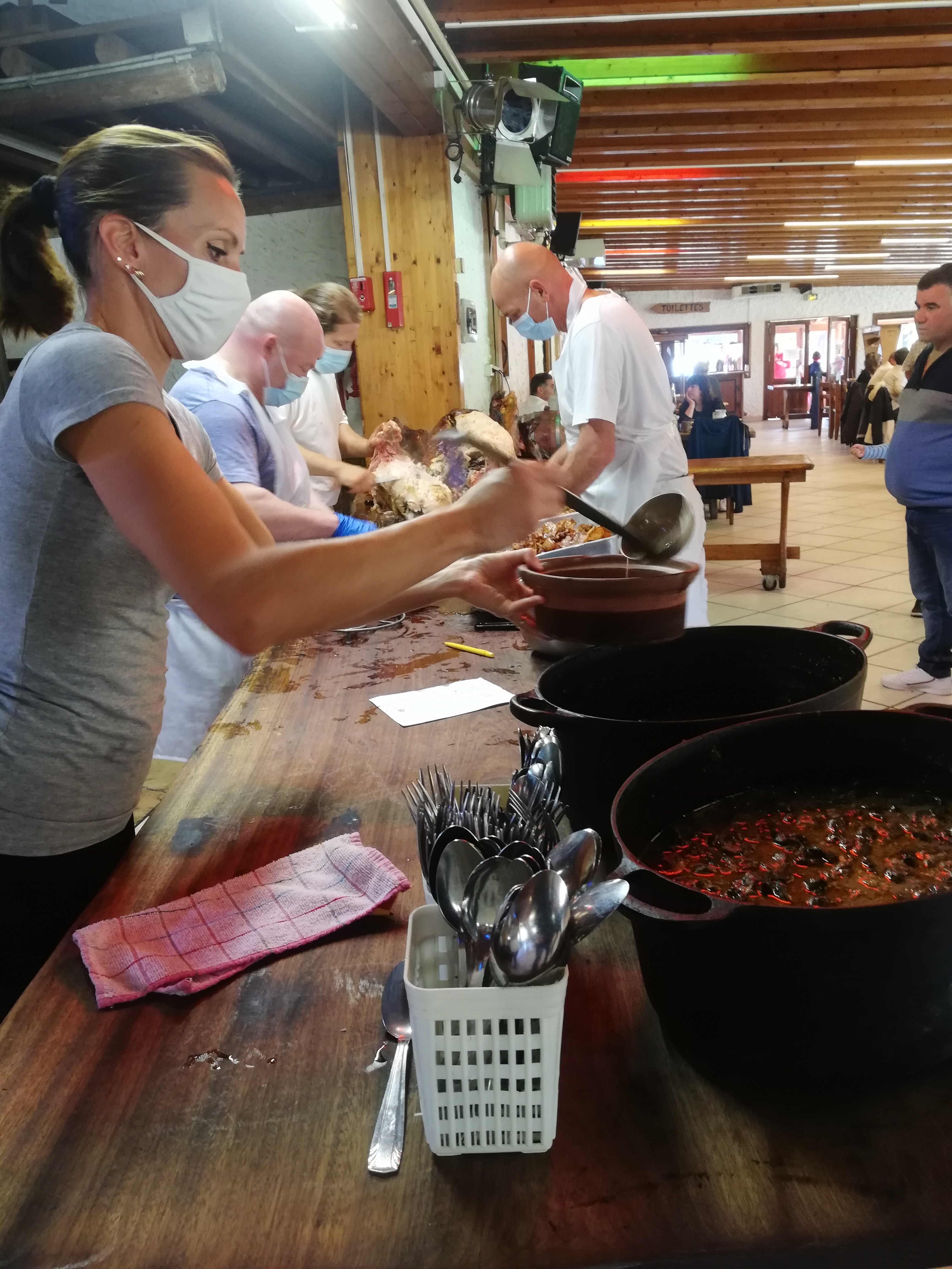 Excellent repas à base de porc pour l'entrée et le plat chaud. Animation assuré par la découpe du porc devant les clients mais aussi par une après midi dansante. Lors d'une petite balade digestive vous pourrez voir les cochons dans leurs enclos.