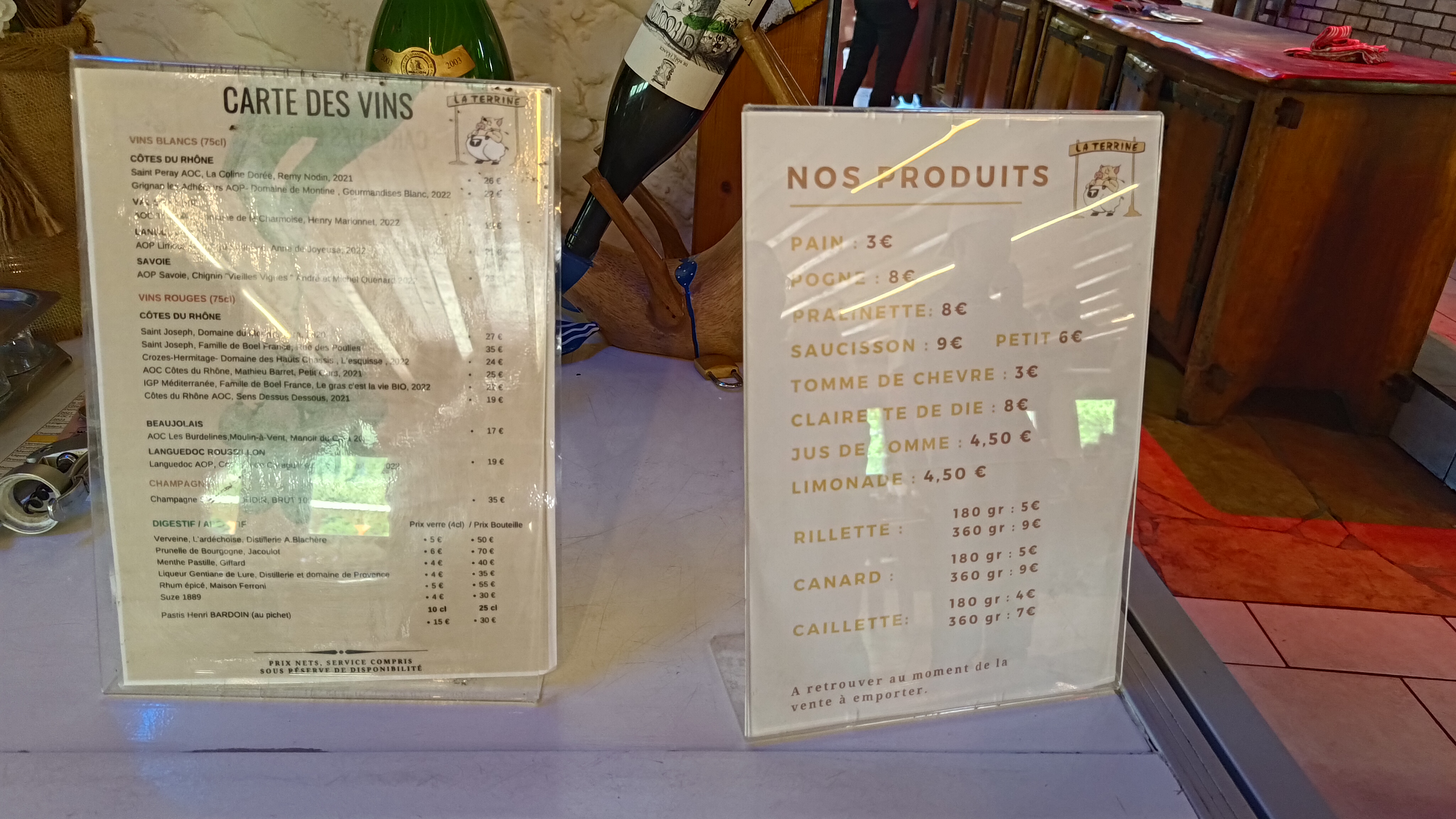 Accueil chaleureux, enfin du goût dans une assiette, tout est fait maison et ca se sent, rillettes, terrines, pain, pogne de Romans, nougat, cochons et j'en passe ...une amabilité et des sourires, une bonne franquette, on en ressort repu et heureux, que dire ... le bonheur pour un prix dérisoire.
