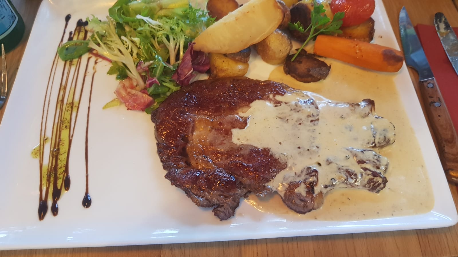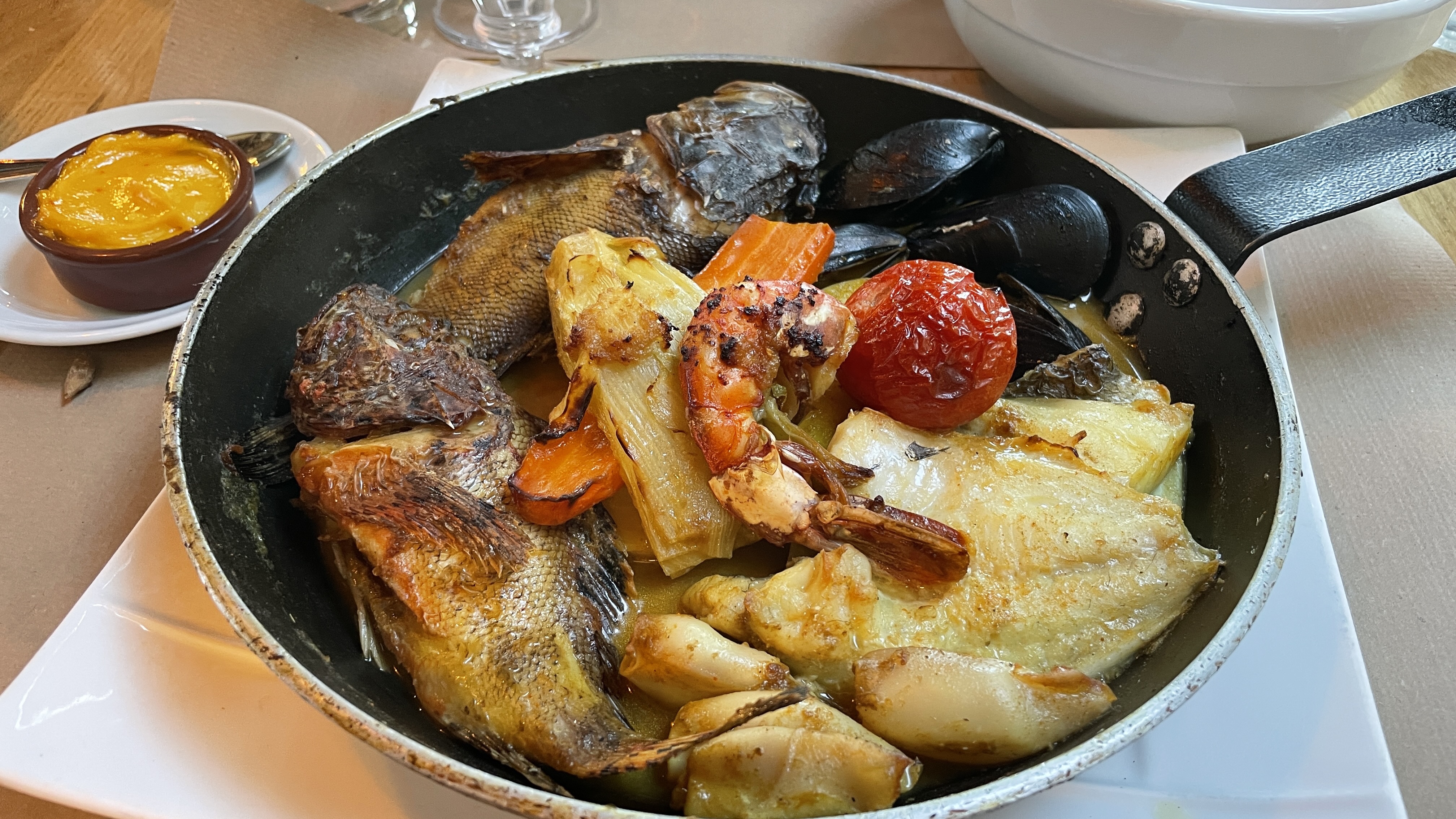 Je viens du Nord et je peux vous dire que les moules ça nous connaît, mais la moule aux pins (je me souviens plus exactement de l'intitulé du plat désolée) c'était FABULEUX! Avec la petite huile pour agrémenter le tout... Un délice. Le plat bah nickel. Flexitarienne qui se retrouve à manger tout entier un onglet énorme. Petits légumes au poil. Et le dessert tout aussi bon Ça coche toutes les cases et c'est parfait.
