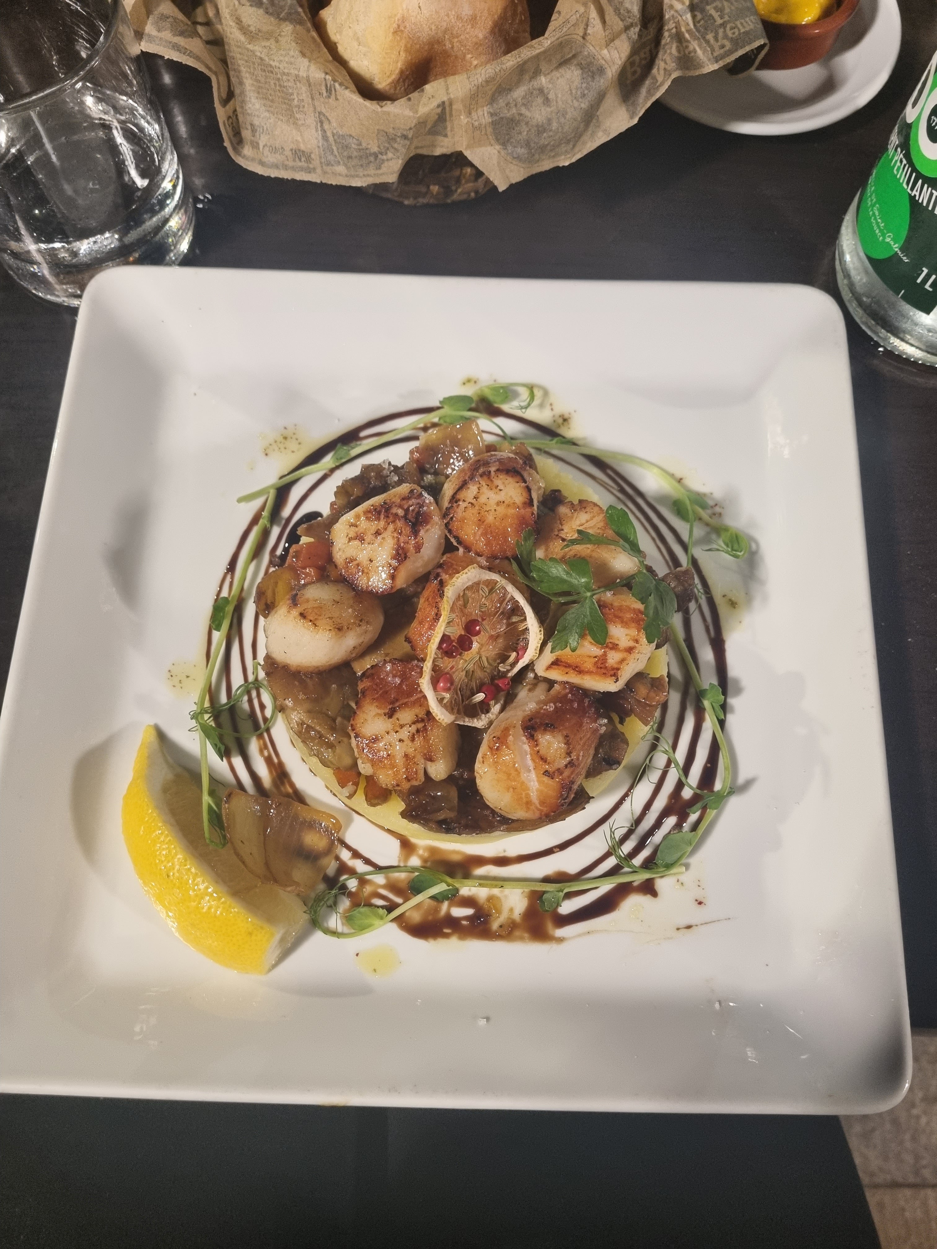 C’est un 10/10 pour ce restaurant délicieux ! Nous avons choisit des moules à se partager en entrée, puis en plat des encornets farcis avec une sauce tomate pimentée et son riz thaï rien à dire super bon ! Pour le deuxième plat j’ai dégusté des saint jacques avec un écrasé de pommes de terres, des artichauts et autres légumes, ce plat était à tomber par terre un régal !! Concernant le service, deux serveurs très gentils et à l’écoute. Nous avons été parfaitement conseillé pour le vin qui accompagnait notre repas. Enfin vous l’avez compris n’hésitez pas, la présentation de l’assiette, toutes les saveurs retrouvées dedans et le service, génial !! Pour des plats à moins de 30€ chacun c’est une véritable réussite :)