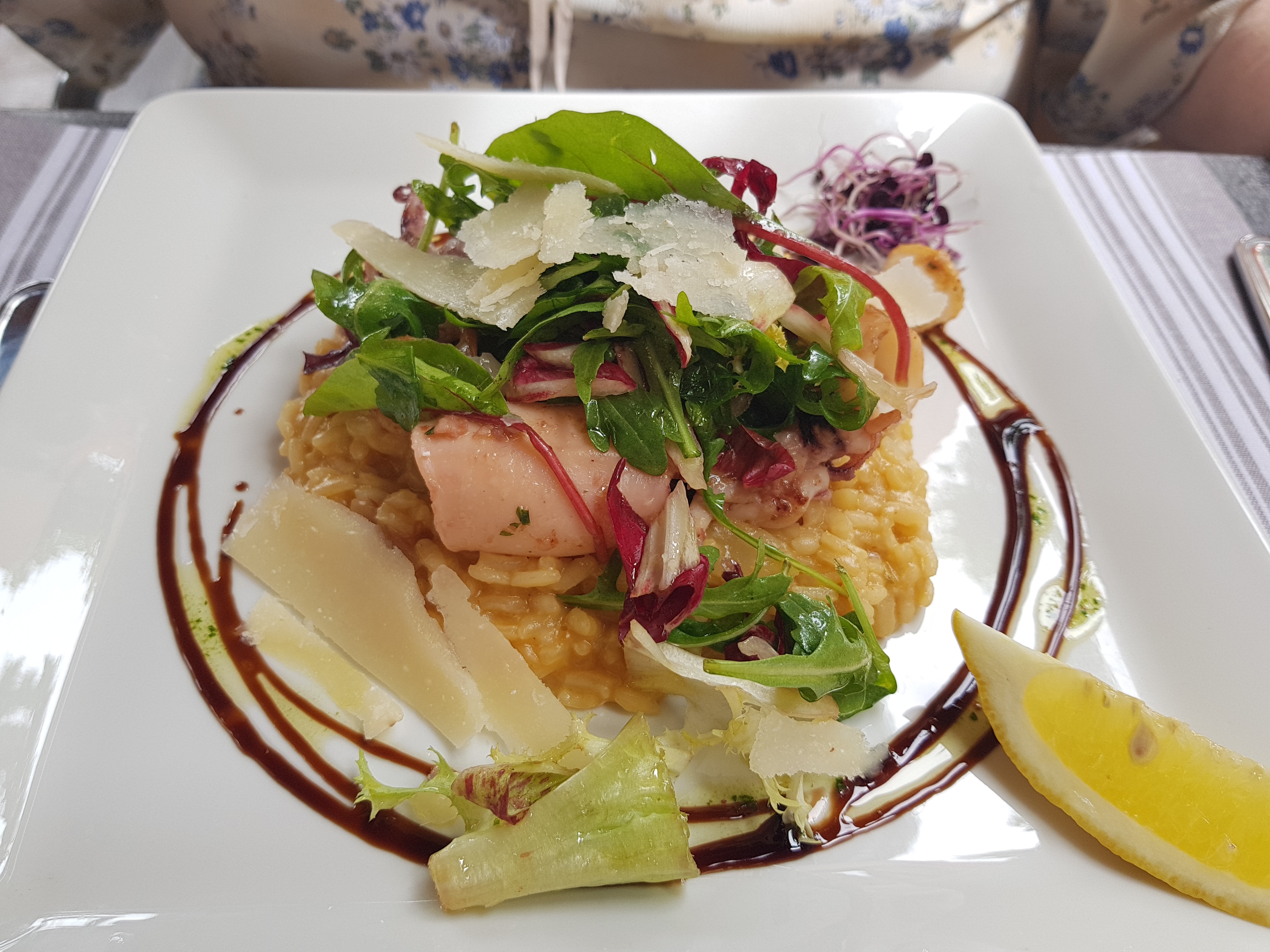 Délicieux, préparations originales et cuisine maîtrisée (enfin un vrai risotto et une cuisson parfaite des calamars !), très bon dessert C.H.O.C.O.L.A.T (crème safranée et crème choco à tomber) et service efficace et souriant.