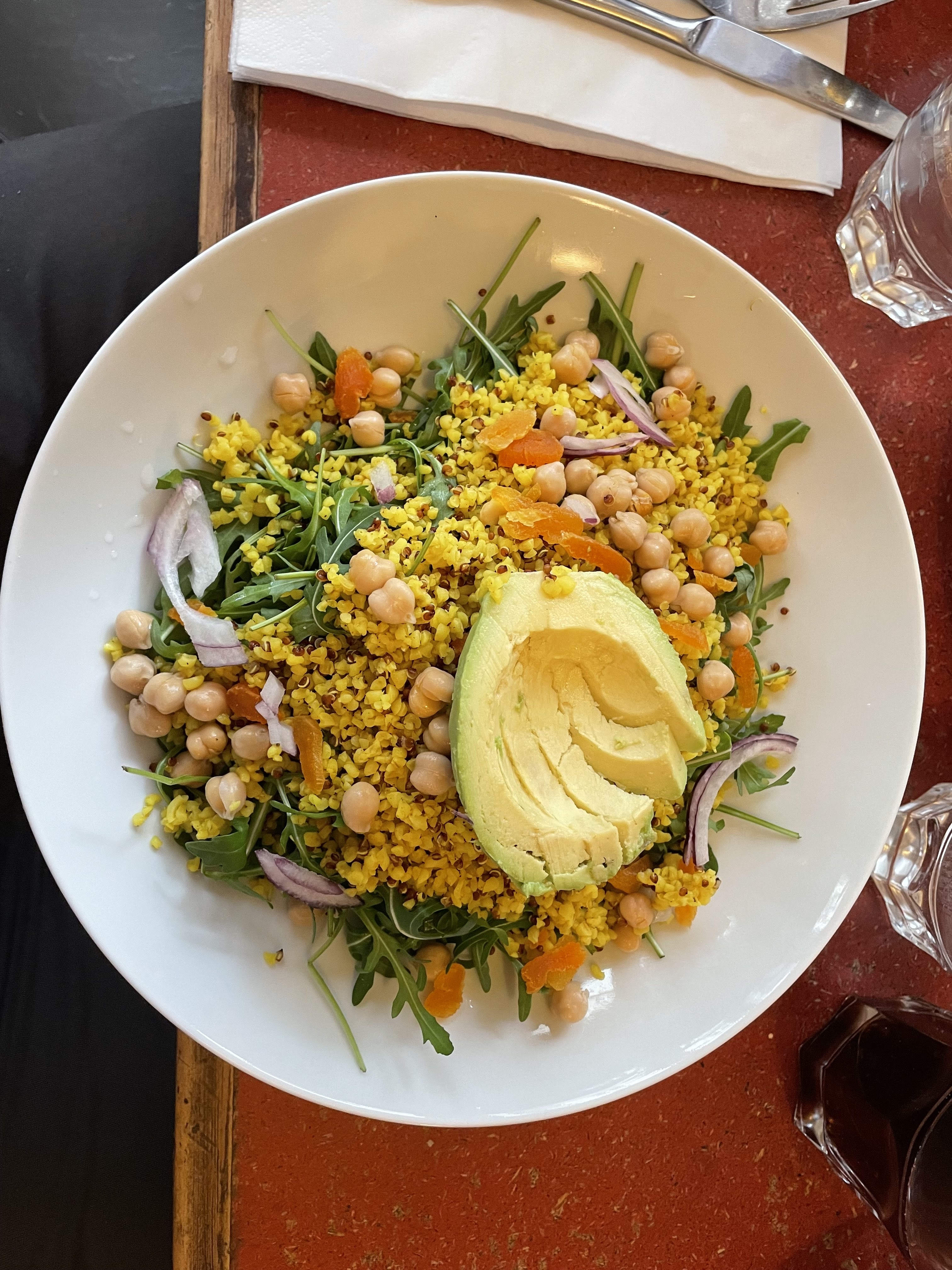 Recommendation de mon hotel. J'y allais pour une salade qui n'y est plus. La salade aux lentilles la remplace. Delicieux. Équilibré. Entre l'acidité amertume et le leger sucre des pickles. Super surprise. Rien à redire. Un vrai plaisir. Les pousses d'epinards les oignons rouges frais les champignons et les lentilles l'assaisonnement. C'est équilibré et une vraie detox de mon passif gluten de ces derniers jours... Ca fait un bien fou. J'ai hate de revenir !