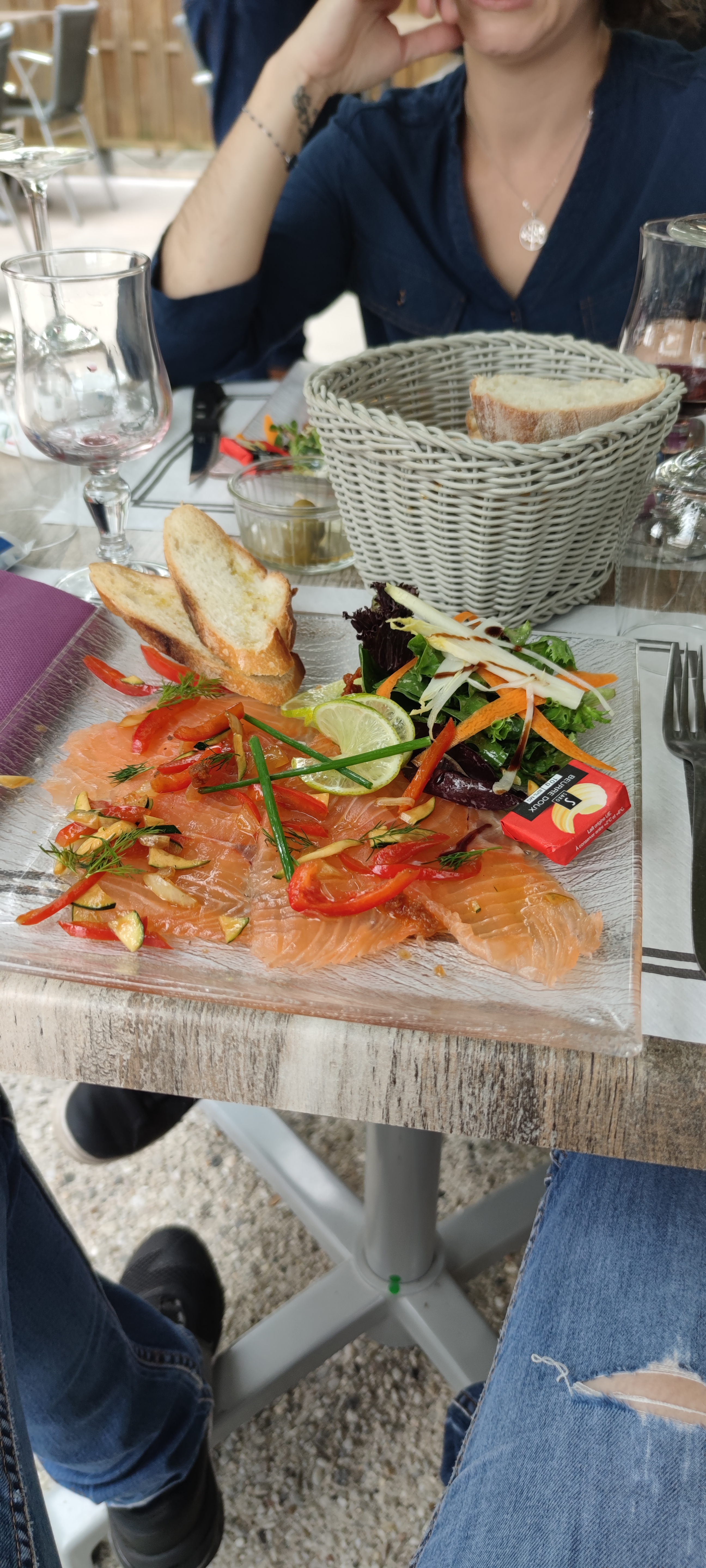 Un peu d'amertume, 2 coca servis directement au verre, sirop oublié dans la pression. Gâteaux apéritifs tout mou. 8€ + vin Pour la suite 4 menus à 24€50 Pour les entrées, la salade de chèvre est quand même la meilleure chose du repas. Malgré que le chèvre ne soit pas de grande qualité.. Pour les plats, deux pavés de saumon, très fin, cuisson beaucoup trop grasse et peu tendre vu l'épaisseur du pavé, qui ressemblé plus à un filet d'ailleurs. Accompagnement frites (surgelées) et pour moi des légumes (une demi tomate, une cuillère de purée, un morceau de courgette) et du riz beaucoup trop cuit. Il y a eu aussi deux magrets qui en faite n'étaient qu'une moitié et encore, la cuisson bleu et devenu à point, mais la serveuse nous a maintenu que c'était bleu. Accompagnement frite (surgelés) et une sauce. Puis nous arrivons au fameux dessert, la serveuse (je suppose la patronne) nous proposes du fromage, je demande simplement si les fromages sont au lait pasteurisé, la réponse m'a laissé de marbre A ça je ne peux pas vous dire, ce n'est pas moi qui m'en occupe et puis honnêtement moi je ne mange pas de fromage donc je ne sais pas et je ne peux pas aller demander. Bon et bien nous avons pris 3 glaces, et une mousse au chocolat. Rien d'extraordinaire bien sûre. Le tout 115 euros l'addition pour 4 personnes. Déçu par la cuisine et par le manque de professionnalisme.