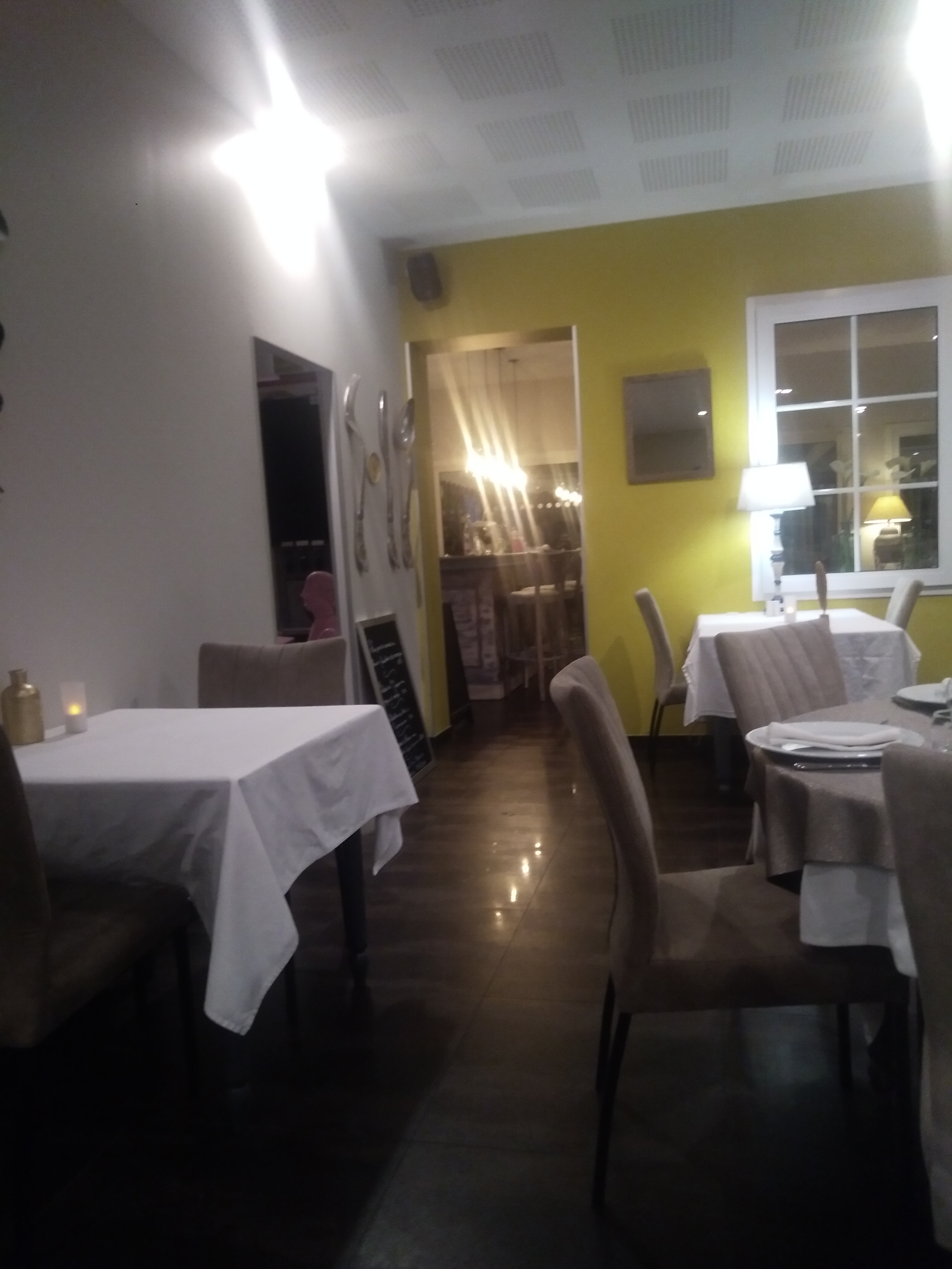 Belle salle très bien décorée ambiance chaleureuse et distinguée.. toujours une carte originale pleine de découvertes.. très bonne cuisine.. personnel très agréable ...et prix très raisonnable car très bonne qualité des produits
