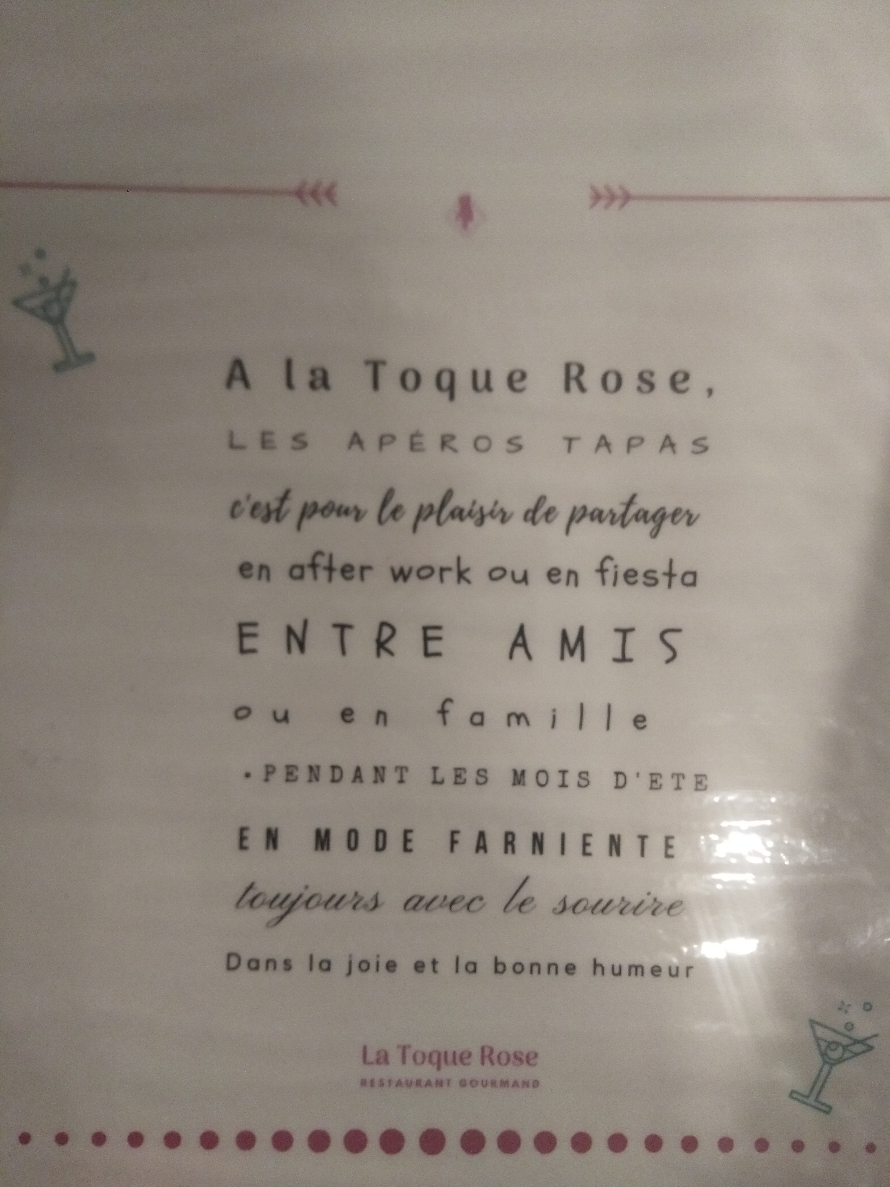 Ce restaurant est excellent, tout est bien ambiance, décoration, personnels,cartes.... Les repas sont préparer avec soin, vous avez envie de bien manger allez à la toque rose. Les cartes sont renouvelés régulièrement avec de fins produits. Je conseille ce restaurant à qui souhaite manger raffiner à un prix raisonnable.