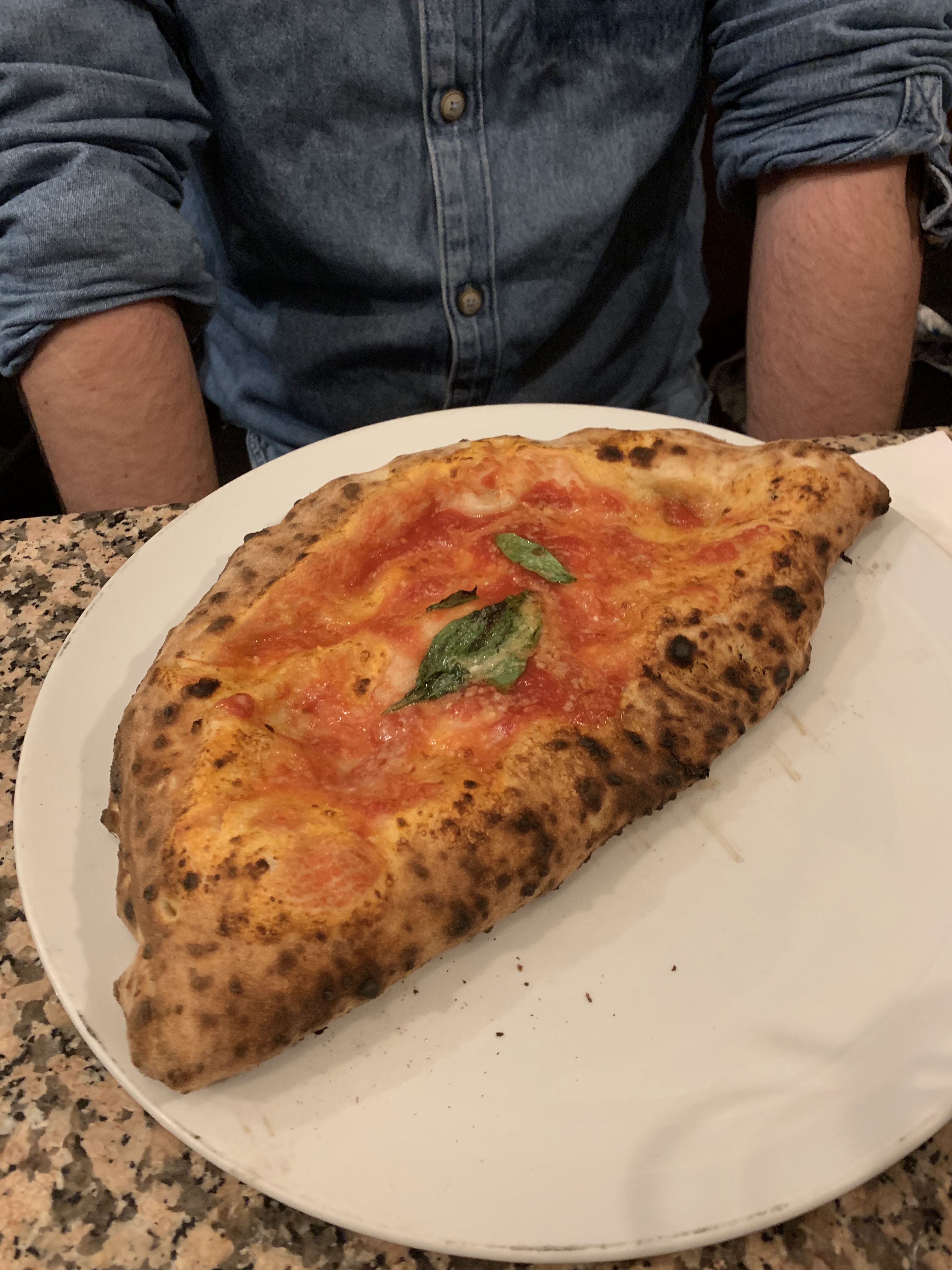 Bonne pizza, personnel super sympa. Base de pizza assez conséquente 4/5. Deuxième essai, et la pizza était un peu moins intéressante, mais la base était quand même bonne. Troisième visite, et je développe mon appréciation pour les ingrédients simples de bonne qualité et l'attention portée aux détails. La calzone avec la traditionnelle ricotta a de belles saveurs. N'y allez pas si vous êtes fan de raviolis, d'œufs ou d'ananas sur votre pizza. Ils ne sont pas fans de ces garnitures selon le menu.