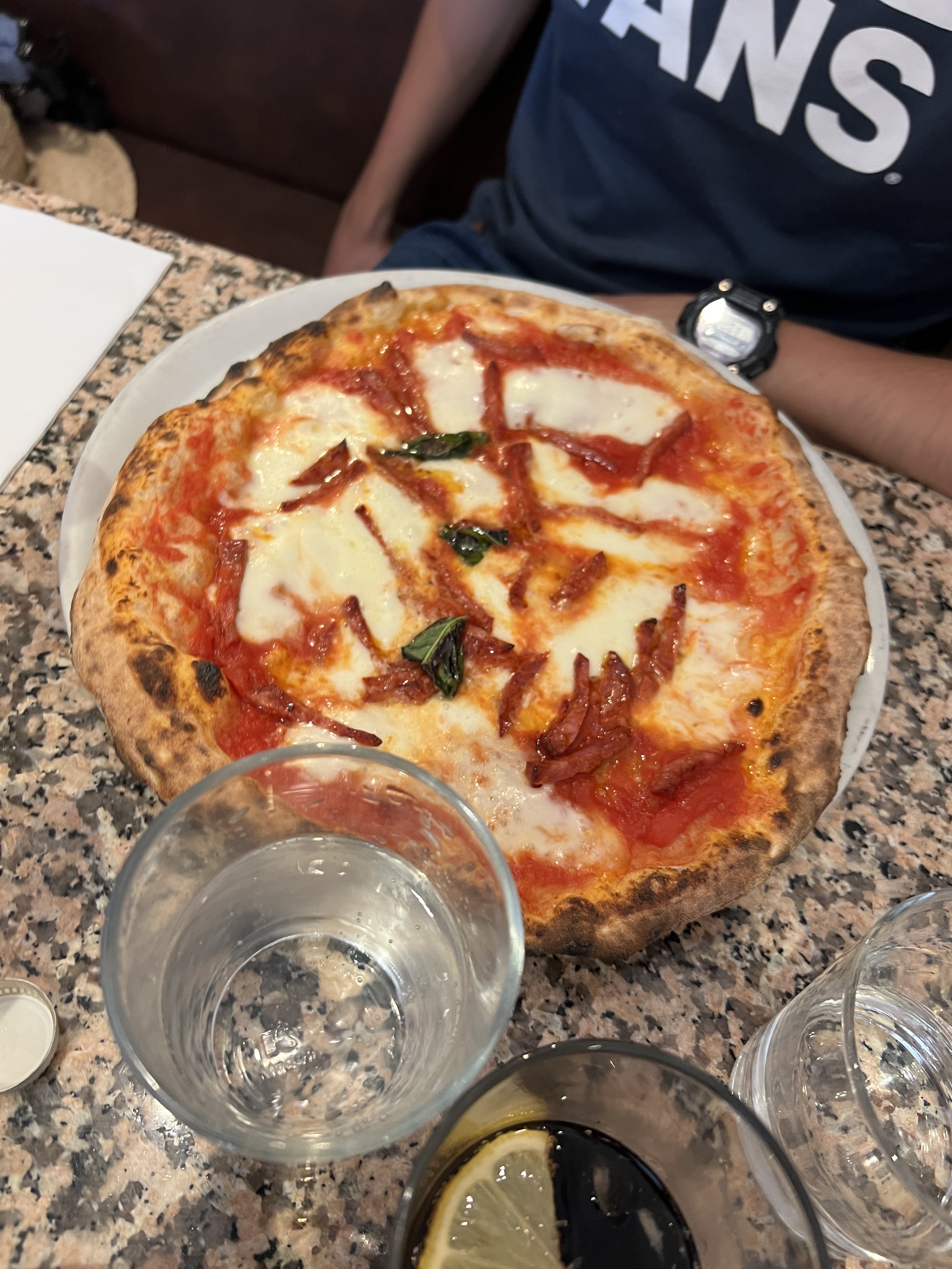 Ingrédients de qualité, mais la pâte ressemble plus à une picadina qu'à une pizza. Extrêmement fine et du coup complètement détrempée. Sinon la sauce tomate, le prosciutto et la burrata sont à tomber.