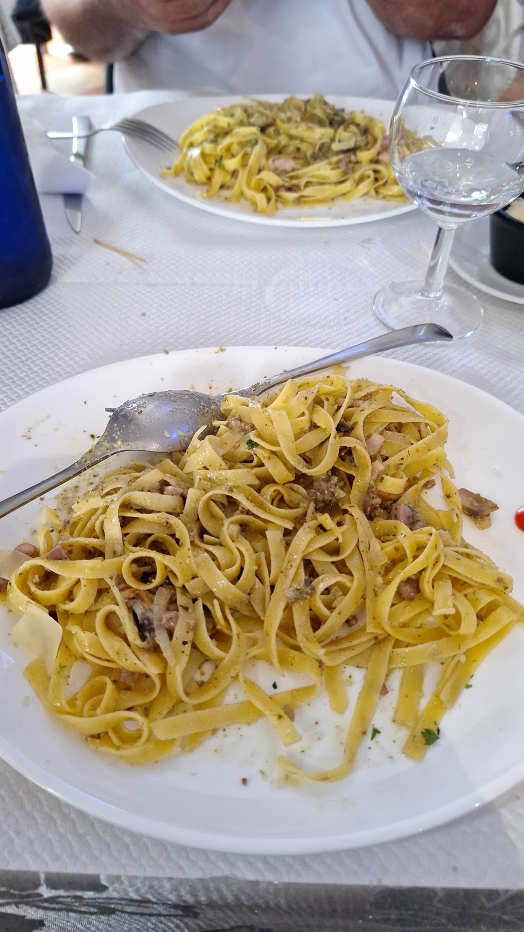 les pizzas individuelles sont très grandes et très belles, un serveur âgé sympathique , pâtes al pepetonnerino excellentes
