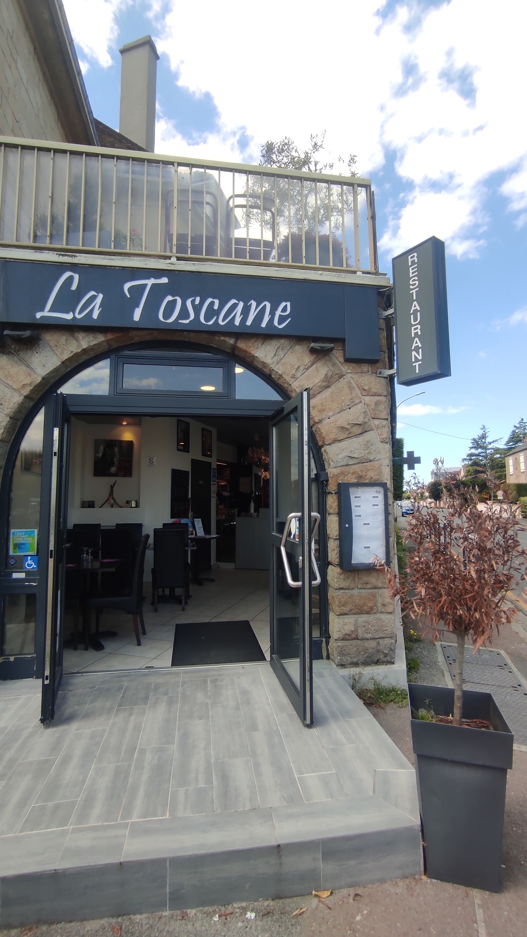 Vs cherchez une adresse pour bien mangé ns cherchez plus ' la toscane est l'endroit où vs allez vs régalé comme jamais des pizza exceptionnelles dessert délicieux et tout cela accompagné d'une bonne sangria blanche maison Que des produits de qualité Et biensur tout cela avec le sourire et la gentillesse des personnes qui ns ont servi un service en terrasse Ns pouvons qu'être satisfait A très vite