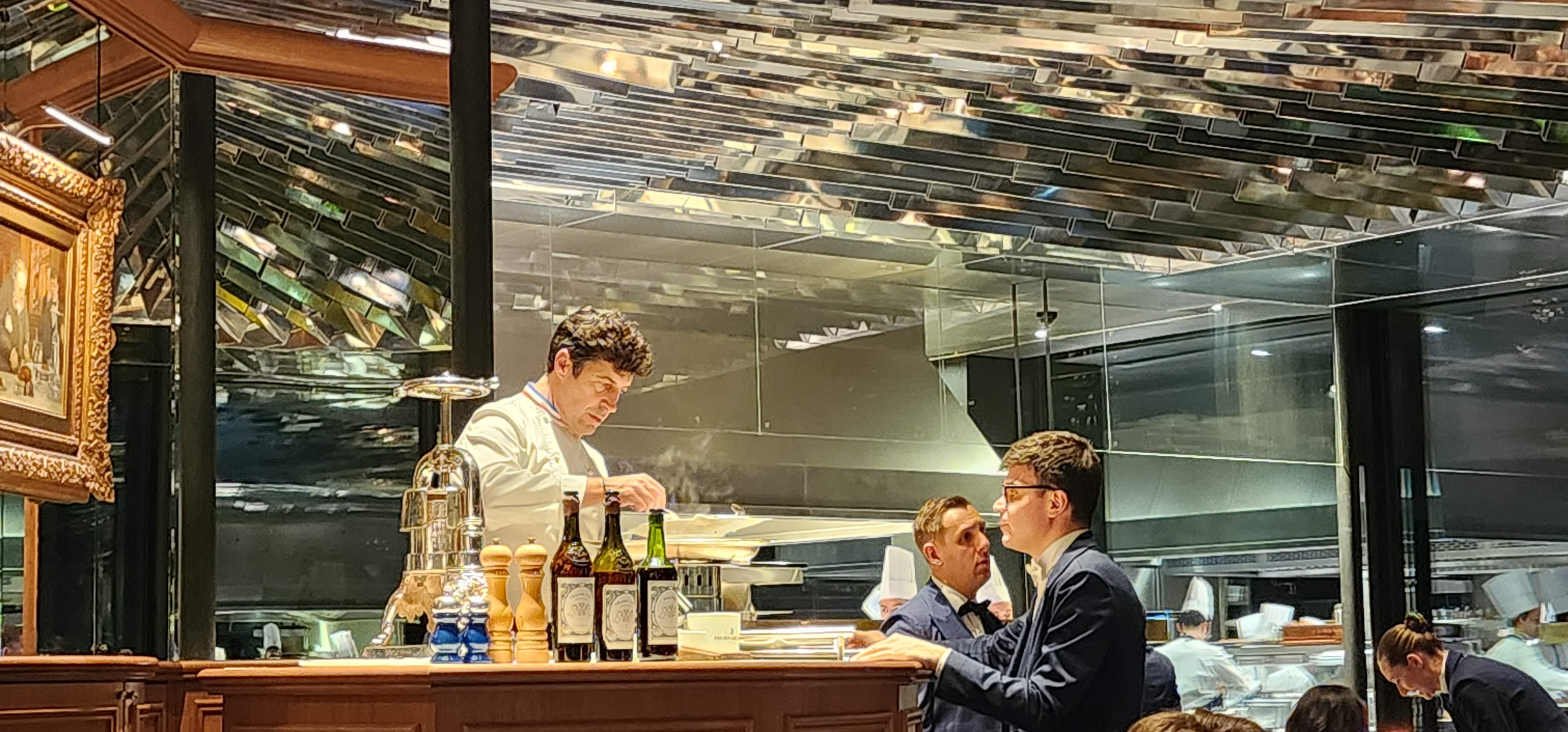 Magique! La vue, le service, le repas avec des plats emblématiques, la carte des vins somptueuse et maintenant la vue sur la cuisine en plus