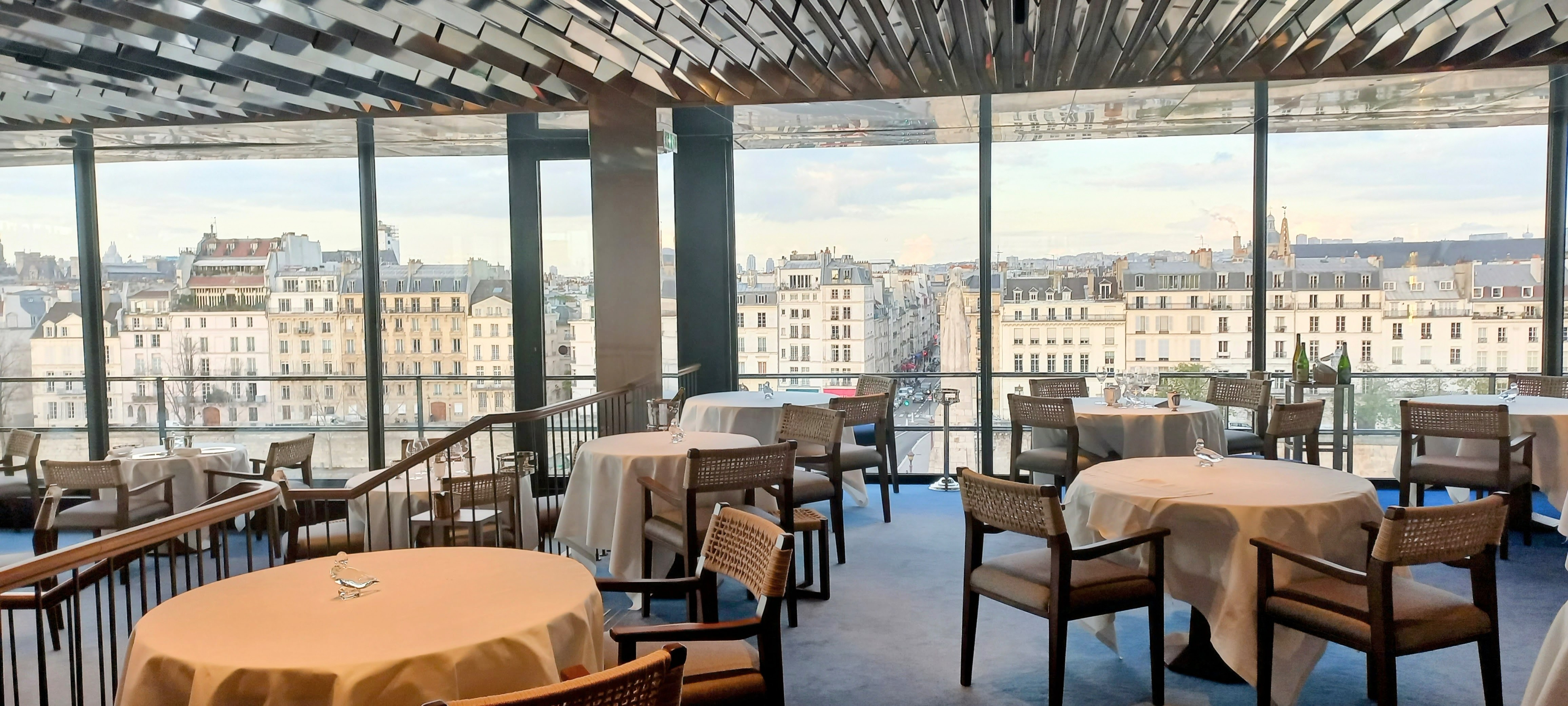 Très bel endroit avec une vue magnifique du centre de Paris. Accueil et service rapide et efficace : nous avions pris le menu à 150 € et quatre services. Cuisine élaborée avec des sauces exceptionnelles et un assortiment de produits de saison. Très beau renouveau Merci à toute l’équipe