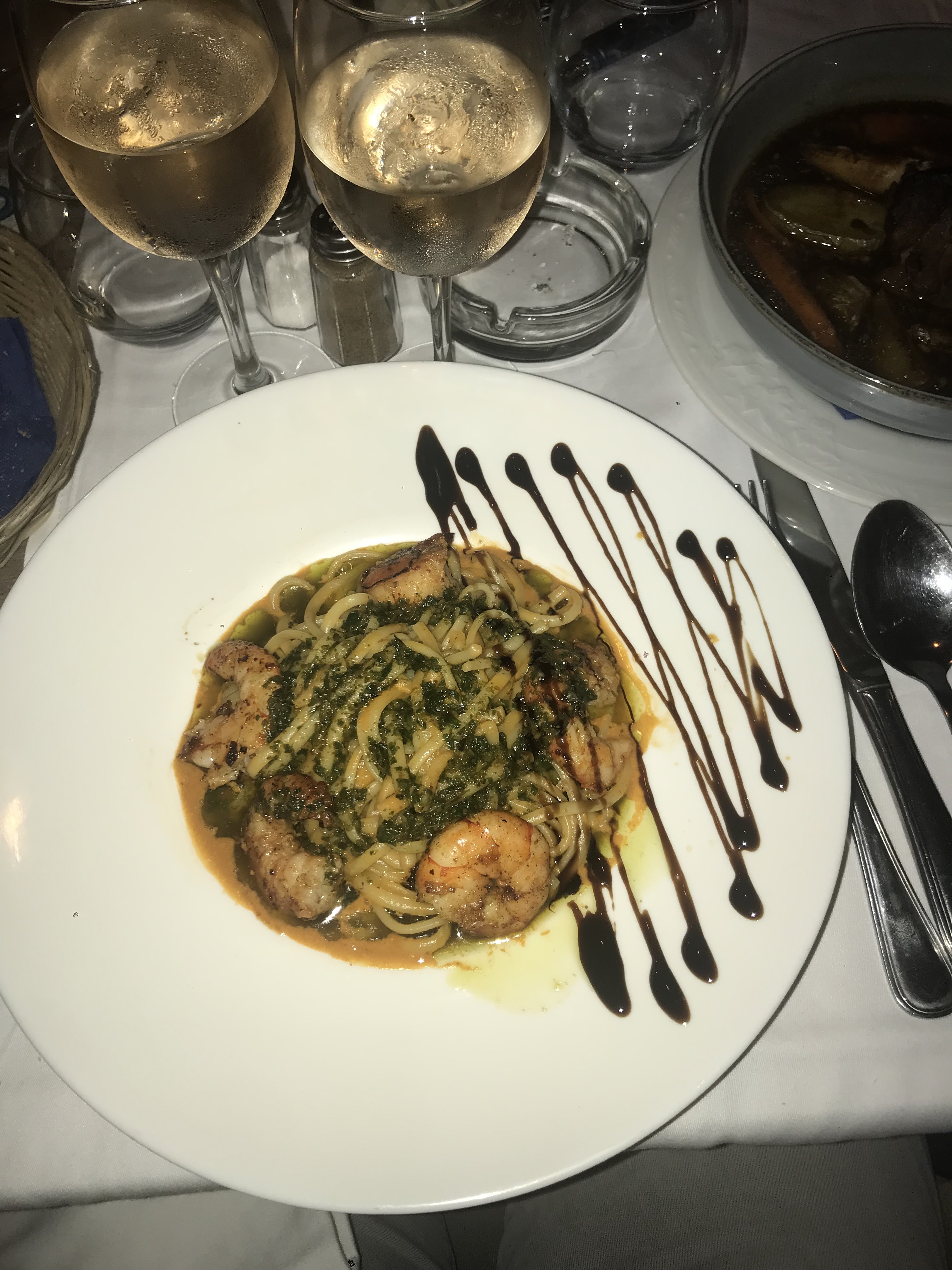 La côte de veau est un régal !! Le foie gras vaut le détour j’ai été déçue par les pâtes aux gambas trop cuites avec une sauce inappropriée dommage !!!!