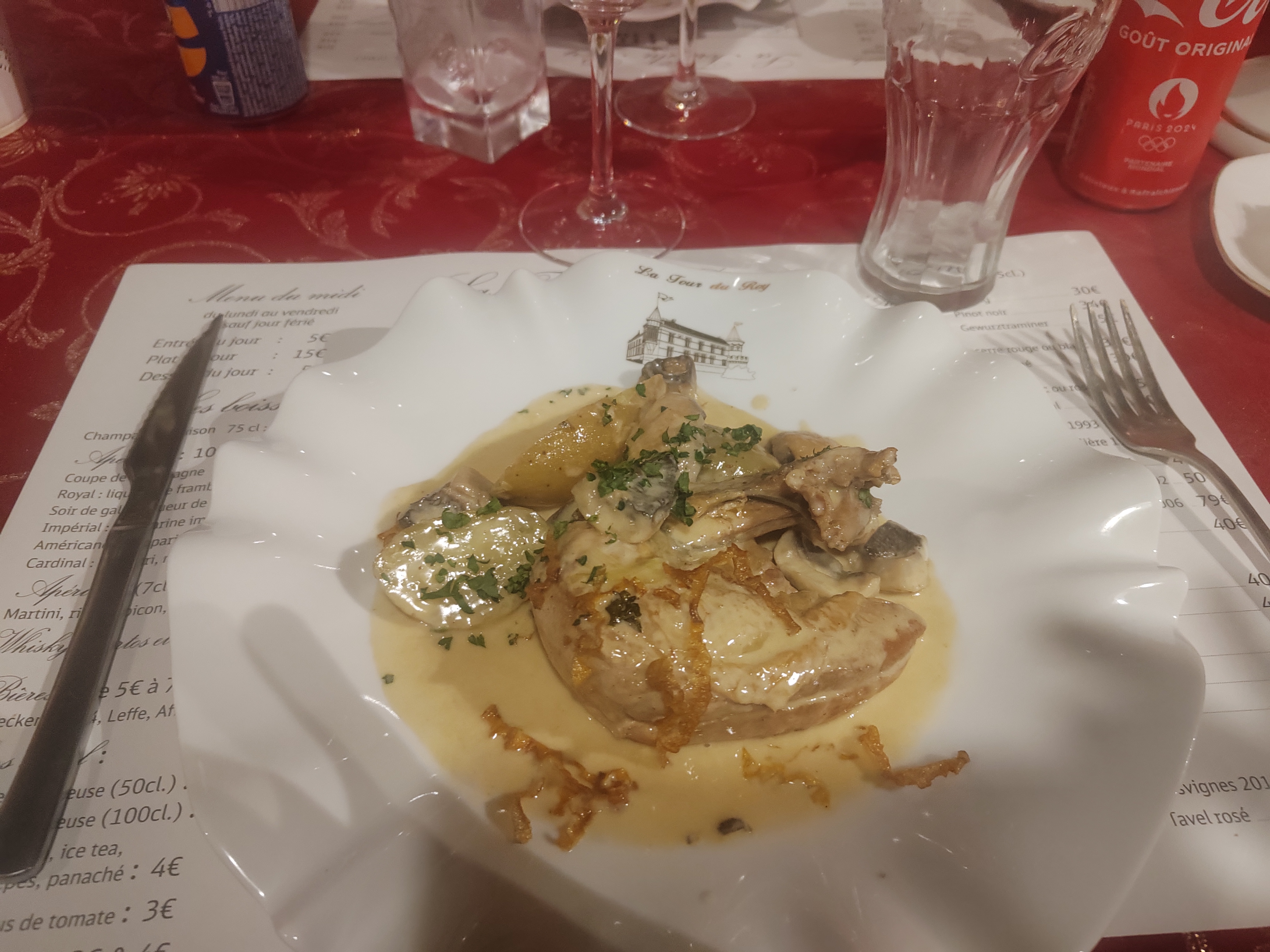 Bel endroit romantique à l’ancienne. Nourriture vraiment très bonne, bœuf Henri IV (tournedos Rossini) haut frit avec une délicieuse sauce et de délicieuses pommes de terre sautées à la graisse de canard. Des plats français classiques, visiblement préparés avec amour et parfaitement. Fortement recommandé si vous êtes dans la région, nous y allons souvent.