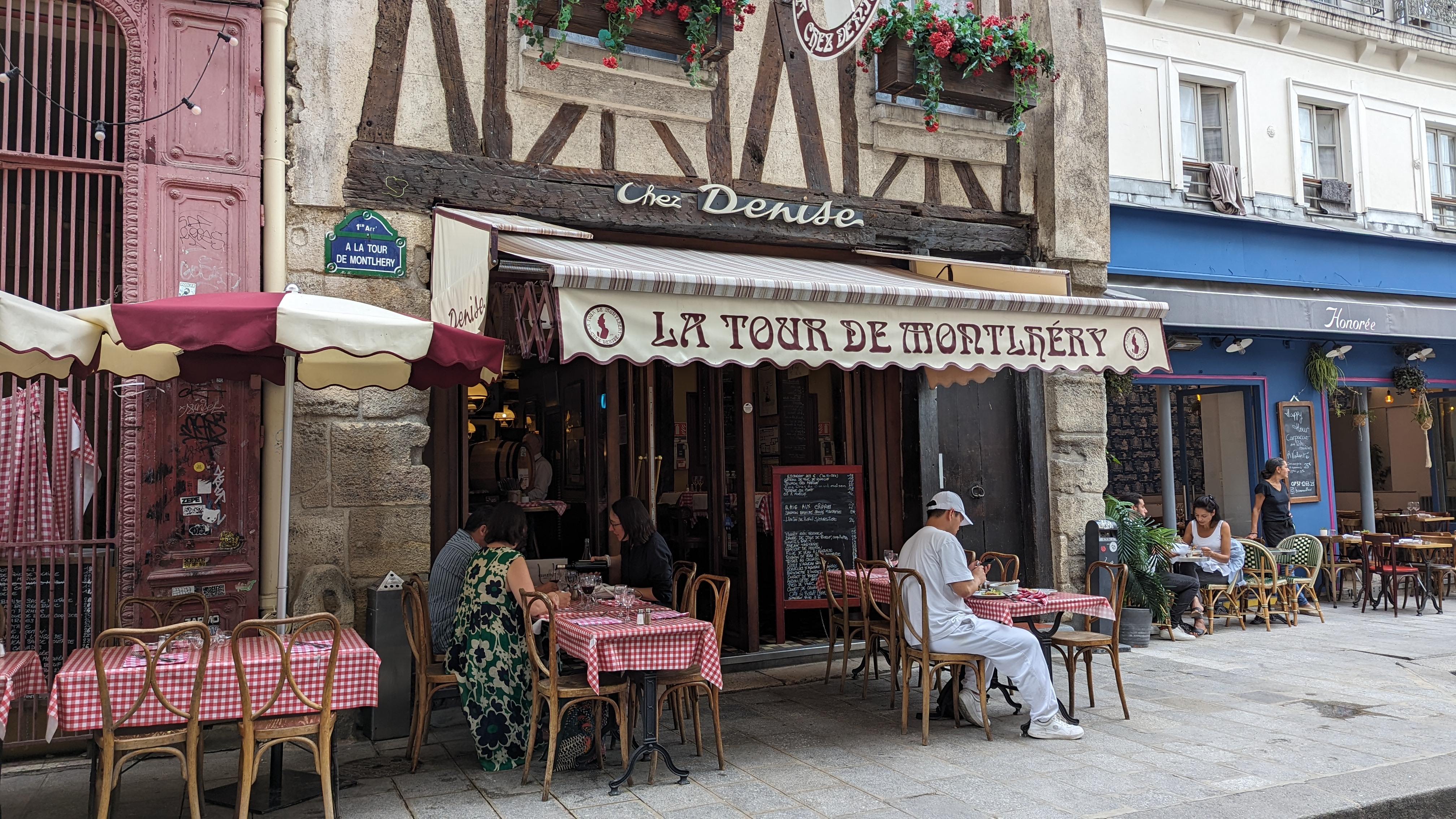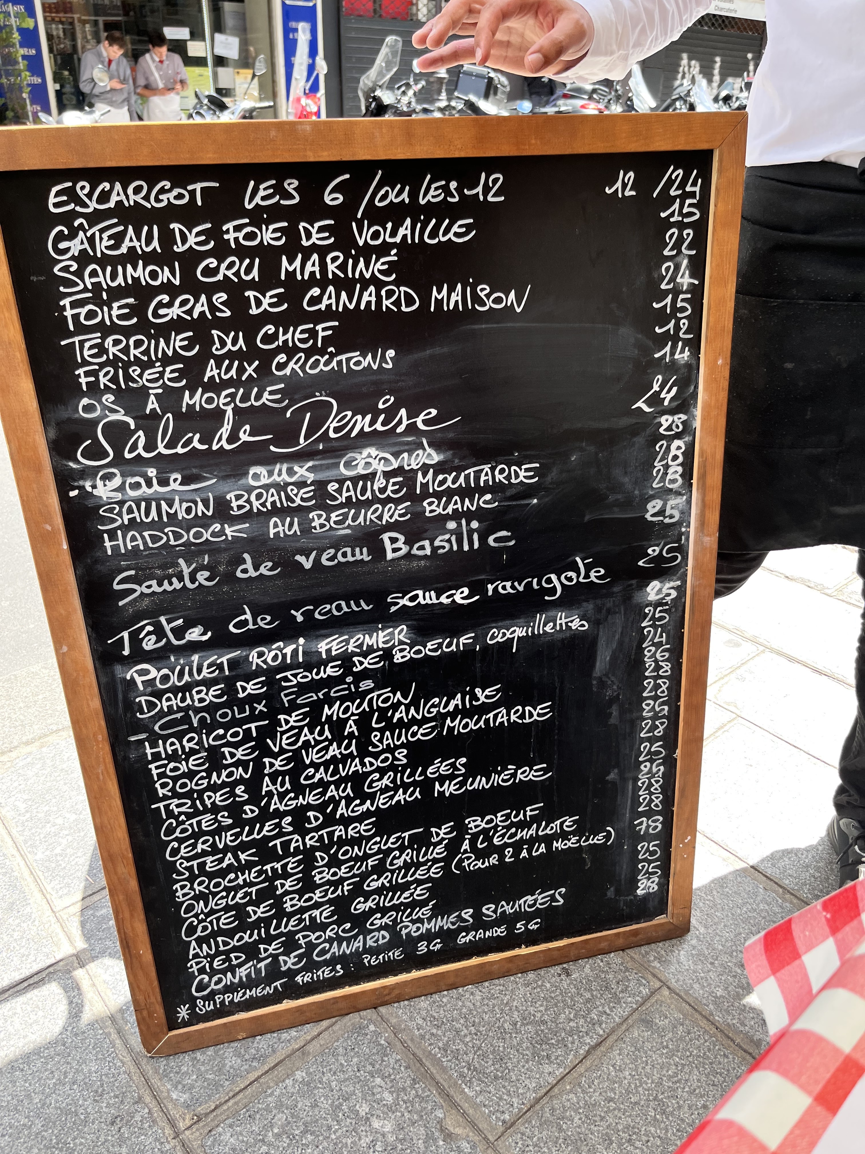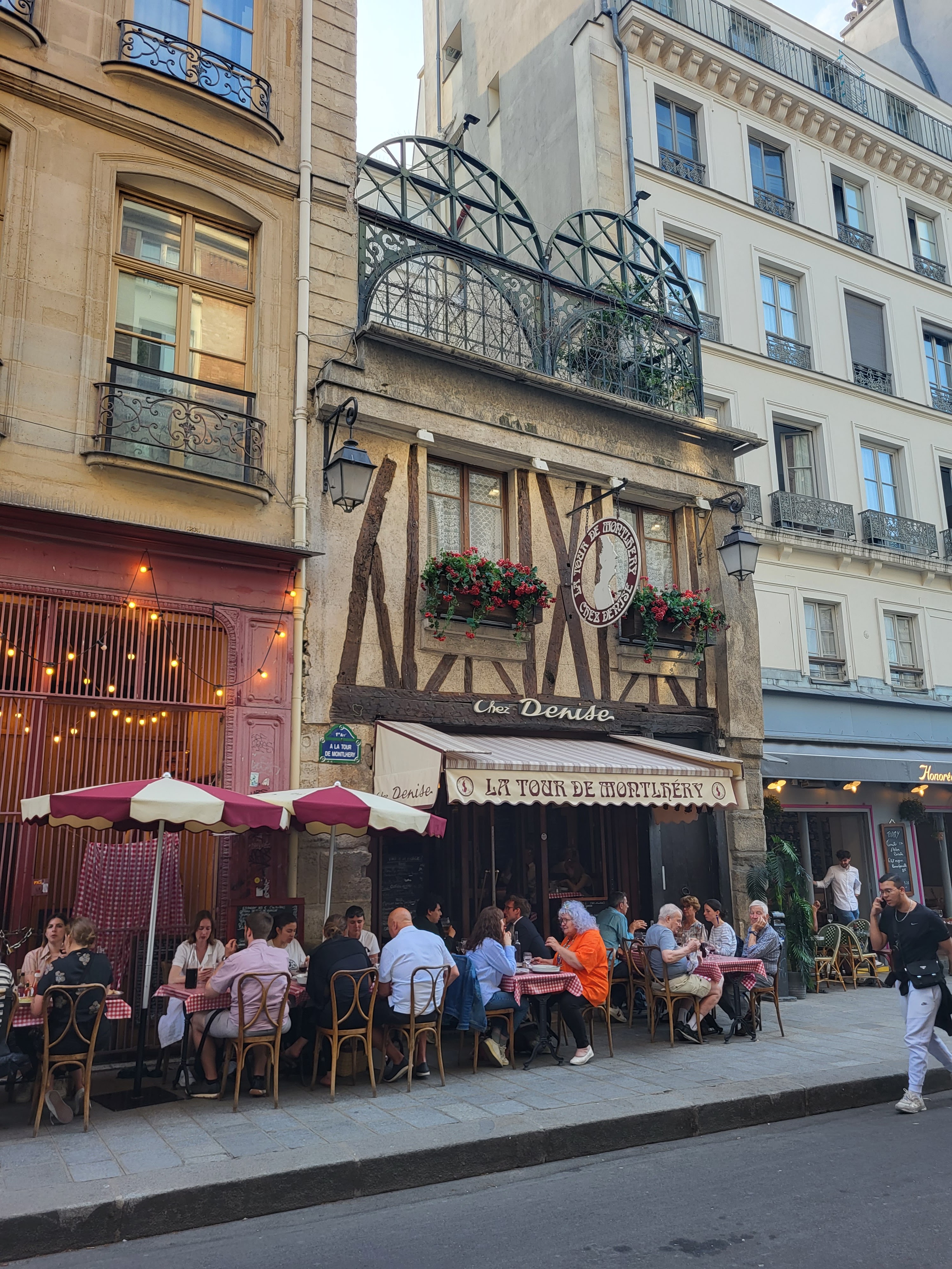 J'ai visité ici pour la première fois en décembre 1987, alors que je me rendais au Fort de Nogent. Ma prochaine visite a eu lieu en mai 2023. Le souvenir culinaire était encore vivant et Chez Denise a livré en fanfare ! Je rêvais de l'andioullete, sauce moutarde et frites et c'était pareil. Tout comme le baba au rhum en dessert. Le service et la nourriture étaient exceptionnels. L'atmosphère est quelque chose que vous devez expérimenter par vous-même. J'ai mangé seul un repas et j'ai dîné avec des fantômes et des souvenirs du passé. Ne sautez pas Chez Denise si vous visitez Paris. C’est ce qu’est la vraie nourriture, avant que la nourriture ne soit gentrifiée et c’est une légende. Des repas issus d'un menu en constante évolution et des produits de base qui ne sont pas partis. Essayez le baba au rhum. Vous pleurerez des larmes de joie et entendrez les anges chanter. Terminez avec du café et de l'Armagnac. Santé