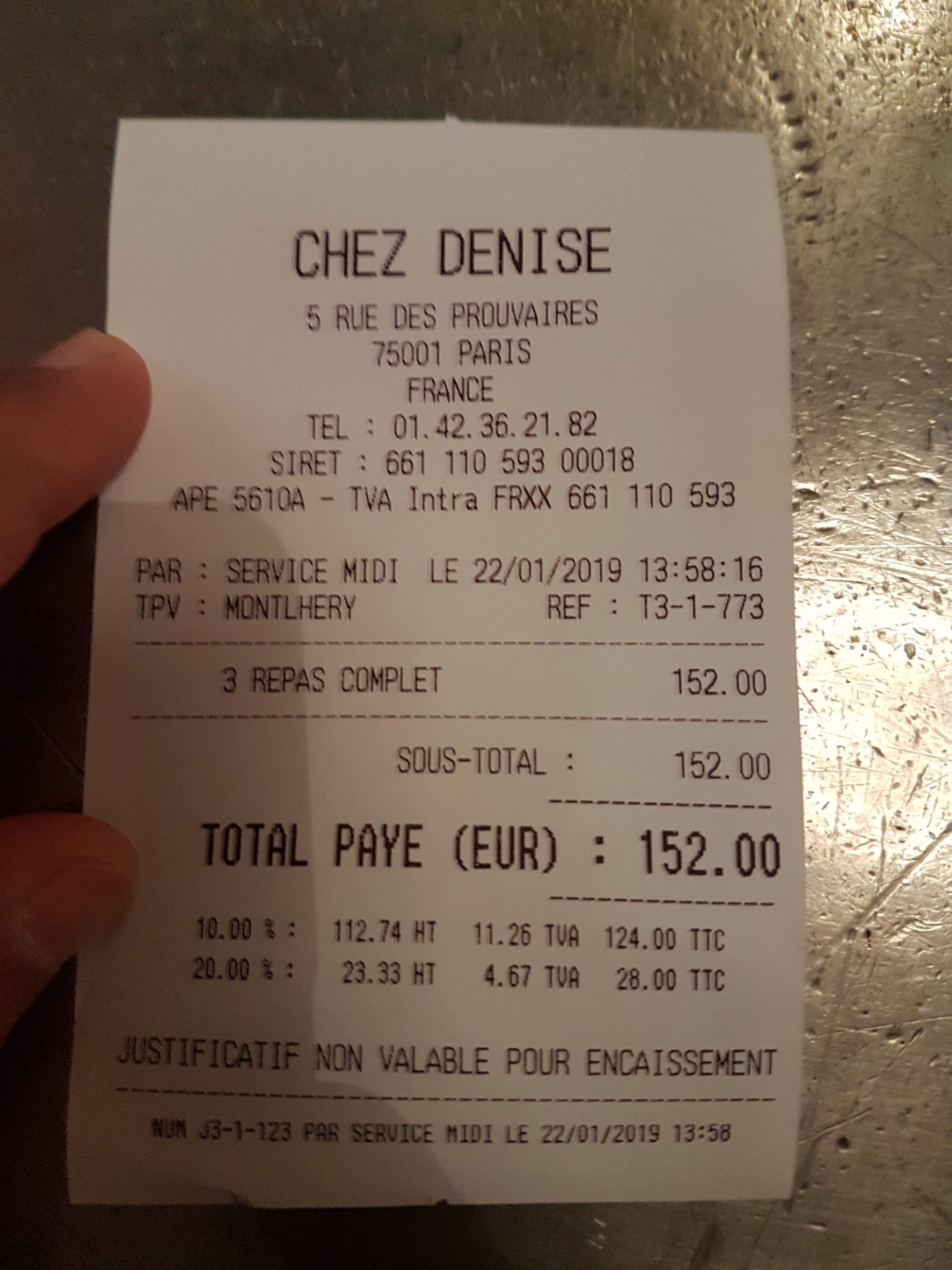 Denise doit se retourner dans sa tombe quand on voit ce que c’est devenu… Le service est un désastre et très lent . De plus les plats ne sont pas exceptionnellement bon, j’ai demandé des rognons rosé c’est arrivé bleu et pour couronner le tout le serveur me dit que c’est comme ça rosé chez eux. Ma femme avait pris un onglet pas assaisonner . La mousse au chocolat n’est pas dingue non plus. Cerise sur le gâteau , lors du paiement en carte bleu le serveur vous demande si vous souhaitez ajouter un pourboire. C’est vraiment pas classe