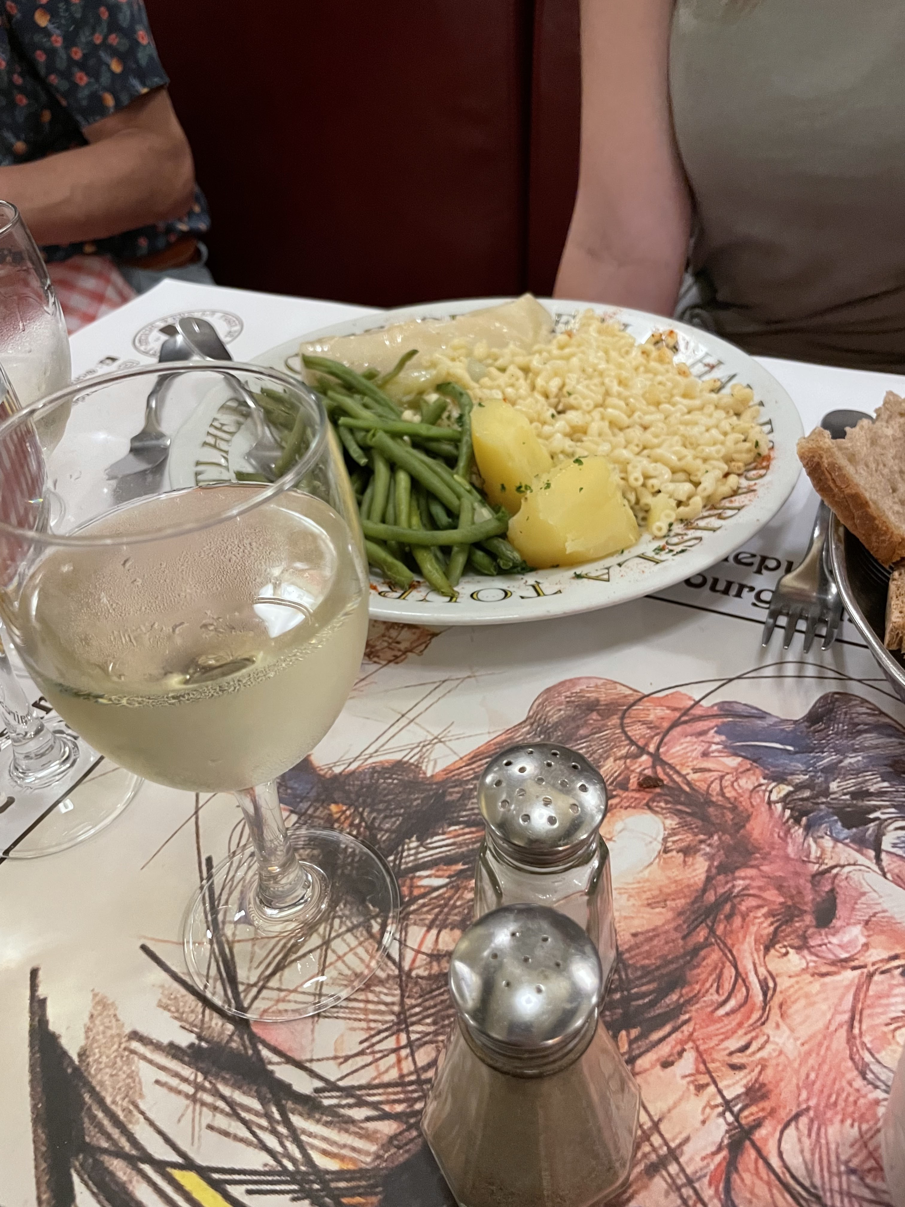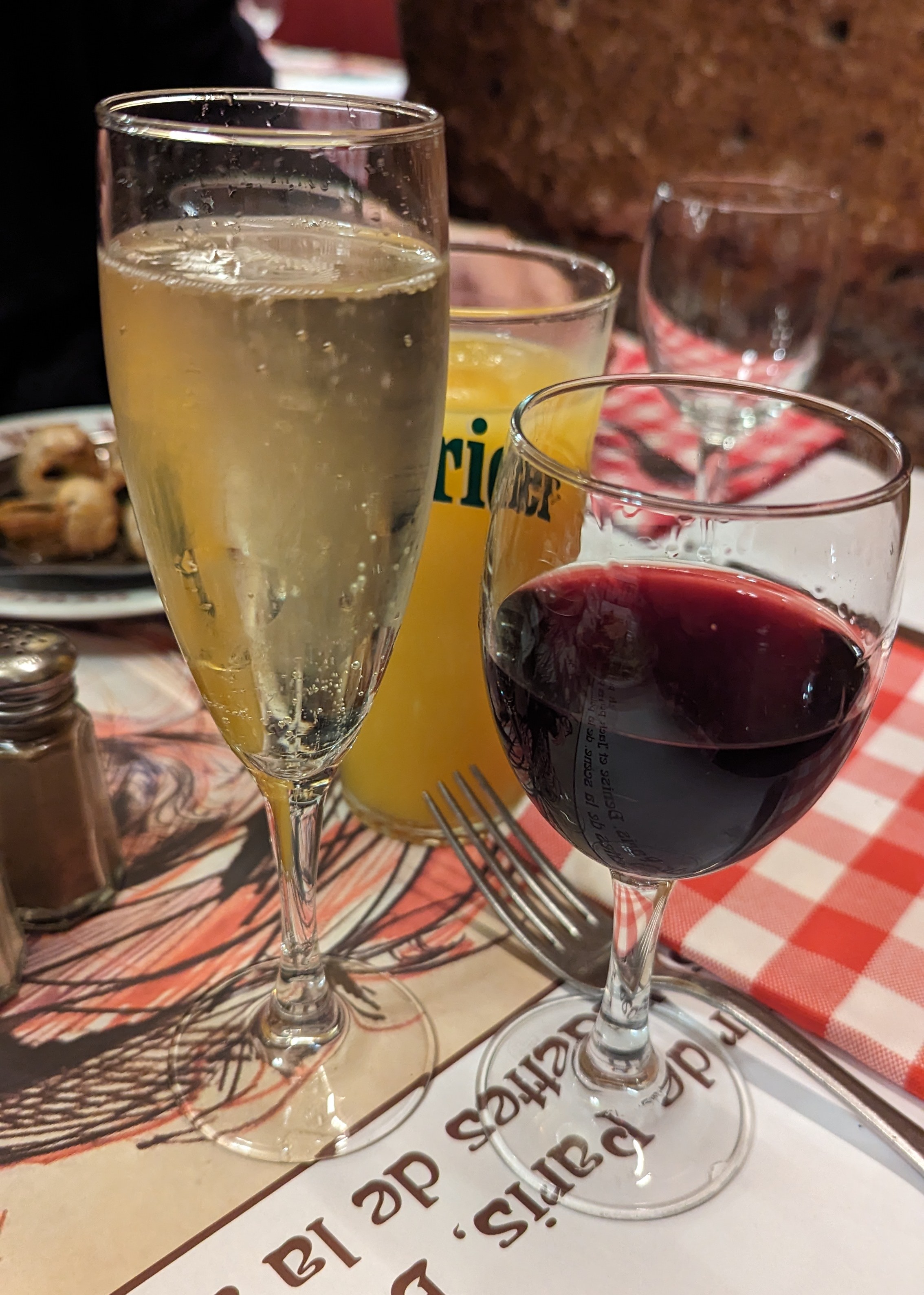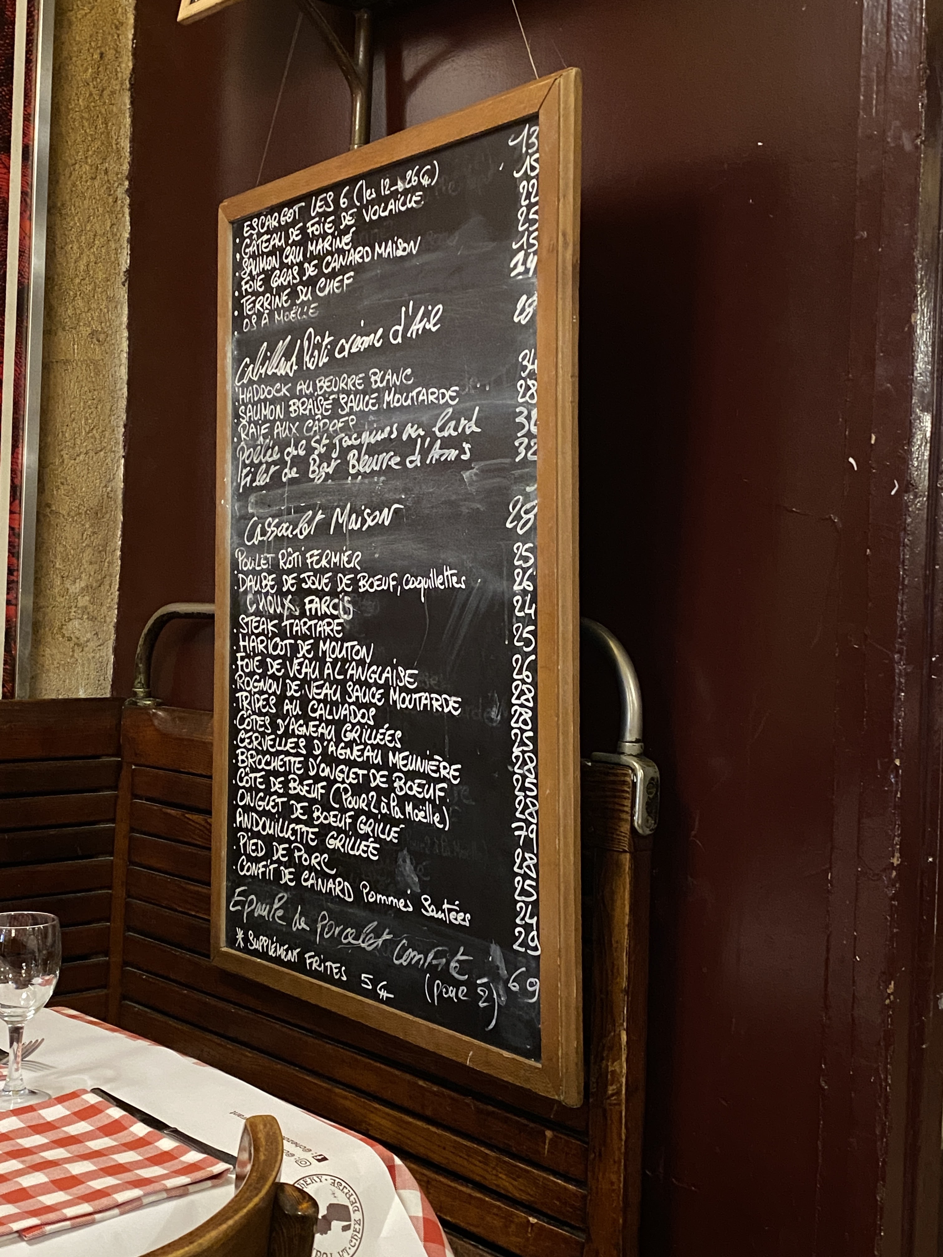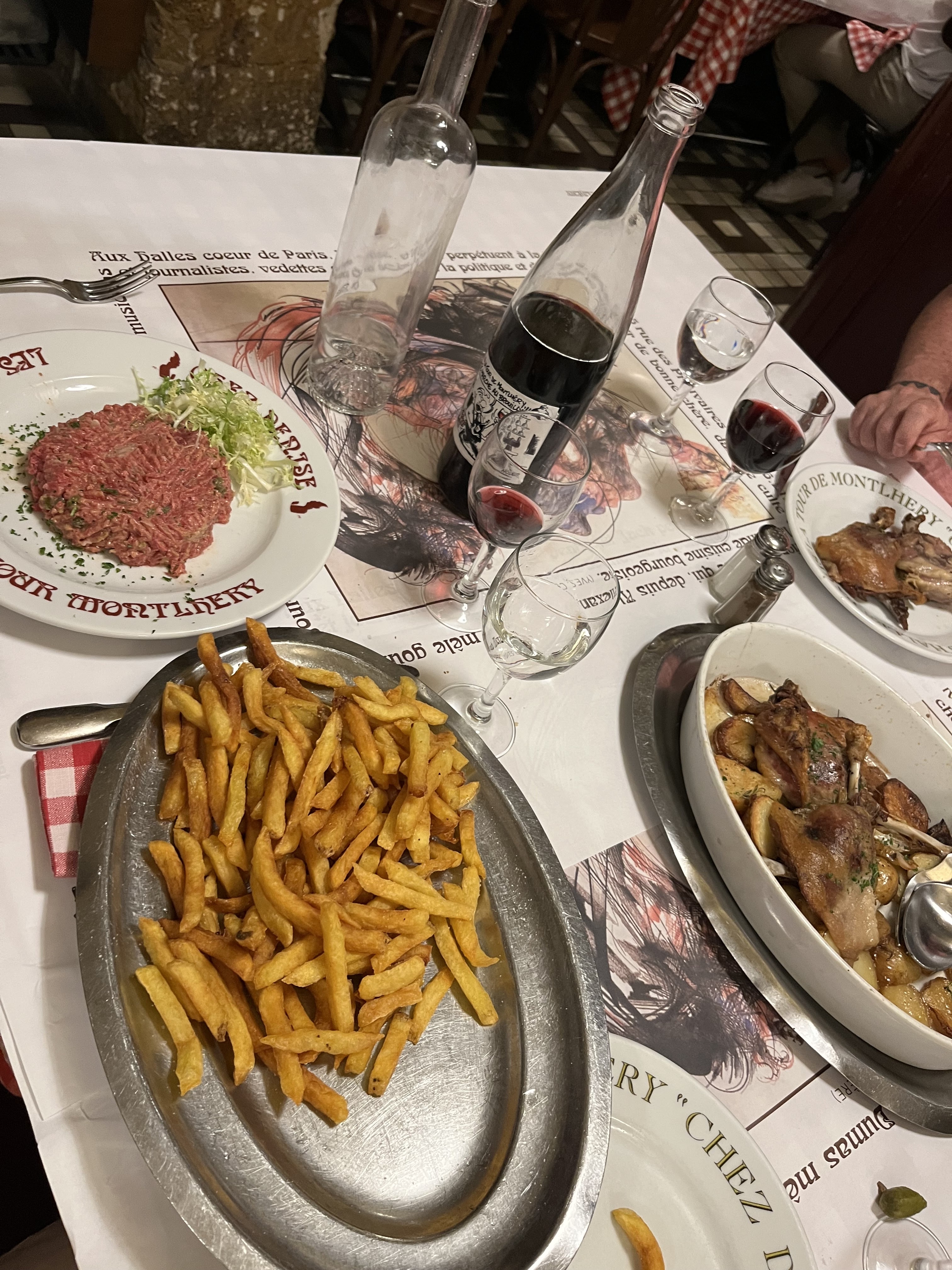 Un peu angoissant si c'est votre première visite à Paris, vous êtes assis très près des autres personnes à la même table et le menu peut être un peu intimidant. Mais c'était tellement amusant après s'être un peu détendu et la nourriture était absolument délicieuse. Un moment fort du voyage !
