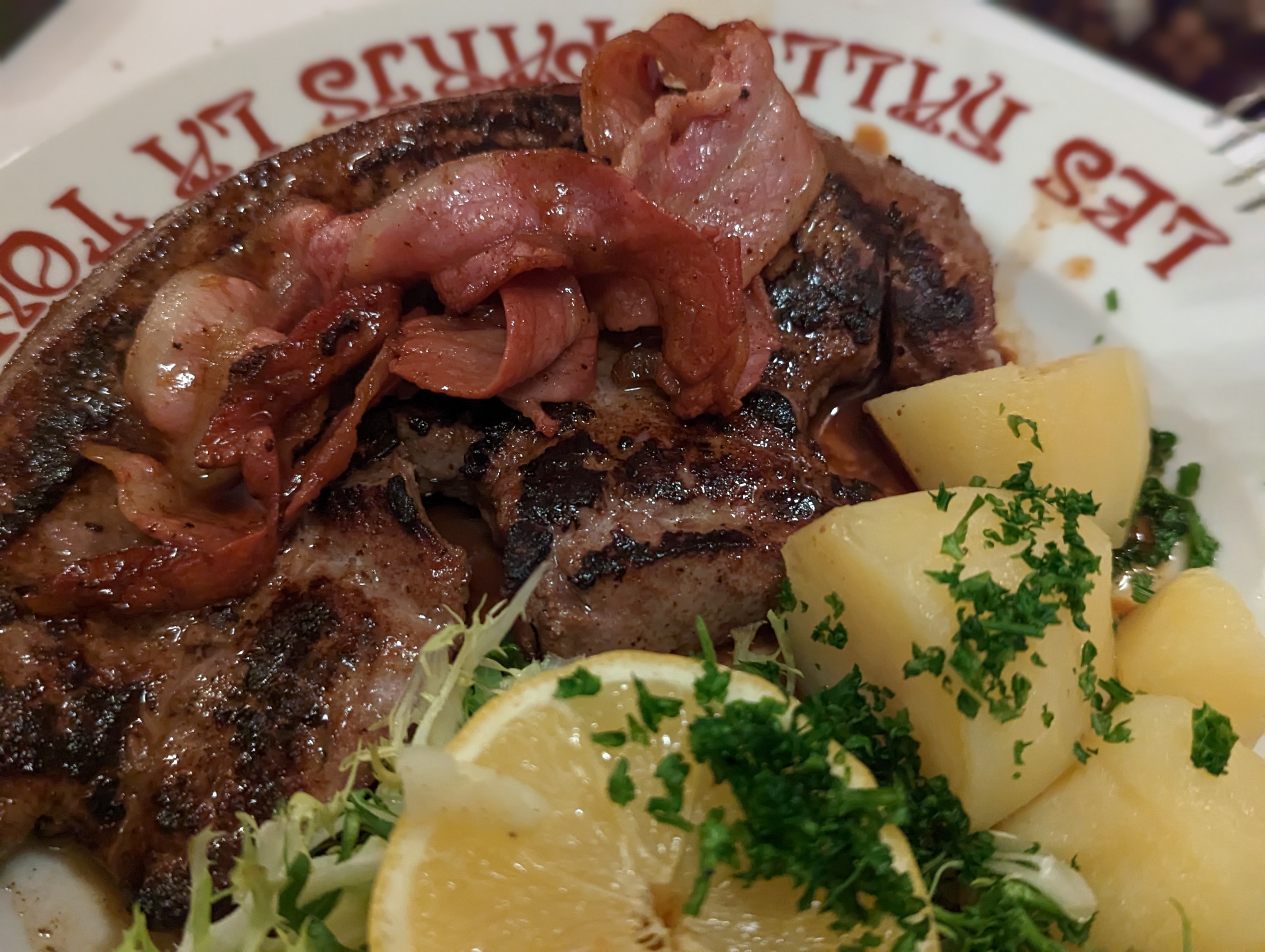Mes amis et moi venons dans cet établissement depuis des décennies. Nous avons toujours été bien reçu reçu. Nos choix se portent souvent vers la côte de bœuf à partager . Nous étions toujours heureux de déguster cette pièce de bœuf qui était savoureuse extrêmement tendre mais surtout cela nous arrivait de demander à emporter, ce que nous n’avions pas consommé vu la taille du morceau! Mais depuis ces derniers temps, le prix est passé à près de 40 € par personne l’assiette pour la côte de bœuf, mais surtout la taille, s’est réduite au minimum d’un quart. Ce qui fait que nous sommes sortis du restaurant sans avoir la sensation d’avoir bien mangé ni d’être rassasié. Nous avons été déçus, sur nos deux derniers passages avec une viande qui n’était pas tendre! Nous sommes déçus, car c’était l’une de nos adresses préférées!